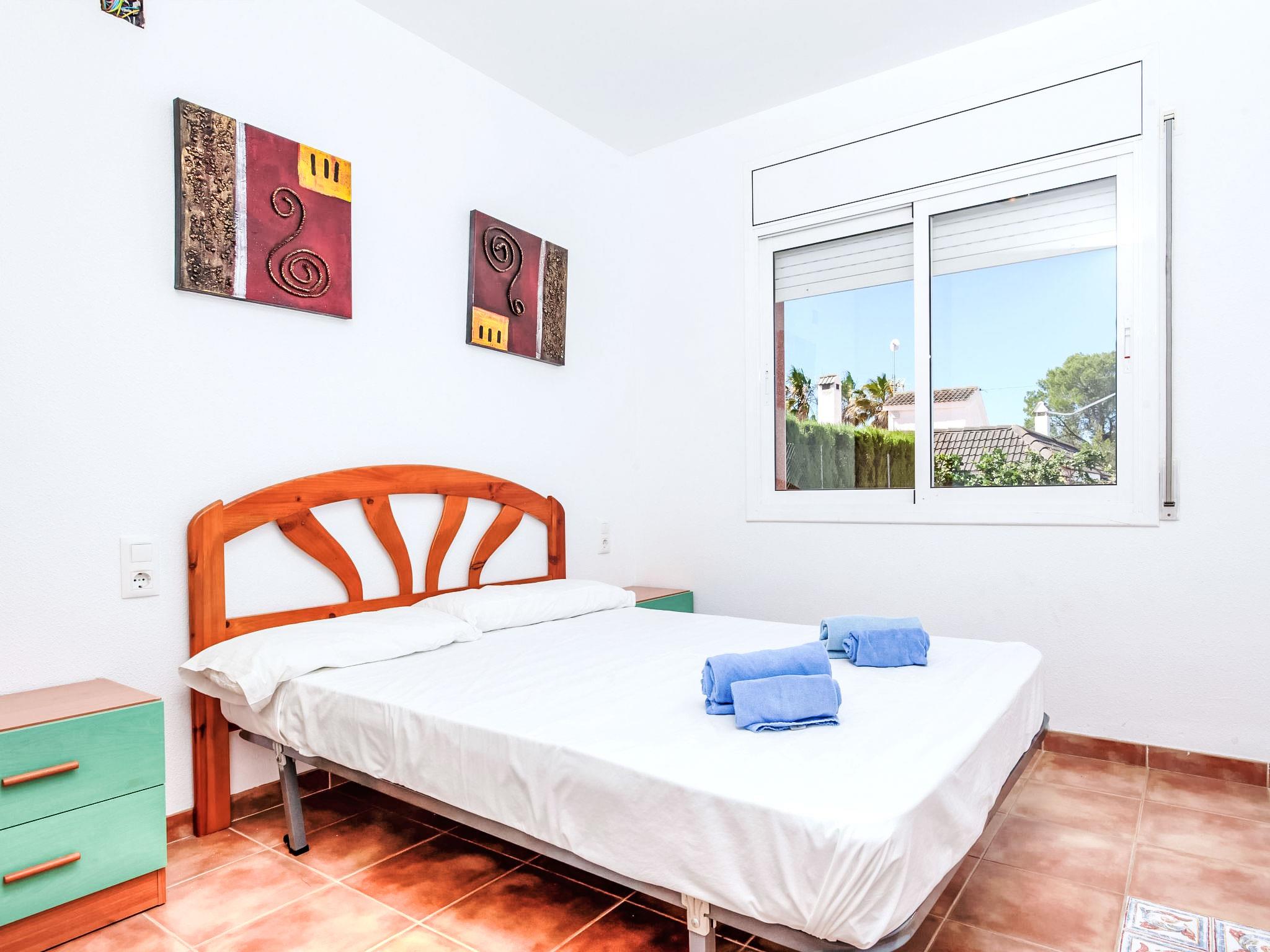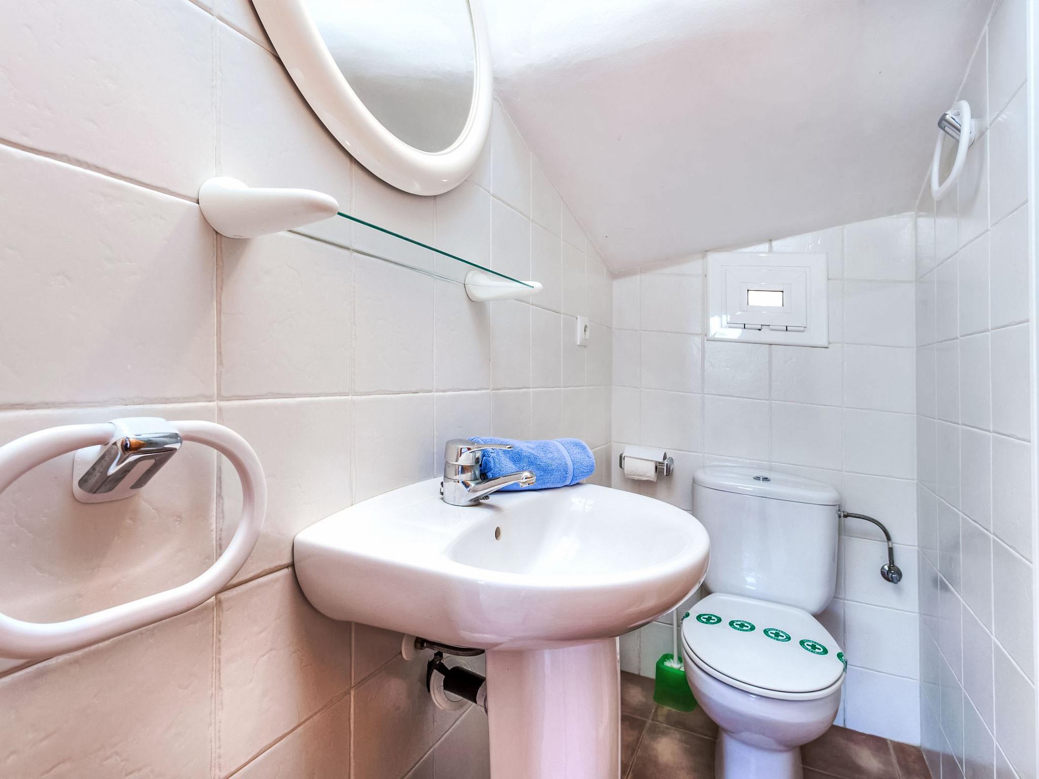 "Villa Santa Marta I", 6-room terraced house 150 m2 on 2 levels. Comfortable and cosy furnishings: living/dining room with dining table, satellite TV and digital TV (flat screen). Exit to the patio, to the swimming pool. 1 room with 1 french bed (135 cm), fan. Kitchen (4 hot plates, oven, dishwasher, toaster, kettle, microwave, electric coffee machine). Sep. WC. No heating option. Upper floor: 2 rooms, each room with 2 beds (90 cm). 1 room with 2 beds (90 cm). Exit to the terrace. 1 room with 1 french bed (135 cm), shower/WC. Exit to the terrace. Bath/bidet/WC. Small terrace. Terrace furniture, barbecue. Facilities: washing machine, iron, children's high chair, baby cot, hair dryer. Internet (WiFi, free). Maximum 1 pet/ dog allowed. HUTTE001231 // Reg. Nr.: ESFCTU00004302000065245500000000000000000HUTTE0012313