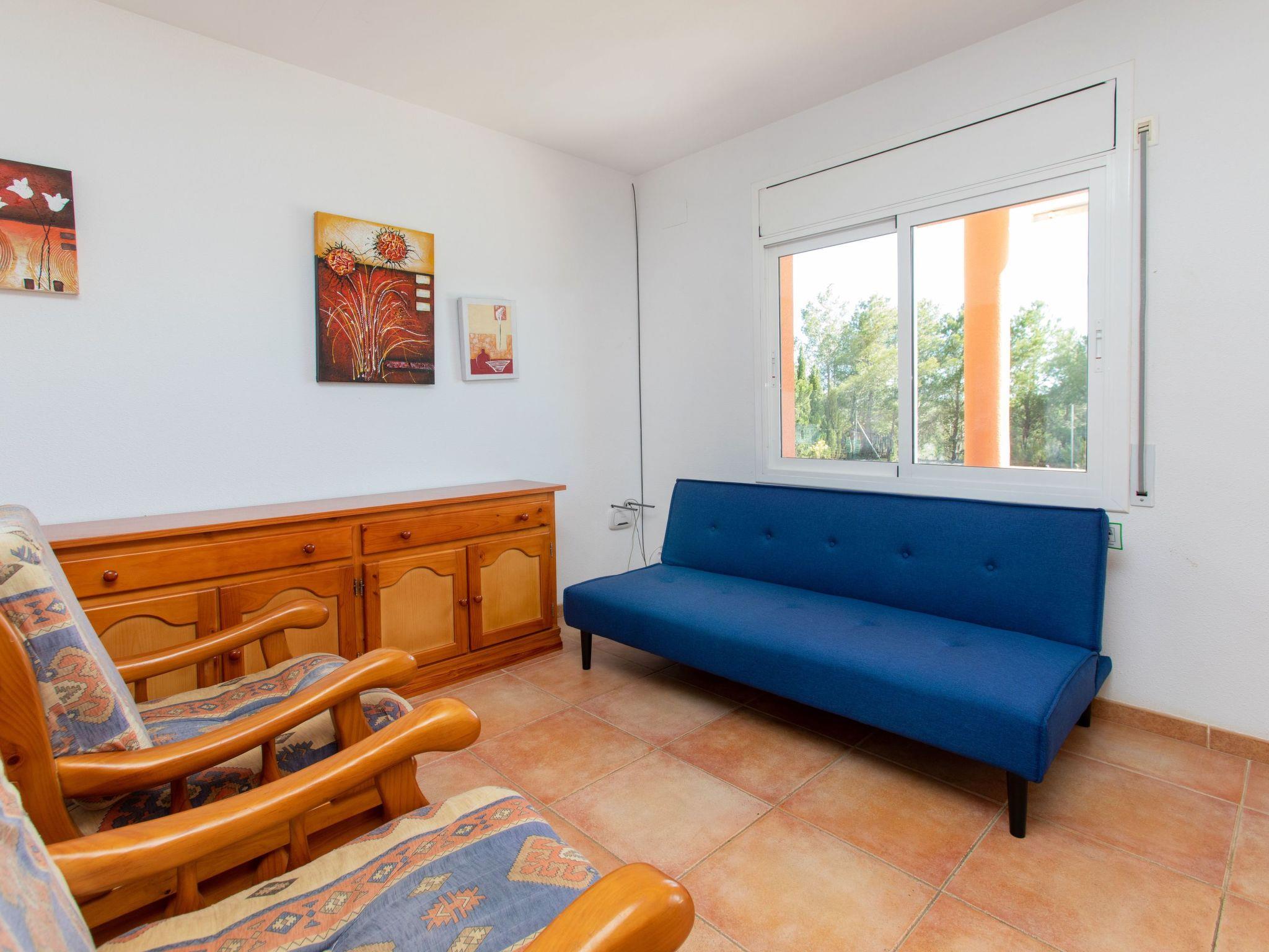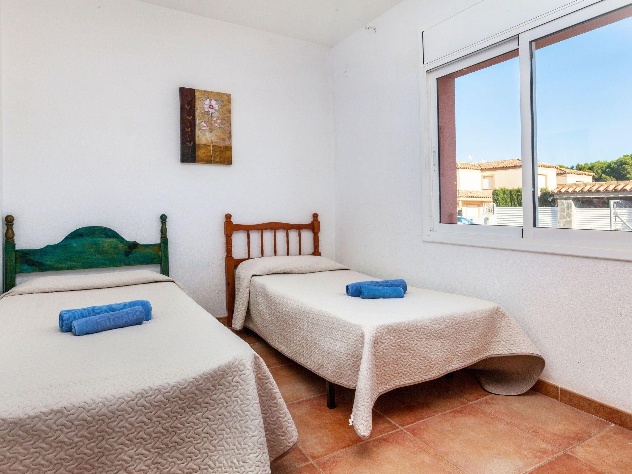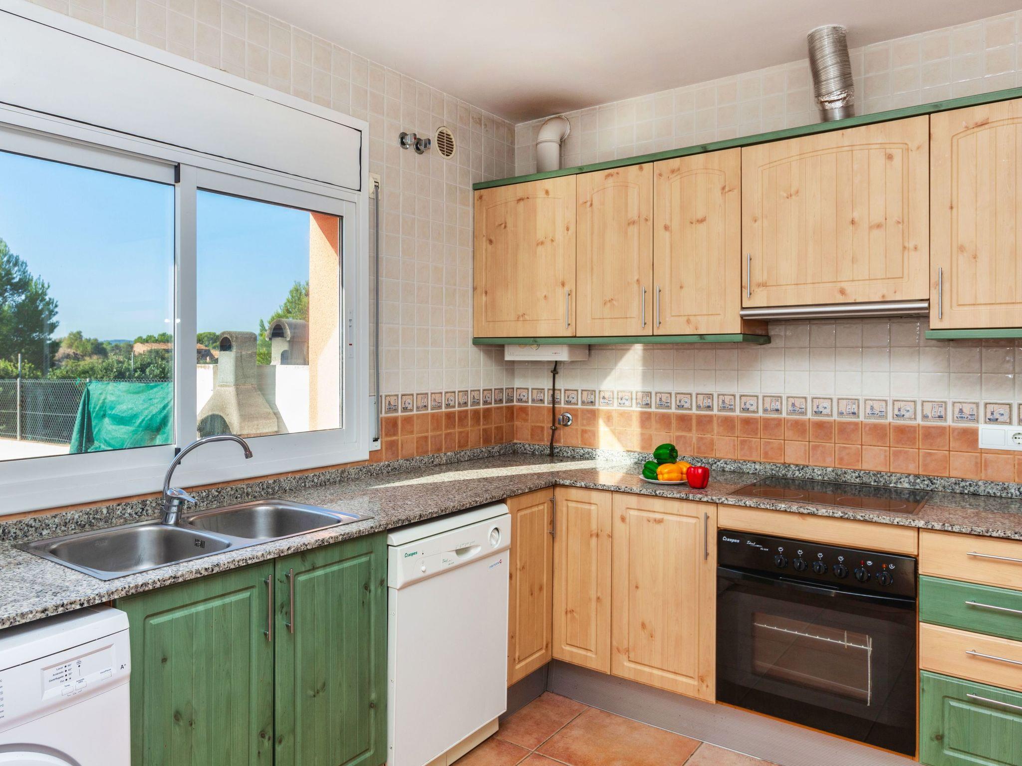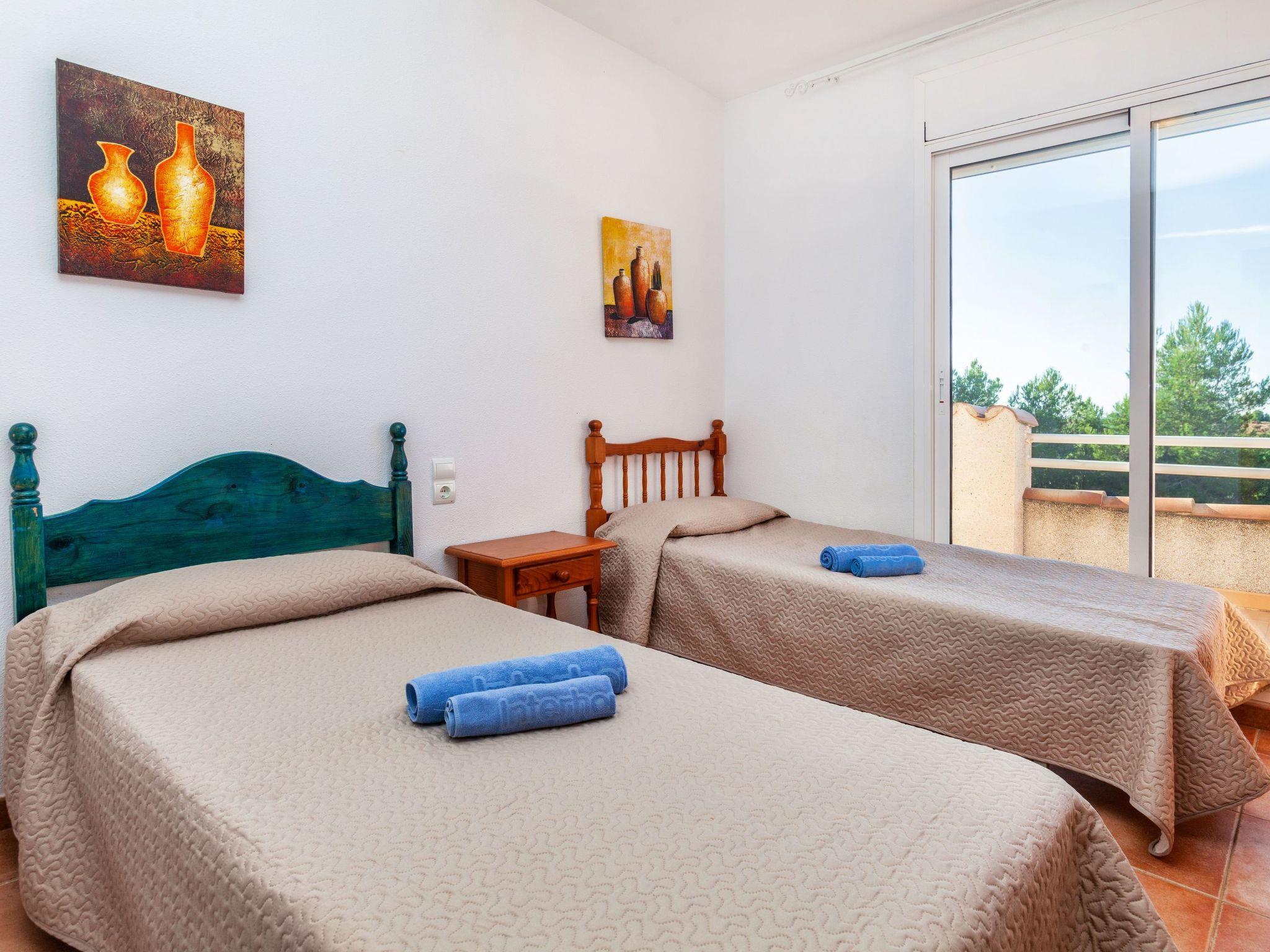 "Villa Malva I", 5-room villa 150 m2 on 2 levels. Practical and cosy furnishings: living/dining room with dining table, satellite TV and digital TV. Exit to the patio, to the swimming pool. 1 room with 1 french bed (135 cm), fan. 1 room with 2 beds (90 cm). Exit to the terrace. Large kitchen (oven, dishwasher, 3 ceramic glass hob hotplates, toaster, kettle, microwave, electric coffee machine). Bath/bidet/WC, double hand-basin. No heating option. Upper floor: 1 room with 1 french bed (135 cm). Exit to the terrace. 1 room with 2 beds (90 cm). Exit to the terrace. Bath/bidet/WC. Small terrace. Terrace furniture, barbecue. View of the countryside. Facilities: washing machine, iron, children's high chair, baby cot, hair dryer. Internet (WiFi, free). Parking (fenced) at the house. Maximum 1 pet/ dog allowed. HUTTE001224 // Reg. Nr.: ESFCTU00004302000083207900000000000000000HUTTE0012247