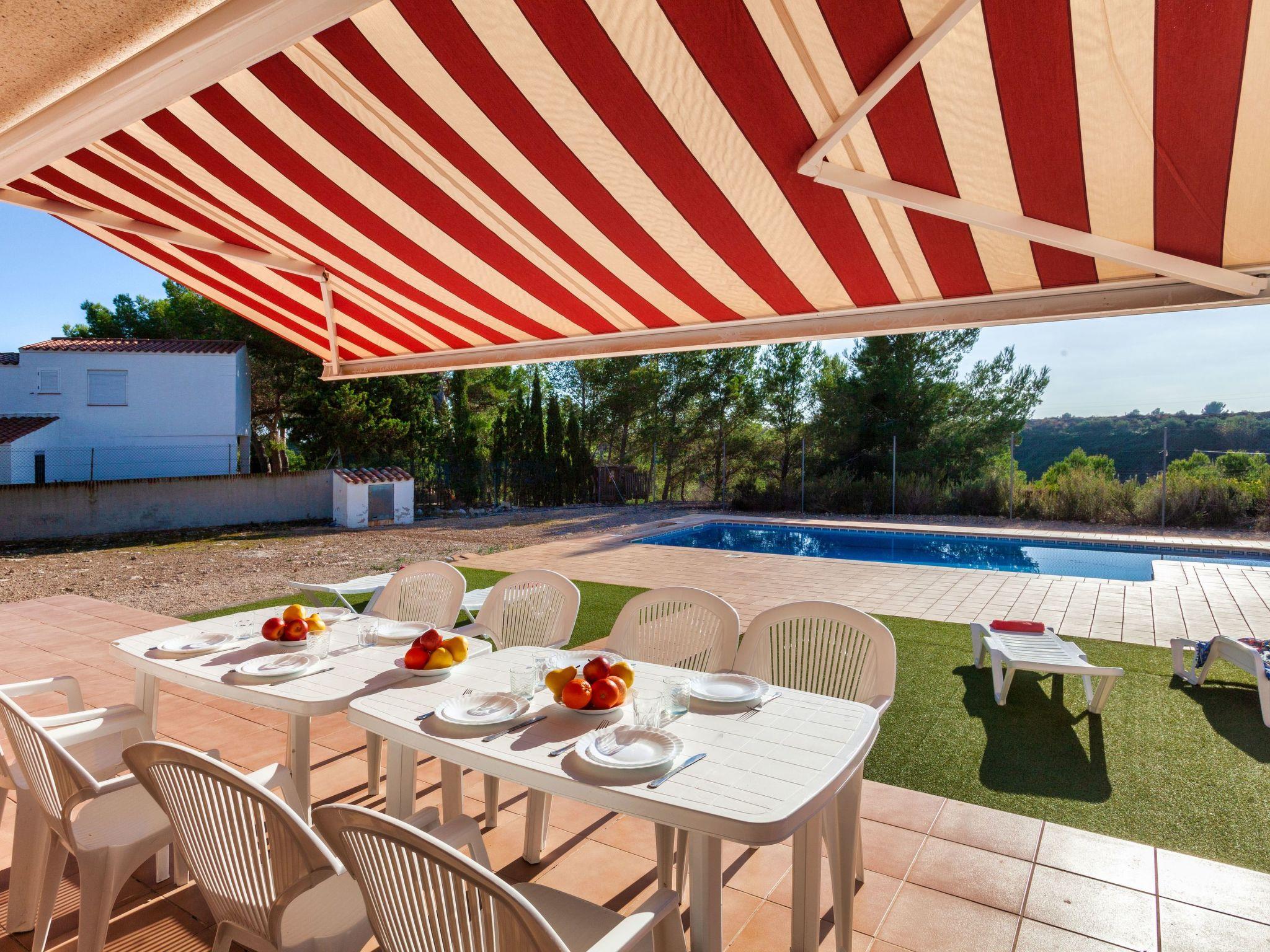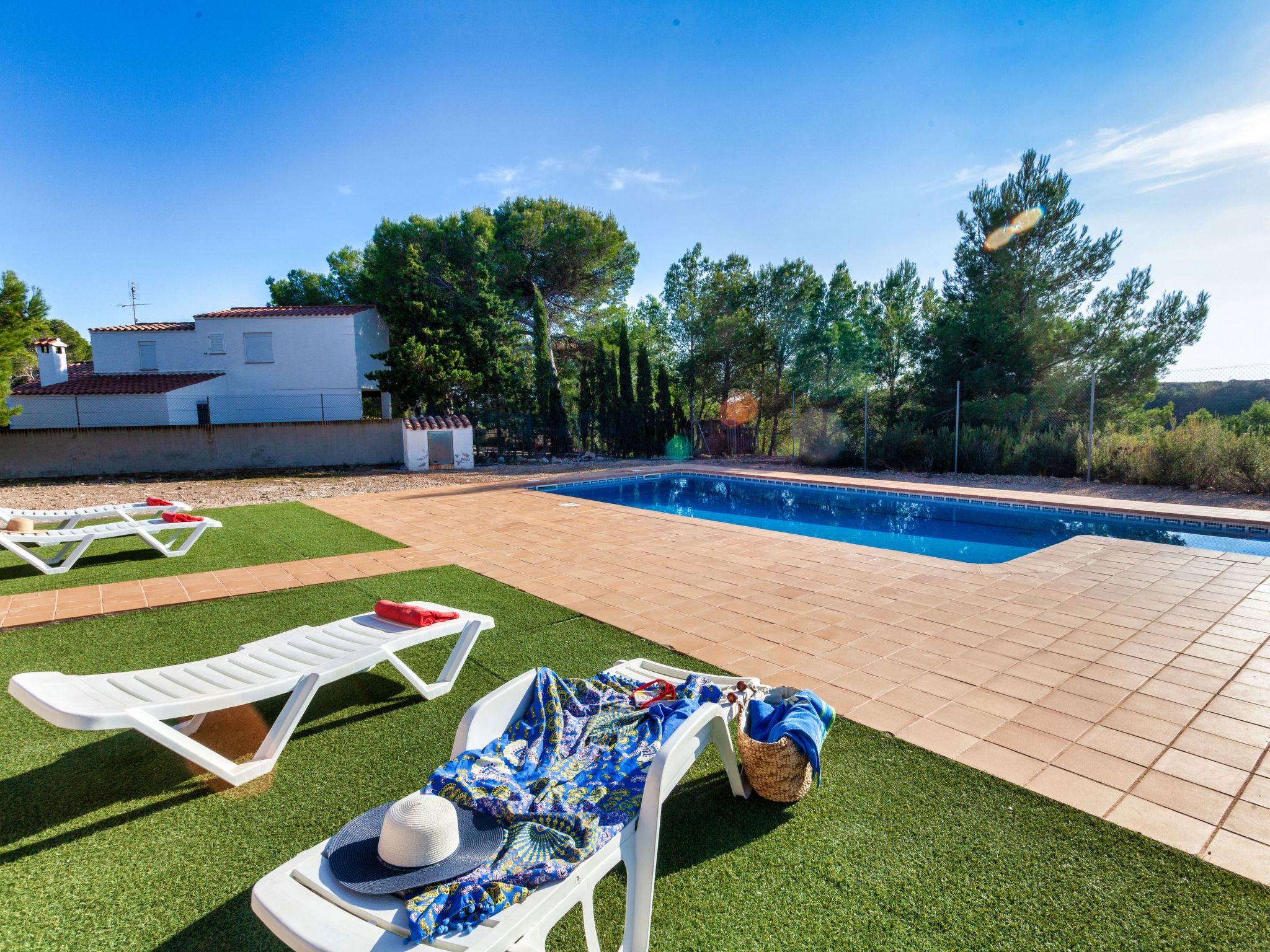 Urb. Tres Cales 4 km from L'Ametlla de Mar: Cosy, comfortable villa "Malva I", 2 storeys. Outside the resort, 4.8 km from the centre of L'Ametlla de Mar, in a quiet, sunny position, 1.1 km from the sea, 1.1 km from the beach. Private: natural state property (fenced), swimming pool (6 x 3 m, depth 80 - 190 cm, seasonal availability: 01.Apr. - 31.Oct.). Terrace, garden furniture, pool maintenance by the owner/gardener. Parking at the house. Grocery, supermarket, restaurant, bar 700 m, bus stop 800 m, railway station 4.8 km, sandy beach 1.1 km. Nearby attractions: Parque Portaventura 48 km, parque Aquopolis 51 km, parque natura del Delta del Ebro 35 km, Tarragona 57 km, Reus 48 km, Barcelona 153 m. Please note: car recommended. Groups of teenagers on request only.