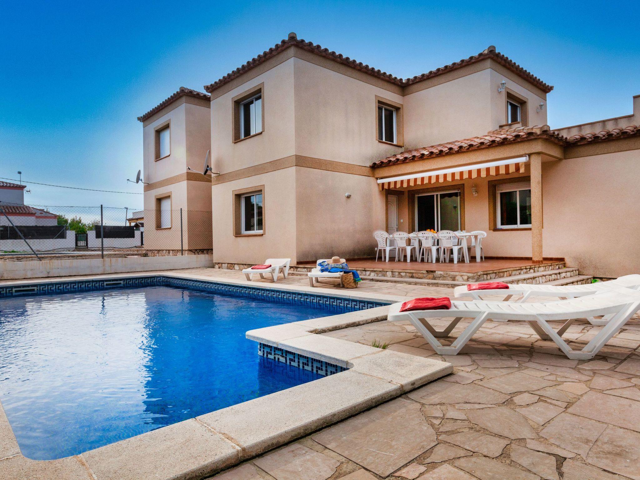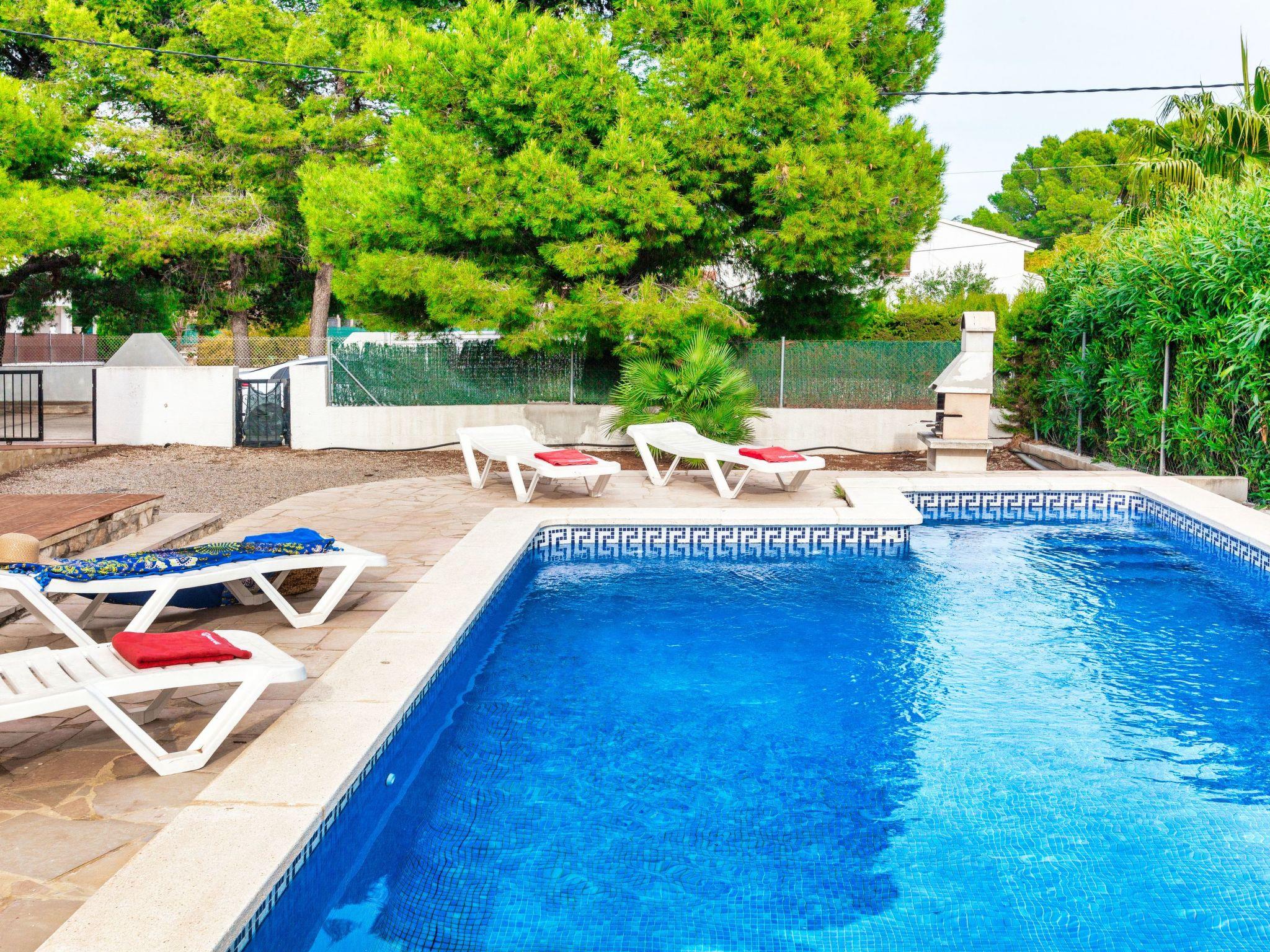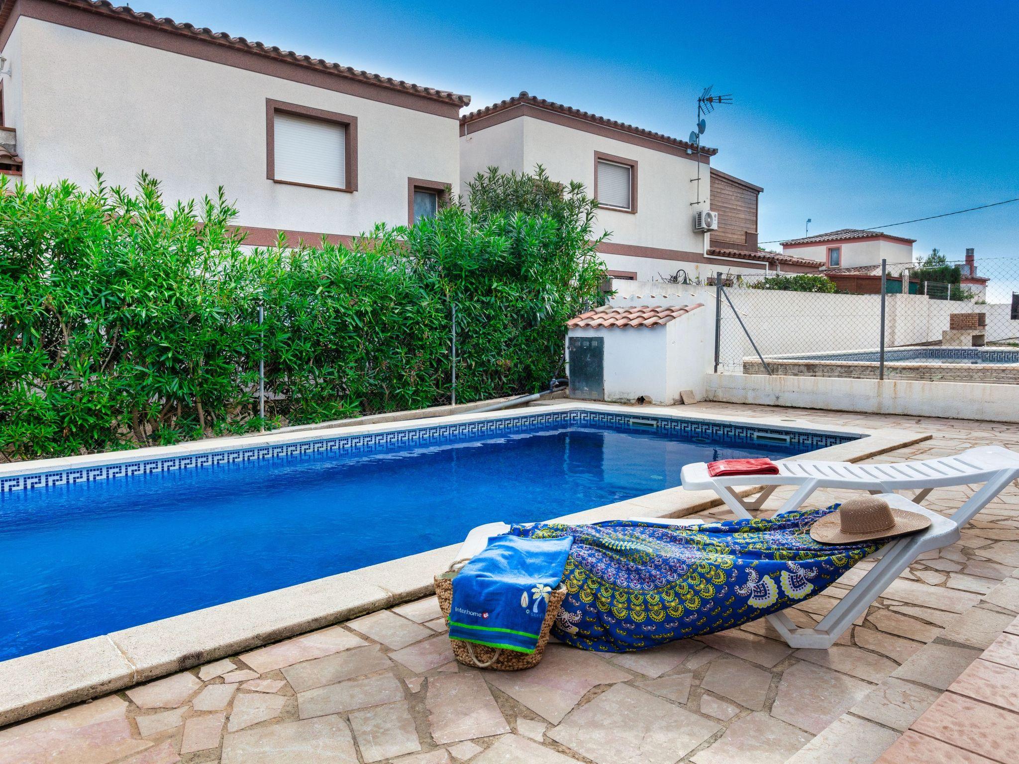 Urb. Tres Cales 4 km from L'Ametlla de Mar: Cosy villa "Mimosa II", 2 storeys. Outside the resort, 4.8 km from the centre of L'Ametlla de Mar, in a quiet, sunny position, 1.1 km from the sea, 1.1 km from the beach. Private: natural state property (fenced), swimming pool (8 x 4 m, depth 80 - 190 cm, seasonal availability: 01.Apr. - 31.Oct.) with internal staircase. Terrace, garden furniture, barbecue, pool maintenance by the owner/gardener. Parking at the house. Grocery, supermarket, restaurant, bar 700 m, bus stop 800 m, railway station 4.8 km, sandy beach 1.1 km. Nearby attractions: Parque Portaventura 48 km, parque Aquopolis 51 km, parque natura del Delta del Ebro 35 km, Tarragona 57 km, Reus 48 km, Barcelona 153 km. Please note: car recommended. Groups of teenagers on request only.
