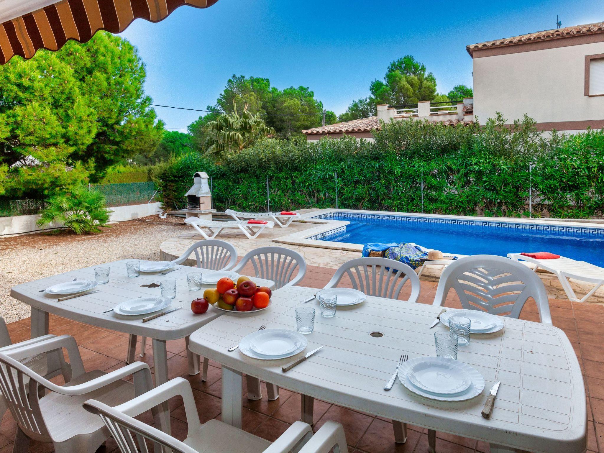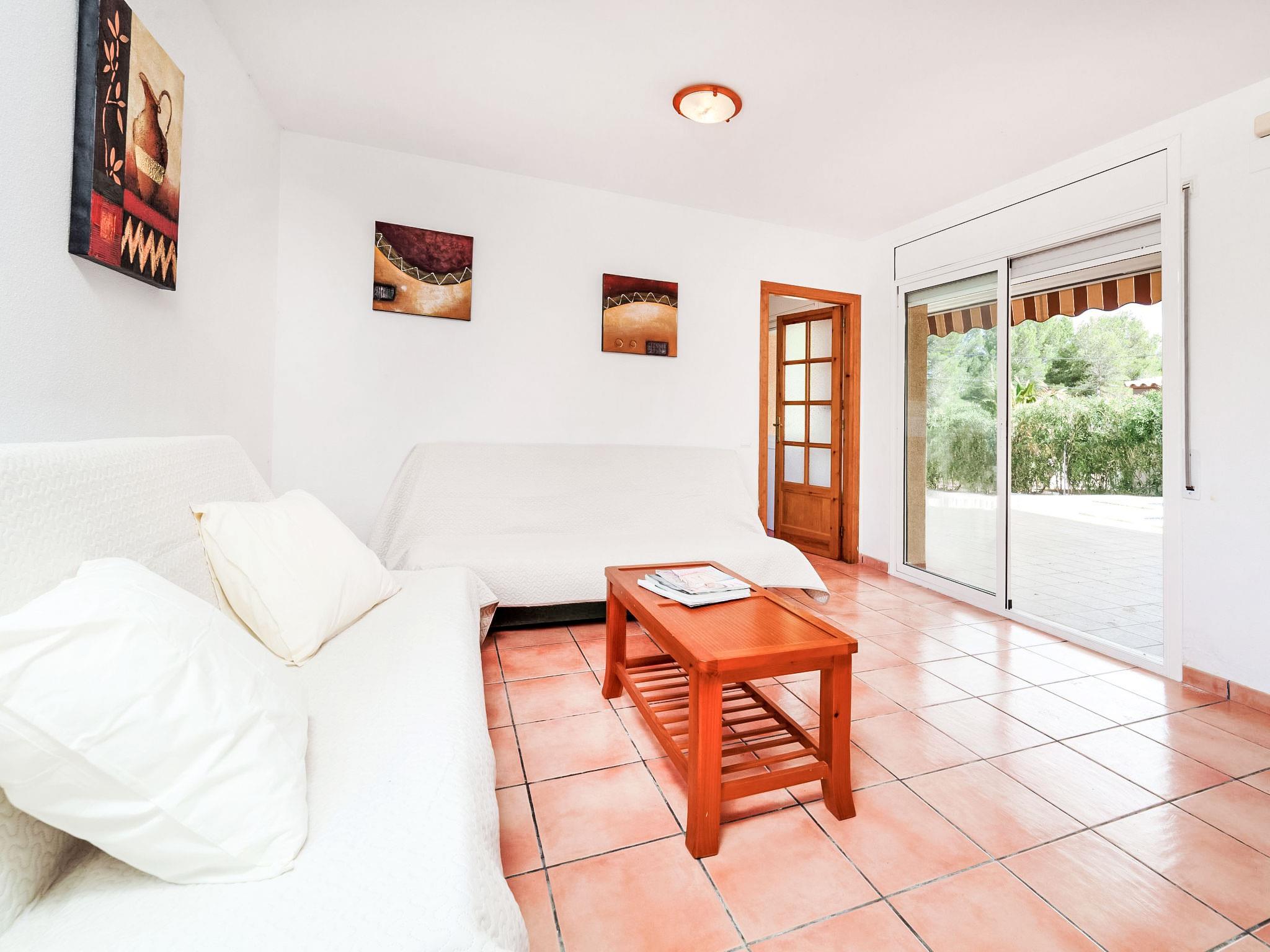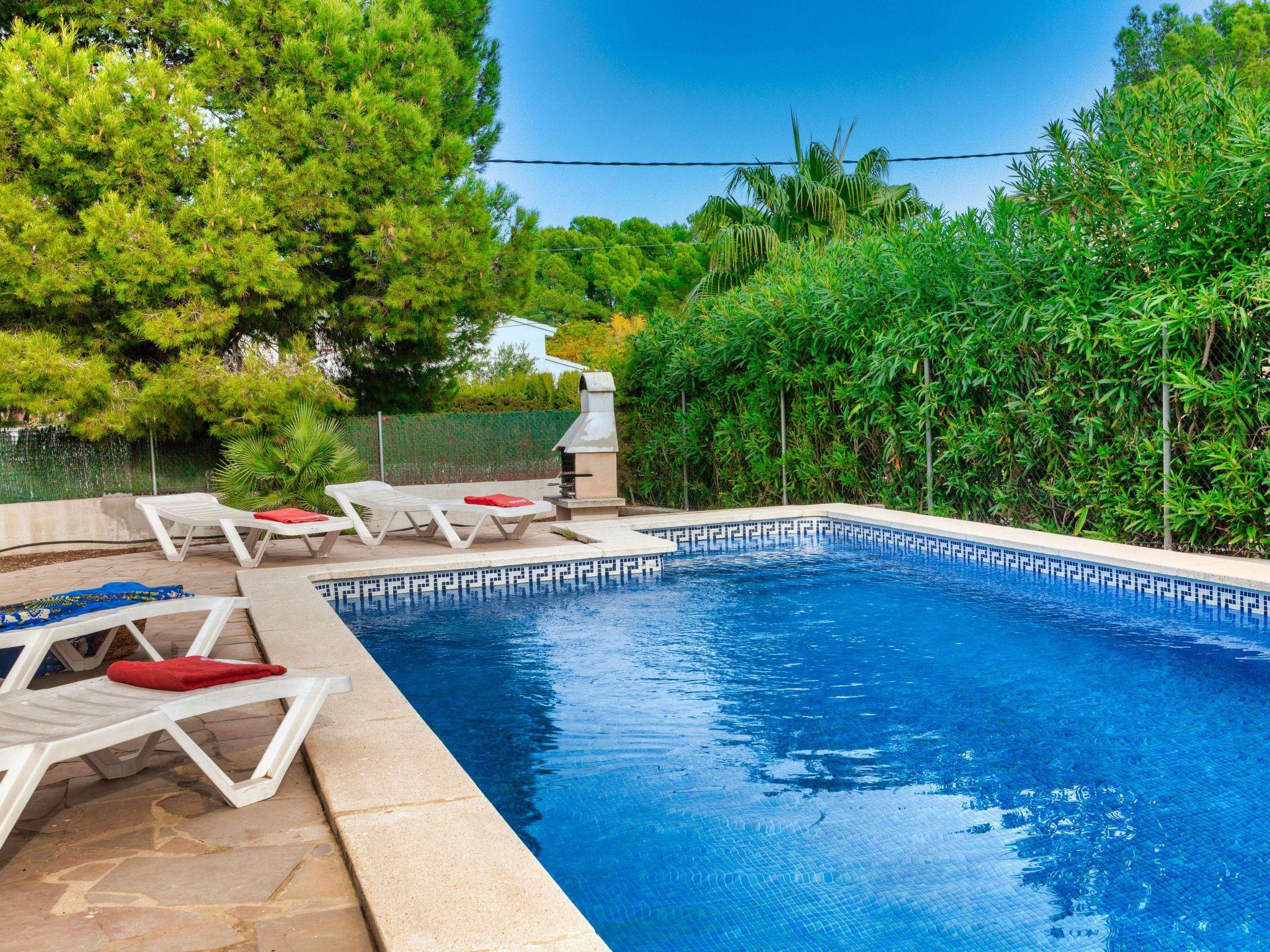 Urb. Tres Cales 4 km from L'Ametlla de Mar: Cosy villa "Mimosa II", 2 storeys. Outside the resort, 4.8 km from the centre of L'Ametlla de Mar, in a quiet, sunny position, 1.1 km from the sea, 1.1 km from the beach. Private: natural state property (fenced), swimming pool (8 x 4 m, depth 80 - 190 cm, seasonal availability: 01.Apr. - 31.Oct.) with internal staircase. Terrace, garden furniture, barbecue, pool maintenance by the owner/gardener. Parking at the house. Grocery, supermarket, restaurant, bar 700 m, bus stop 800 m, railway station 4.8 km, sandy beach 1.1 km. Nearby attractions: Parque Portaventura 48 km, parque Aquopolis 51 km, parque natura del Delta del Ebro 35 km, Tarragona 57 km, Reus 48 km, Barcelona 153 km. Please note: car recommended. Groups of teenagers on request only.