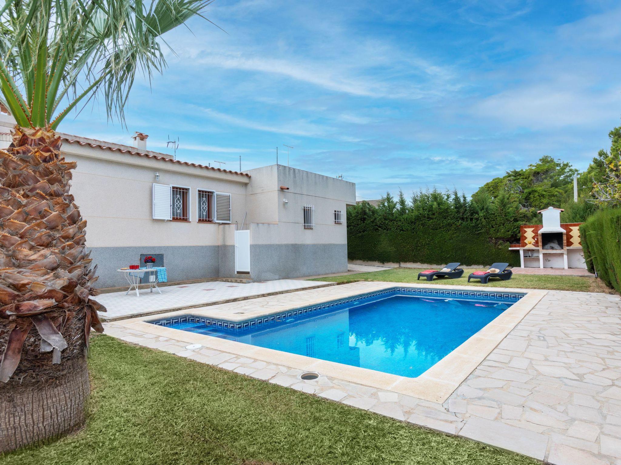 Urb. Calafat 8 km from L'Ametlla de Mar: Cosy, comfortable villa "Tello". 1 km from the sea, 1 km from the beach. Private: well-kept garden with lawn, swimming pool (6 x 4 m, depth 70 - 170 cm, seasonal availability: 01.Apr. - 01.Nov.). Outdoor shower, patio, garden furniture, barbecue, pool maintenance by the owner/gardener. Parking at the house. Supermarket, restaurant, bar 200 m, bus stop 5.3 km, railway station "ametlla de mar" 9.8 km. Sports harbour 500 m. Nearby attractions: Parque Portaventura 48 km, parque Aquopolis 51 km, parque natura del Delta del Ebro 35 km, Tarragona 57 km, Reus 48 km, Barcelona 153 km. Please note: car recommended. Groups of teenagers on request only.