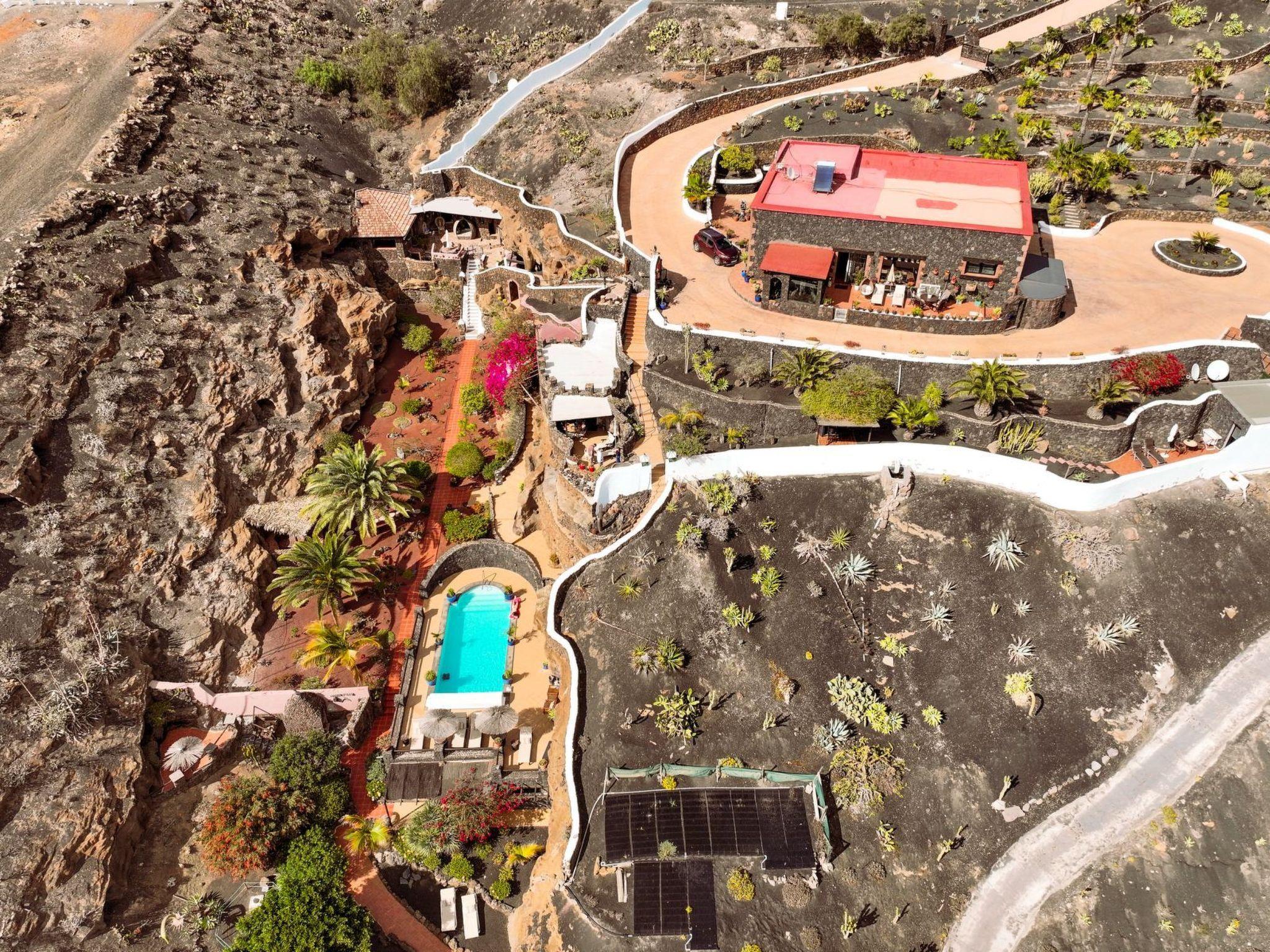 Discover the unparalleled charm of staying in a holiday home nestled within Lanzarote's iconic volcanic rocks. This unique property, influenced by the style of Cesar Manrique, offers an indescribable ambiance that combines romance with rugged beauty. Positioned close to the renowned wine region of La Geria and merely 300 meters above the elegant yacht harbor of Puerto Calero, this residence welcomes you to an exclusive retreat away from the bustling tourist spots. It sits on a 12,000 square-meter fenced estate with vast parking, ensuring privacy and convenience for your dream vacation.