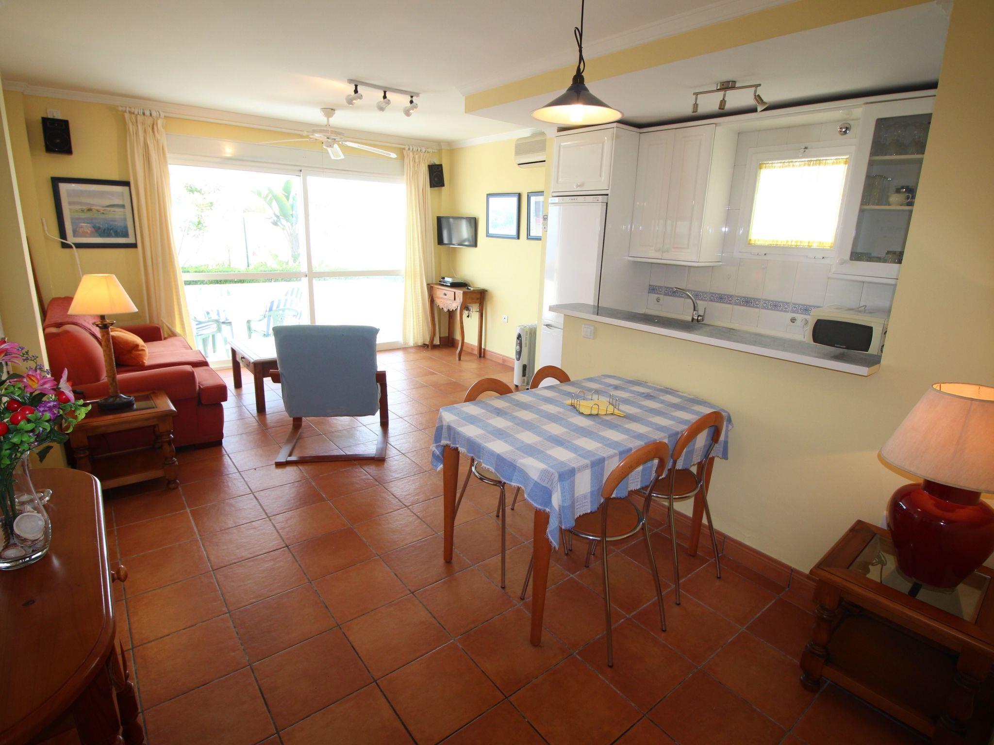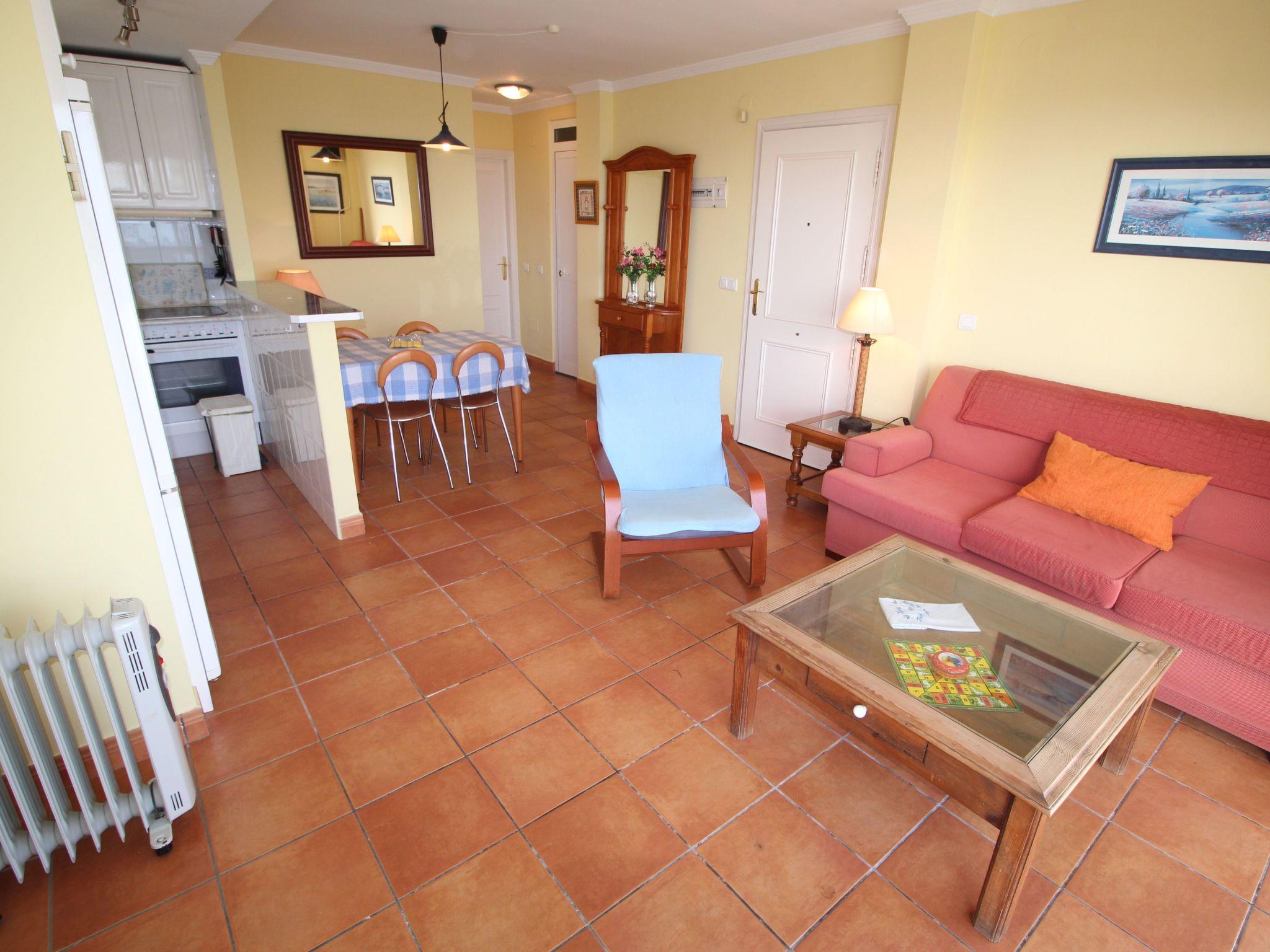 Flat no. 02, DIRECTLY on the BEACH !!! 100% sea view !!! DIRECTLY on the BEACH !!! 100% sea view !!! Sea noise included !!! APARTMENT in absolutely quiet DREAM LOCATION, away from any traffic, but centrally located, pools, tennis, sunbathing lawns, kilometre-long sandy beach right on the doorstep, approx. 10 metres away complete infrastructure, simply everything available. NOT A HIGH-RISE FLAT!!! SEA VIEWS from the flat and from the terrace! As good as new beach flat fully furnished and maintained, 1 terrace approx. 10 m² off the living room, with seating, table and parasol 1 kitchen, open with large fridge with freezer, Zerrann hob, oven, dishwasher microwave, toaster, electric coffee machine and "espresso" Spanish, kettle, hand blender 1 dining area with large table 1 bedroom with a bed 1.80m x 2.00m for 2-pers. 1 sofa bed in the living room folds out for 2 people. 1 living room 1 TV, 1 radio, 1 alarm clock (on request) 1 bathroom with washbasin, toilet, shower, small hairdryer on request. Radiant heater above the door, washing machine, clothes horse & laundry basket, . Ironing board & simple iron, mop with bucket and broom with shovel 1 SAFE in the parents' bedroom CEILING VENTILATOR in the living room & in the parents' bedroom In winter with electric radiators in the living room & in the parents' bedroom AIR CONDITIONING in the living room and in the bedroom, the use of which is subject to a surcharge. The flat is barrier-free, but does not correspond to the usual dimensions for a wheelchair user, the shower plate is slightly raised and has shower walls.