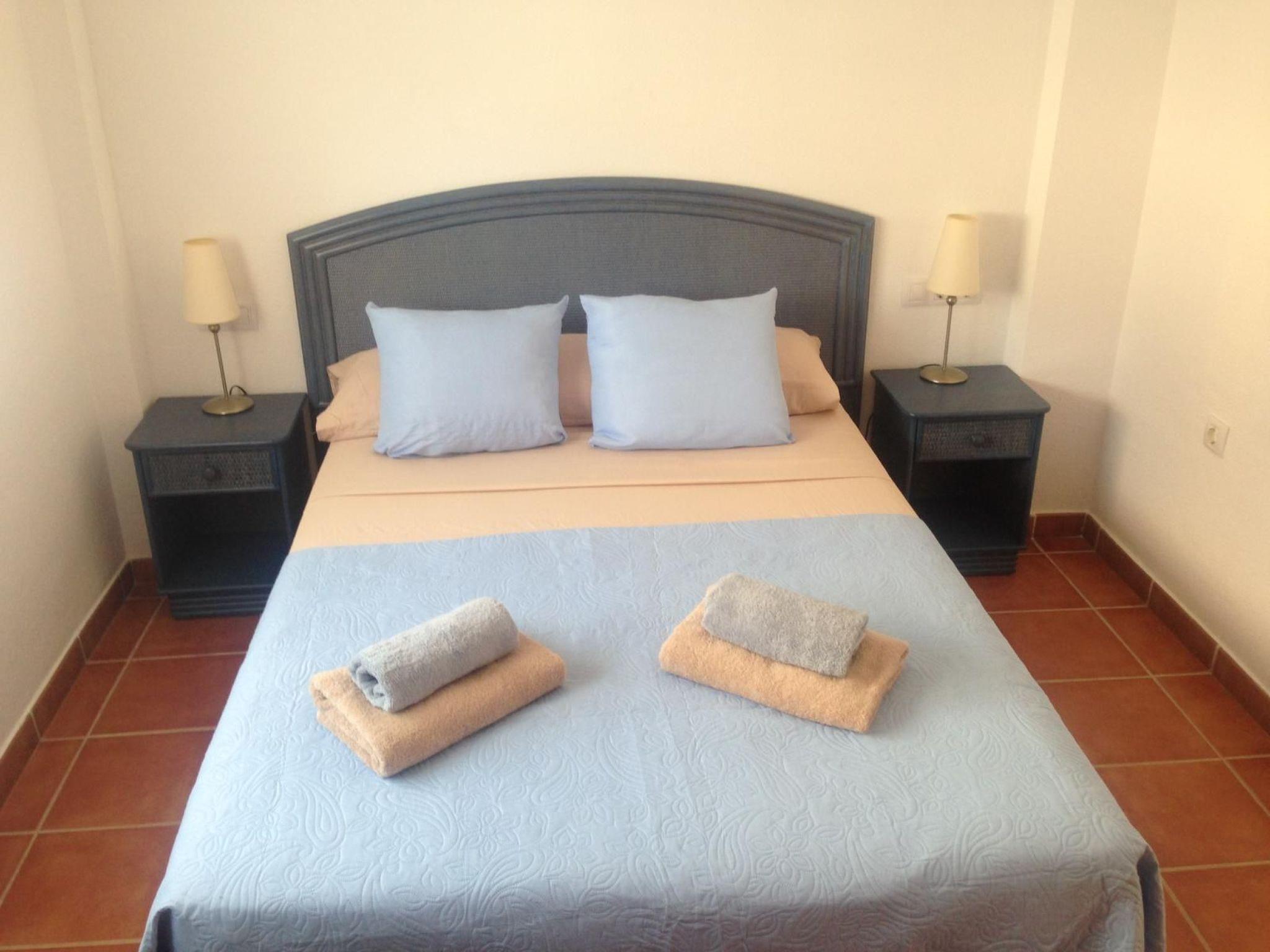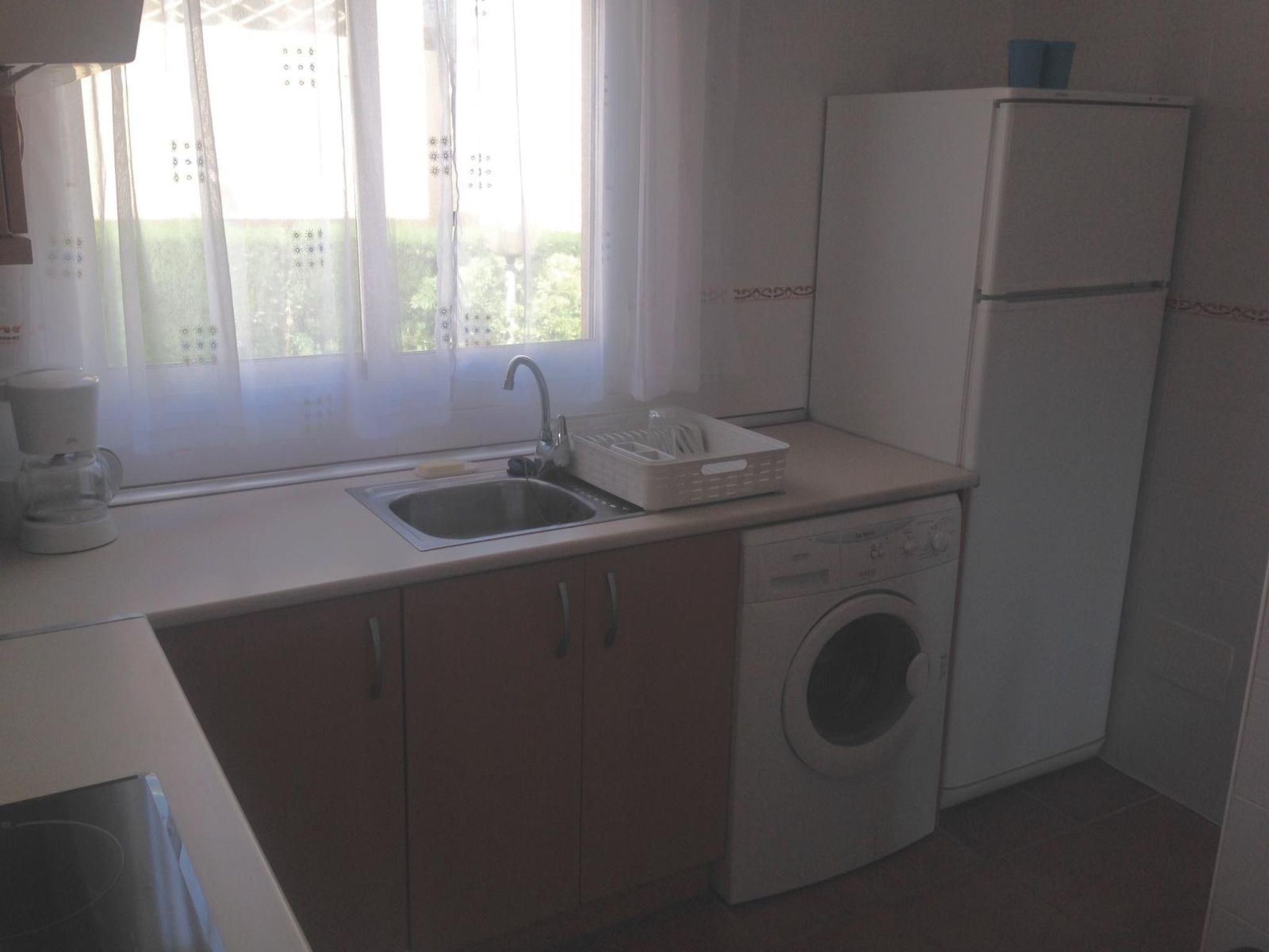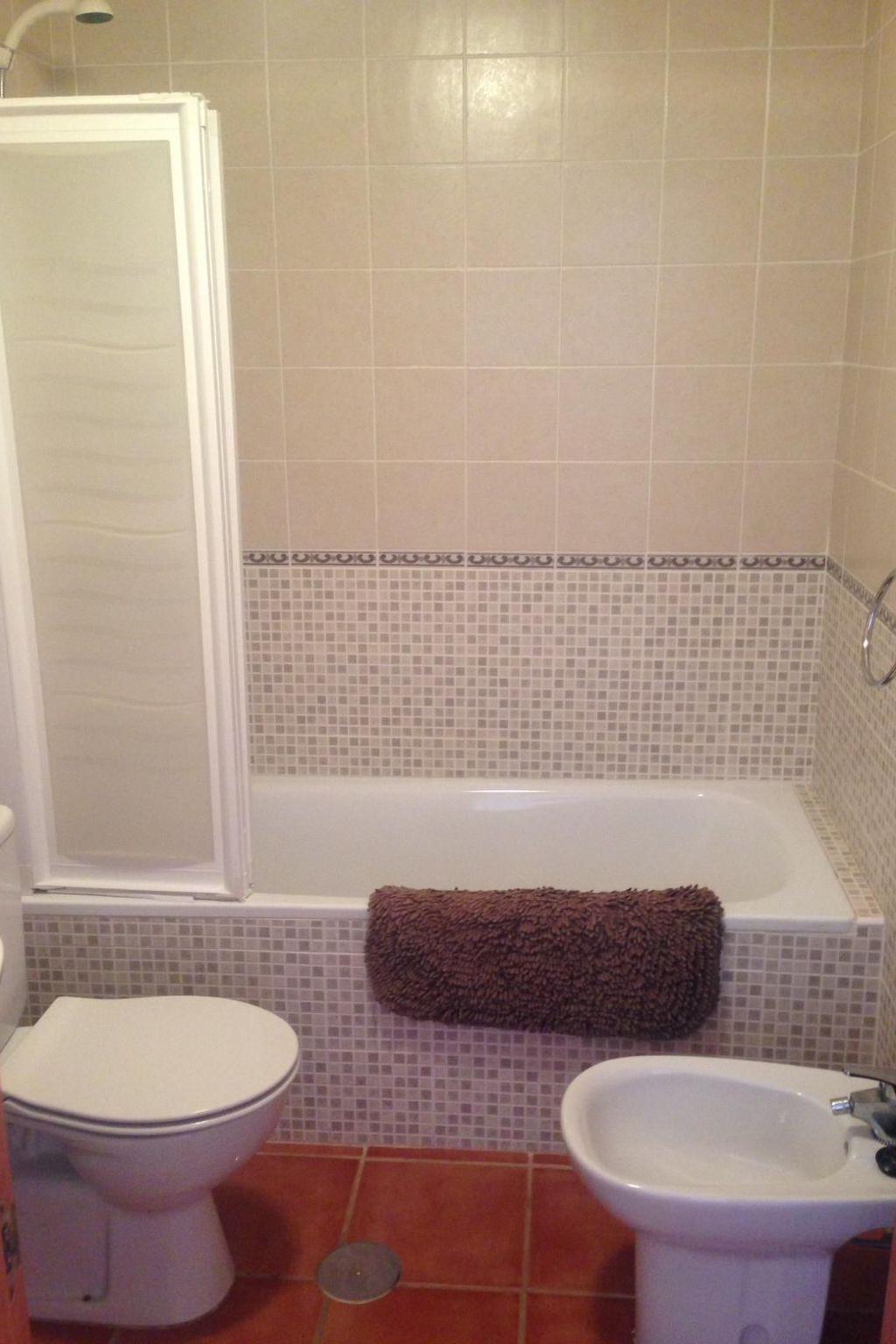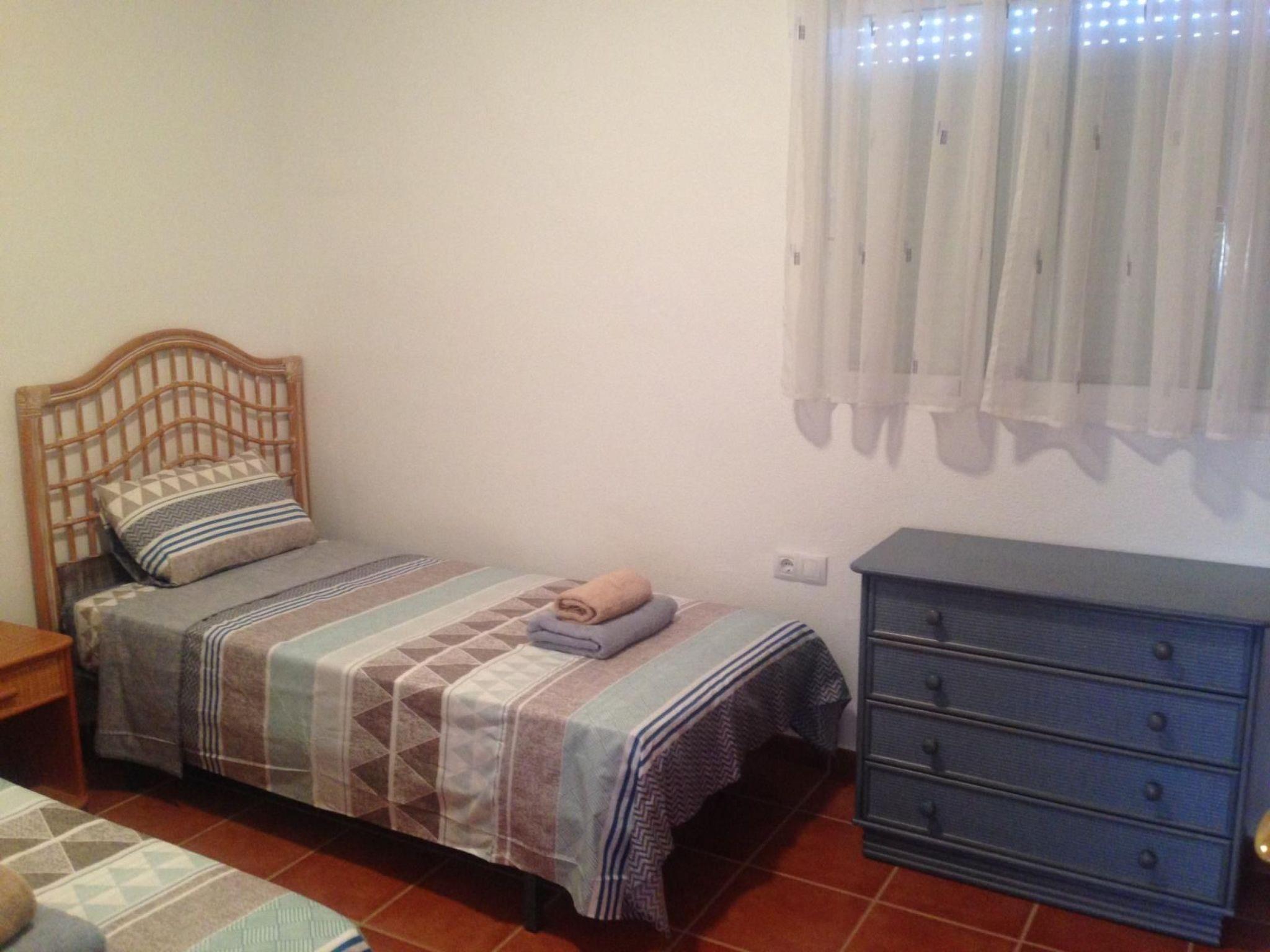 The accommodation has some stairs to the front door and stairs to the roof terrace and comprises: living room with sofa and two separate chairs, dining table with 4 chairs, DVD player, Spanish TV and WiFi available in the property. A balcony off the lounge offers you some views of the beautiful sea and mountains, with a set of table and chairs for relaxing. The kitchen has a large fridge, microwave, kettle, oven, hob, toaster and washing machine.