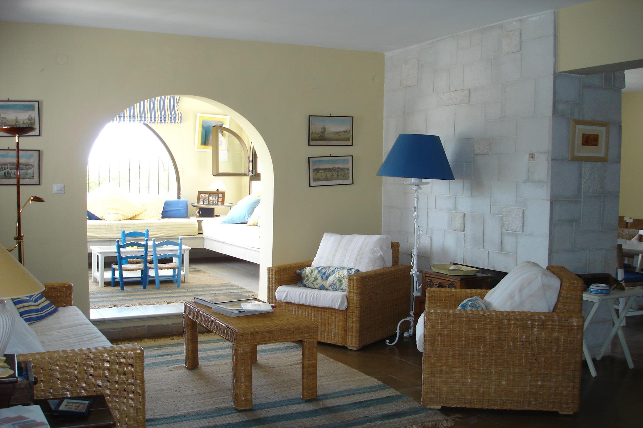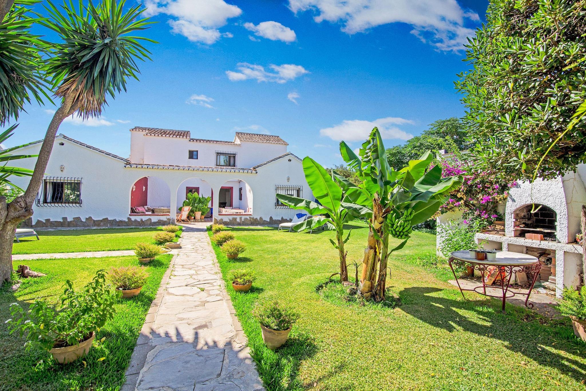 Et pragtfuldt feriehus ved havet med et separat gæstehus, unikt beliggende direkte på havet: Fra terrasserne eller fra haven kan du gå direkte ud på La Cala de Mijas-stranden. Pensionatet er kun adskilt fra hovedhuset af en lille gade. Den indhegnede have er helt privat, et tropisk paradis med banantræer, hibiscus og vinstokke. Terrassen byder på skygge og beskyttelse mod vinden: Selv om vinteren er det ofte behageligt varmt. Vinterrummet er et meget afslappende værelse af lounge-type med store komfortable puder; det perfekte sted at nyde den vidunderlige havudsigt, måske med et glas vin og din yndlingsmusik. Dette rummelige og komfortable 7-værelses feriehus med gæstehus er meget velegnet til flere familier med børn. Beliggenheden ved stranden og det omhyggeligt møblerede hjem gør dette til en enestående og eftertragtet feriedestination.