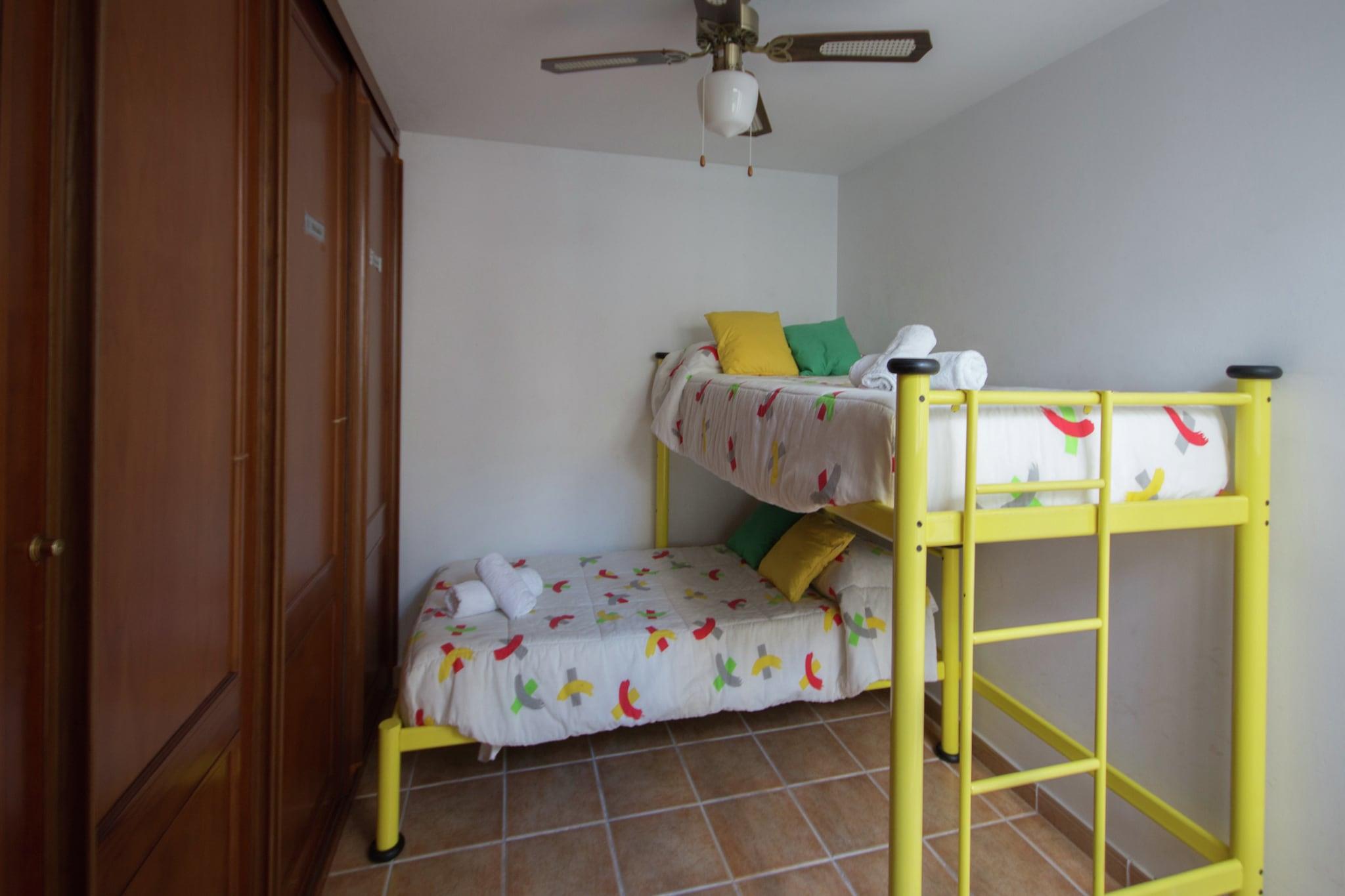 Dette feriehus har komfortable soveværelser og er ideel til flere familier. Det ligger i Mijas på den populære Costa del Sol. Denne rummelige lejlighed byder på en fantastisk udsigt over havet og bjergene. De nærmeste restauranter og butikker ligger få skridt fra feriehuset. Inden for gåafstand finder du et tenniscenter og få minutters kørsel væk ligger Golf Club El Soto med restaurant og fitnesscenter. Huset ligger kun 100 m fra stranden ved havet, hvor du kan tilbringe dagene med at slappe af i solen Boligen har aircondition og en stor overdækket terrasse. Tilbered dine yndlingsretter i det åbne køkken med opvaskemaskine og slap af med en god bog i den rummelige have med fælles pool. Der er WiFi i huset, og du kan bruge vaskemaskine og tørretumbler. Indgangen er tilgængelig via en udvendig trappe.