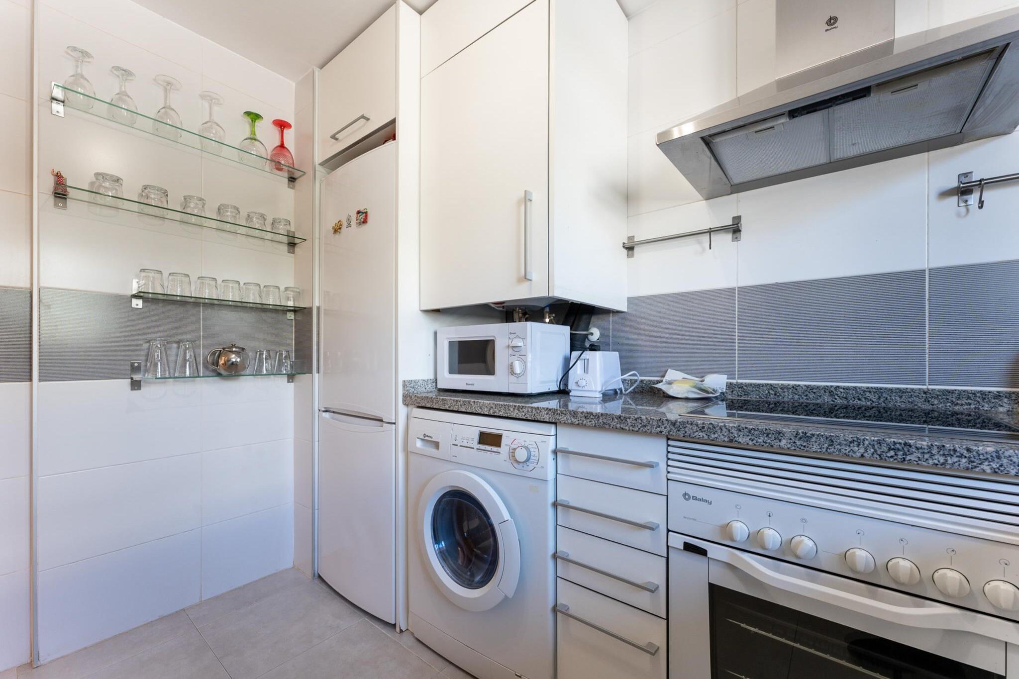 Flygt til moderne luksus i La Cala de Mijas, hvor denne fantastiske lejlighed venter i en af områdets mest eksklusive nye boligområder. Designet med minimalistisk elegance udstråler hvert solrigt rum ro og skaber den perfekte atmosfære til ro og foryngelse. Dette moderne tilflugtssted er ideelt til familier eller venner og er din stilfulde port til Costa del Sol. Træd ind i to indbydende soveværelser: et med en blød dobbeltseng og et andet med to hyggelige enkeltsenge, der tilbyder fleksible sovemuligheder. Lejligheden har et komplet badeværelse med badekar og et ekstra toilet med bruser. Et fuldt udstyret køkken inspirerer til kulinarisk kreativitet, mens den rummelige stue-spisestue åbner ud til en privat terrasse med rolig udsigt over haven og poolen – din personlige oase.