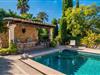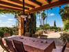 “La Calderera” er et sandt modelobjekt og samtidig så charmerende og magisk, at I simpelthen kan føle jer hjemme her. Det er da ikke så mærkeligt, at dette ubeskriveligt smukke landsted allerede er set i "Schöner Wohnen" og "Casa y Campo". Alene området udenfor er uvirkeligt. Det kunstneriske havedesign består af en tilsyneladende tilfældig kombination af enorme palmer, cypresser, oliven- og frugttræer, samt frodige blomstrende og sukkulente planter, spredt ud over store grunde. Brostensvægge og naturstensterrasser fremstår nærmest, som om de var vokset naturligt og slet ikke var designet. Siddepladser er anlagt som skjulte skatte: overdækkede terrasser foran og bag huset; en afslappet lounge i haven; og en pergola dekoreret med søde lilla blomster og et opholdsområde, der fører til poolområdet nær huset. Selve poolen, dekoreret med turkis mosaiksten, er omgivet af en solterrasse med liggestole, smukke bænke og en smuk samling af cafetilbehør med et overdækket område. Læsning af en bog, en kølig drink i skyggen, en hyggelig snak med vennerne, en godnatdrink efter en livlig grillaften i det overdækkede udekøkken med praktisk grill og indbydende spiseplads - her finder I jeres yndlingssted til alle jeres ferieaktiviteter , fordi "La Calderera" har et virkelig udsøgt udvalg. Den nutidige økologiske orientering, som afspejles både i forsyningen af solenergi og i tilstedeværelsen af dens egen vandbrønd, bør ikke forblive unævnt. Interiøret i dette smagfuldt indrettede landsted, som vi varmt anbefaler, er lige så privat, men personligt som haven. Både ude og inde er det de kærlige små detaljer, der sørger for, at besøgende hurtigt kan slappe af. Disse detaljer er så tilfældige, at de virker næsten slående, og alligevel skaber en helt igennem sammenhængende og harmonisk effekt. Dette er kunsten af fantastisk indretning; Naturligheden og tilbageholdenheden i finishen, perfekt afstemt til øen, giver villaen en vidunderlig karisma. Traditionelt kunsthåndværk i form af antikviteter, landlige artefakter, typisk keramik og neo-barokke møbler er omhyggeligt kombineret med strejf af vintage og landlig stil, hvilket resulterer i et tidløst design, der vil holde i århundreder. Den rummelige opholdsstue i brostenshuset med sine azurblå skodder strækker sig over to etager. På underetagen finder I den hyggelige stue med pejs, rundet af et flygel. Og et hyggeligt tv-hjørne skulle selvfølgelig ikke mangle. Det tilstødende værelse med udgang til en af terrasserne er et virkelig fortryllende, fuldt udstyret køkken i landlig stil i himmelblå, dygtigt kombineret med møbler i naturtræ. To badeværelser (et en-suite til naboværelset) er placeret i stueetagen, mens det tredje er på første sal, sammen med de tre hyggelige soveværelser, hvoraf det ene har to enkeltsenge. Efter en afslappende søvn begynder dagen med en ubekymret morgenmad og planlægning af jeres dag. Et ophold i haven eller poolen på "La Calderera" er bestemt en fantastisk måde at slappe af på. Men de omkringliggende feriesteder er også en attraktiv mulighed, da ejendommen ligger tæt på en landevej, der betjener den sydlige del af øen. Selve vejen kan nogle gange høres afhængigt af vindretningen. Felanitx og Manacor kan nås på meget kort tid. Dette er det perfekte sted, ikke kun for shopping, men også for kulturelle udflugter. Eller måske gå en tur til klosteret Sant Salvador, der ligger på et bjerg nær Felanitx og et af øens vartegn. Selvom poolen er betagende, som alt andet, vil de såkaldte Calas de Mallorca forbløffe jer med deres til tider forrevne klippeformationer og fine sandstrande, der er perfekte til svømning. Den udsøgte skønhed ved Villa "La Calderera" med dens haveoase byder på et muntert udvalg af siddepladser og et smukt poolområde. Det ekstraordinære feriehus ligger lige nord for Felanitx i et landligt område. Der er både butikker og marked søndag morgen - en god måde at starte dagen på. De utrolige strande mod øst, herunder ufattelige naturlige strande som Cala Varques, er let tilgængelige med bil.