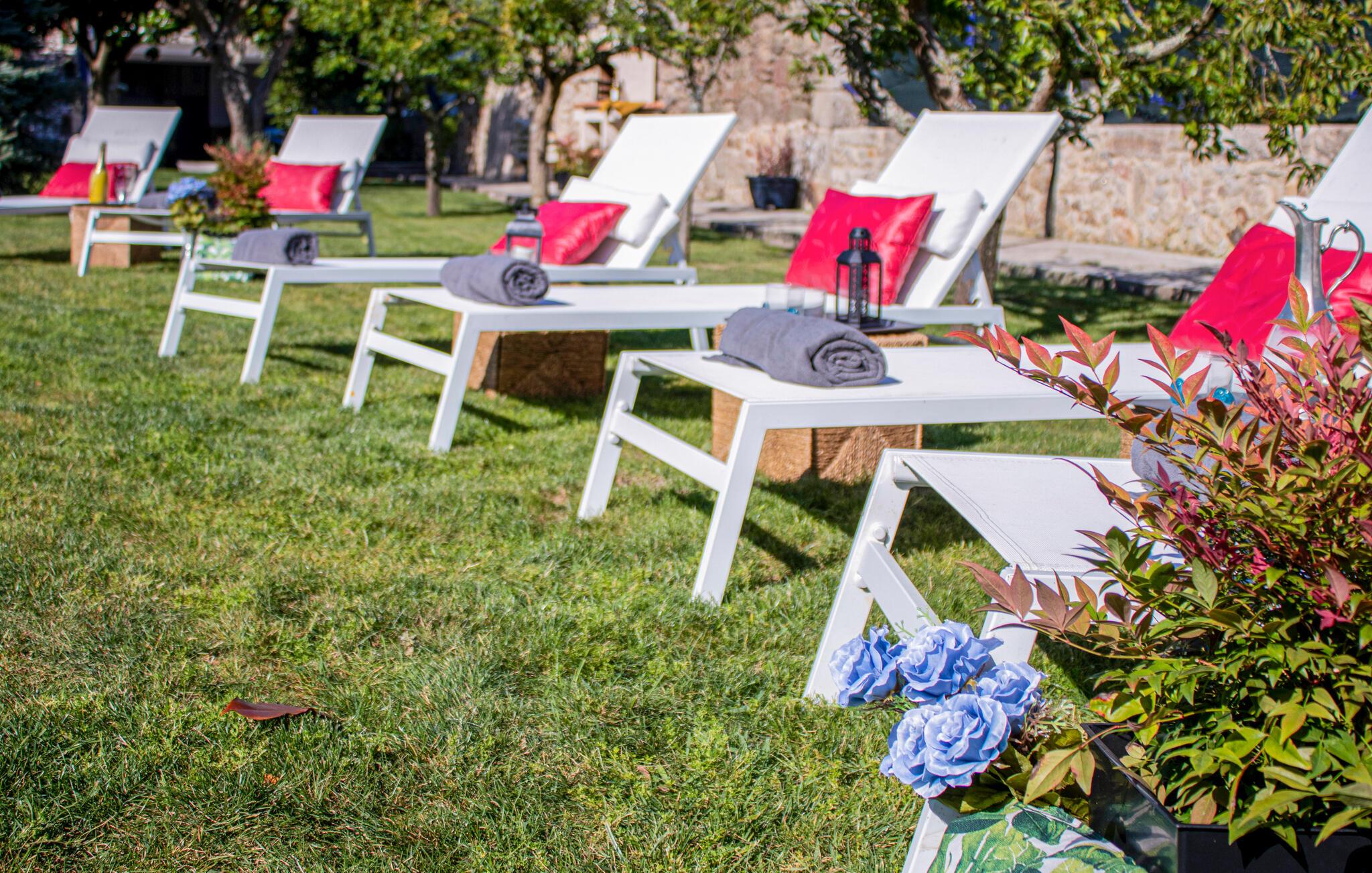 Udenfor er der en romantisk have med hyggelige skyggefulde pletter og en skøn pool. Gå barfodet til jeres yndlingssted, lad børnene organisere en picnic på den rummelige græsplæne og fejr tiden sammen med stemningsfulde måltider i det fri.