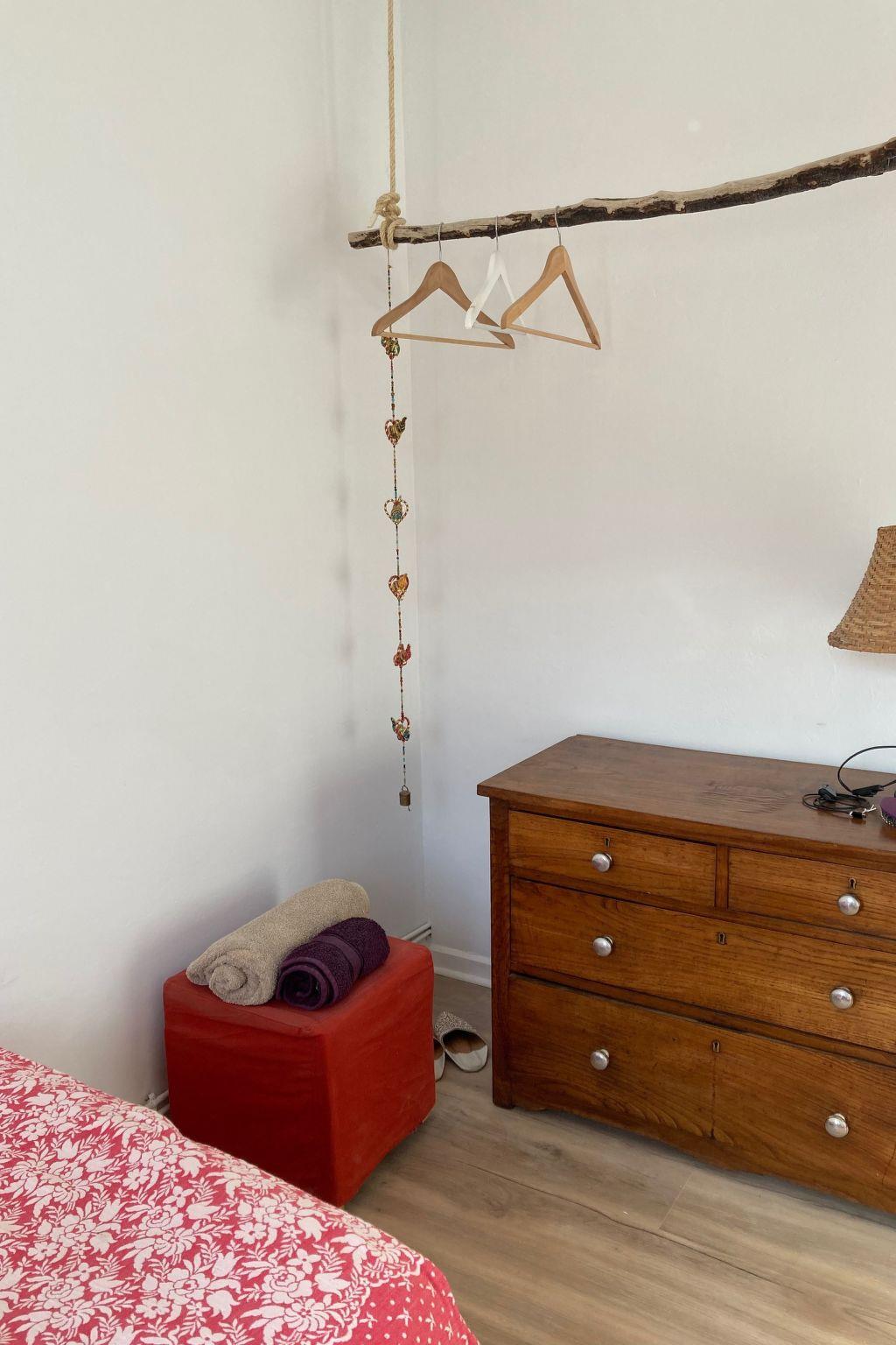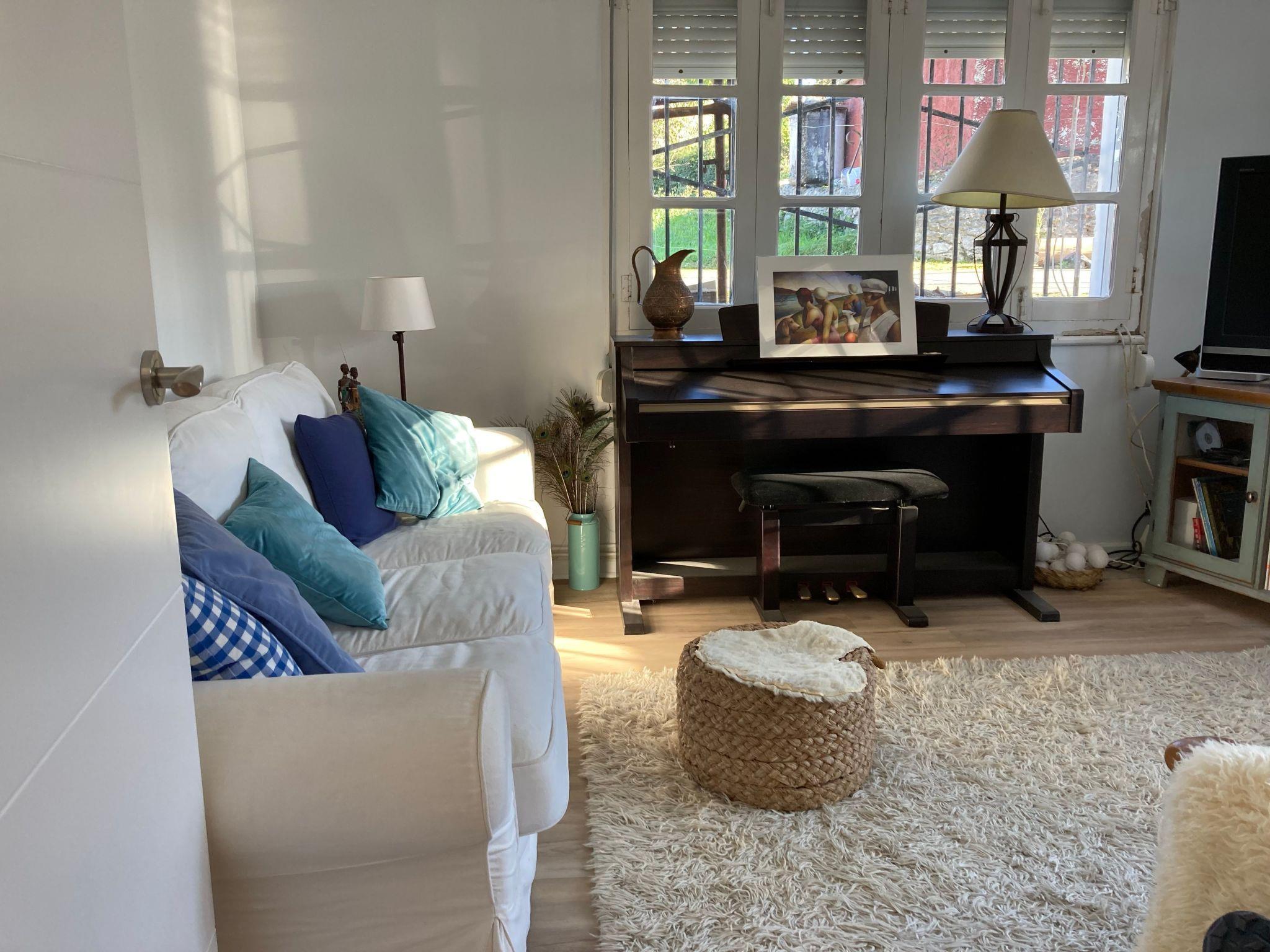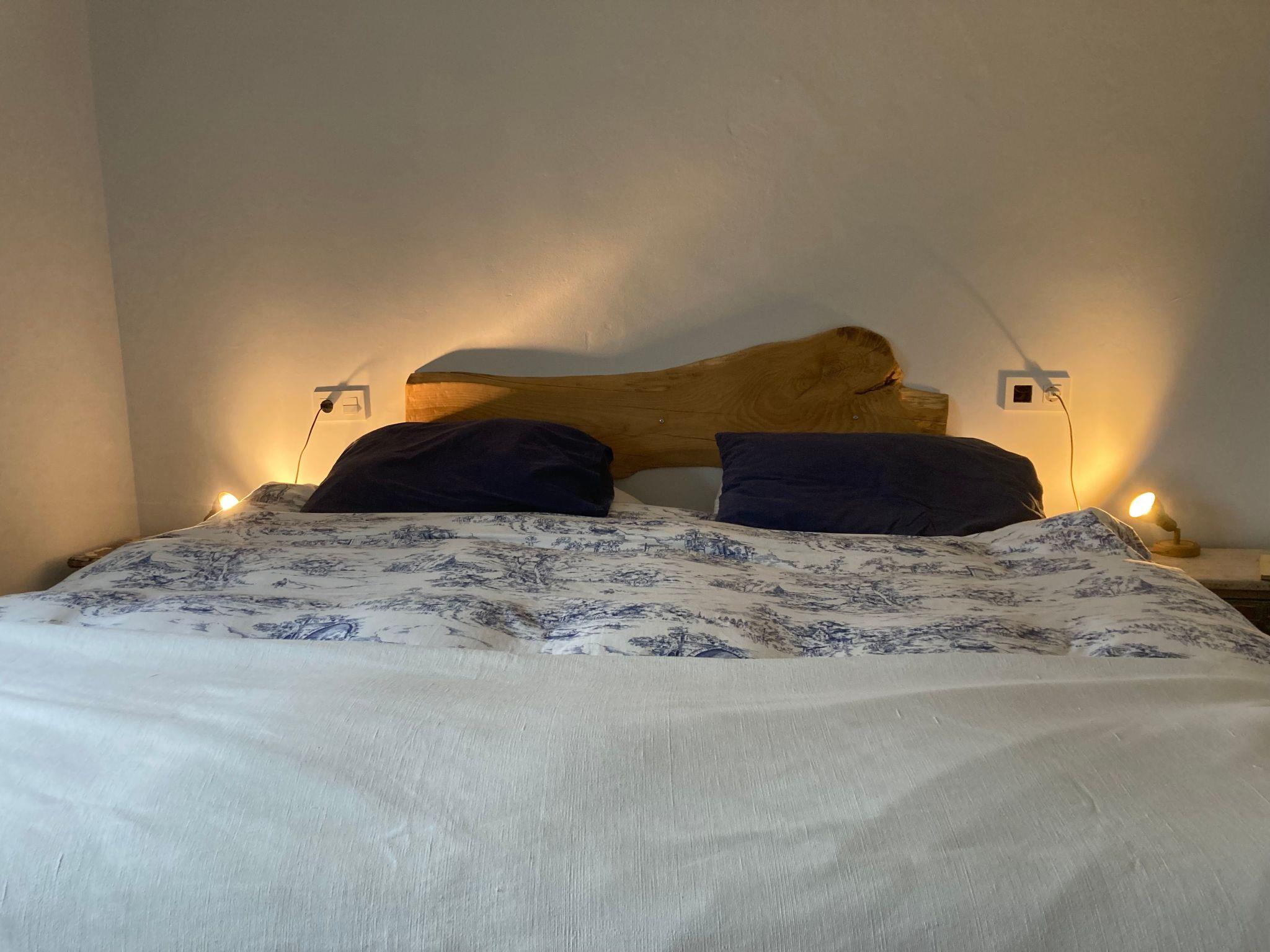The house is all on one floor for easy access to everyone, 2 double bedrooms and a bathroom with a walk-in shower, a sitting room and a fully equipped kitchen with a vitro cooker and electric oven, a Hergon wood burner (Aga type) that can be used for cooking,1 fridge Miele, 45 cm dishwasher, a breadmaker, toaster, cafetière, all mons and cons for a kitchen.There is an ample terrace facing south with outdoor furniture for 4/6. View of the forest to the west.One space for a car.1 double bedroom faces East, and one double bedroom faces west.Sitting room has two sofas, a keyboard ,TV, klappa wooden and boardgames. Small storage room. A door which leads upstairs, closed to visitors.