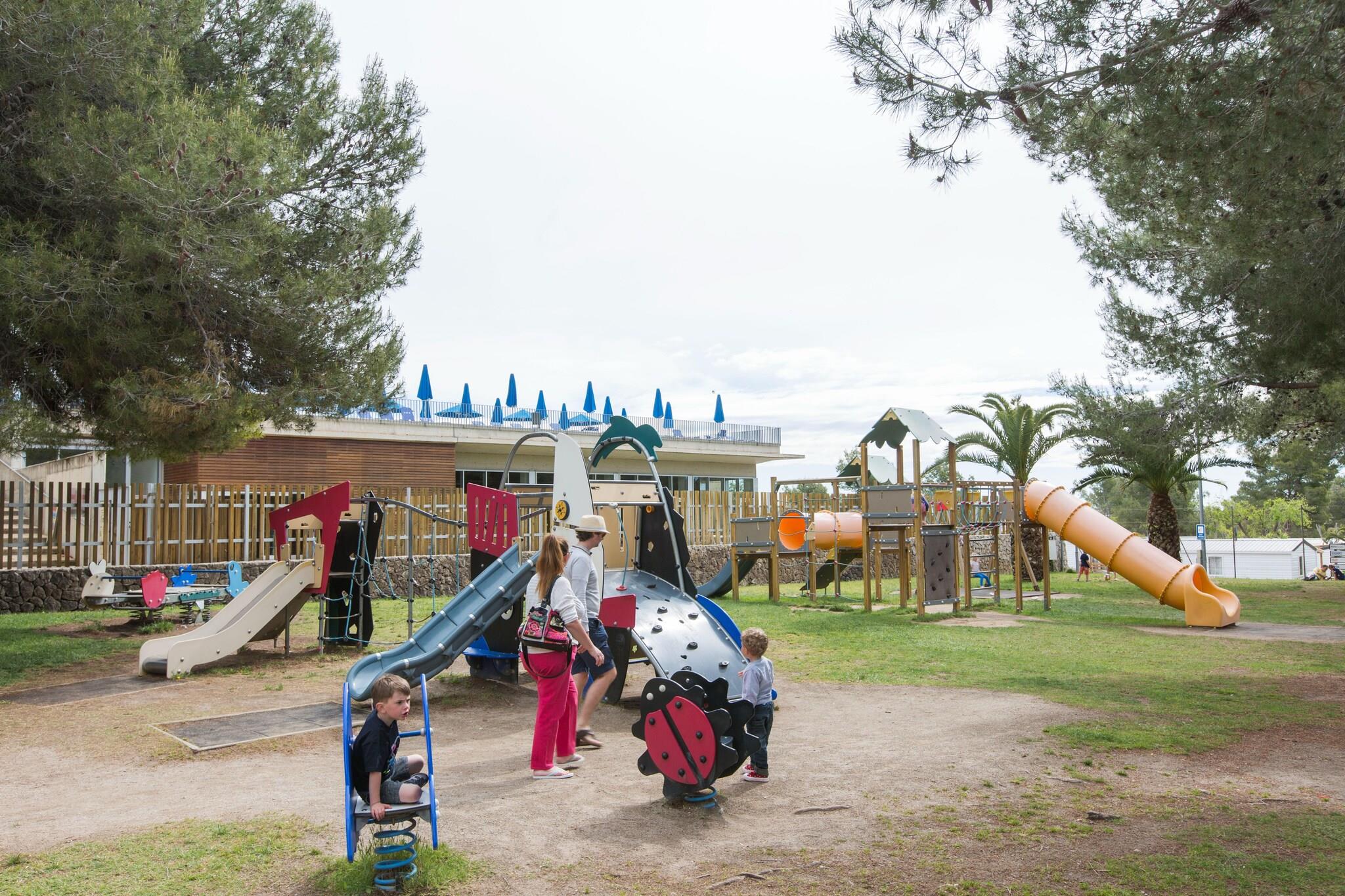 Vilanova Park ligger i udkanten af Vilanova i la Geltrú og tilbyder en dejlig ferie i en rummelig bungalow på 50 m², perfekt til familier eller grupper på op til 6 personer. Denne indbydende bolig har to komfortable soveværelser og en sovesofa i stuen, hvilket giver masser af plads til afslapning. Det fuldt udstyrede køkken giver dig mulighed for at tilberede dine yndlingsmåltider, mens den hyggelige opholdsstue fungerer som et perfekt samlingssted for familiehygge. Træd udenfor for at nyde den smukke udsigt over Middelhavet fra din private terrasse, ideel til udendørs spisning eller blot at nyde solen. Komplekset kan prale af to indbydende swimmingpools og en foryngende spa, der sikrer, at dit ophold er fyldt med både afslapning og fritid. Beliggende kun en kort køretur fra det charmerende centrum af Vilanova i la Geltrú, kan du udforske fantastiske strande, en pulserende promenade og dejlige restauranter. Gå ikke glip af chancen for at besøge den historiske fiskerihavn og nyde lokal fisk og skaldyr. For en dag med eventyr tilbyder den nærliggende forlystelsespark PortAventura World spændende forlystelser og attraktioner for hele familien. Med sin perfekte blanding af komfort og beliggenhed vil dit ophold på Vilanova Park helt sikkert blive en uforglemmelig familieoplevelse!