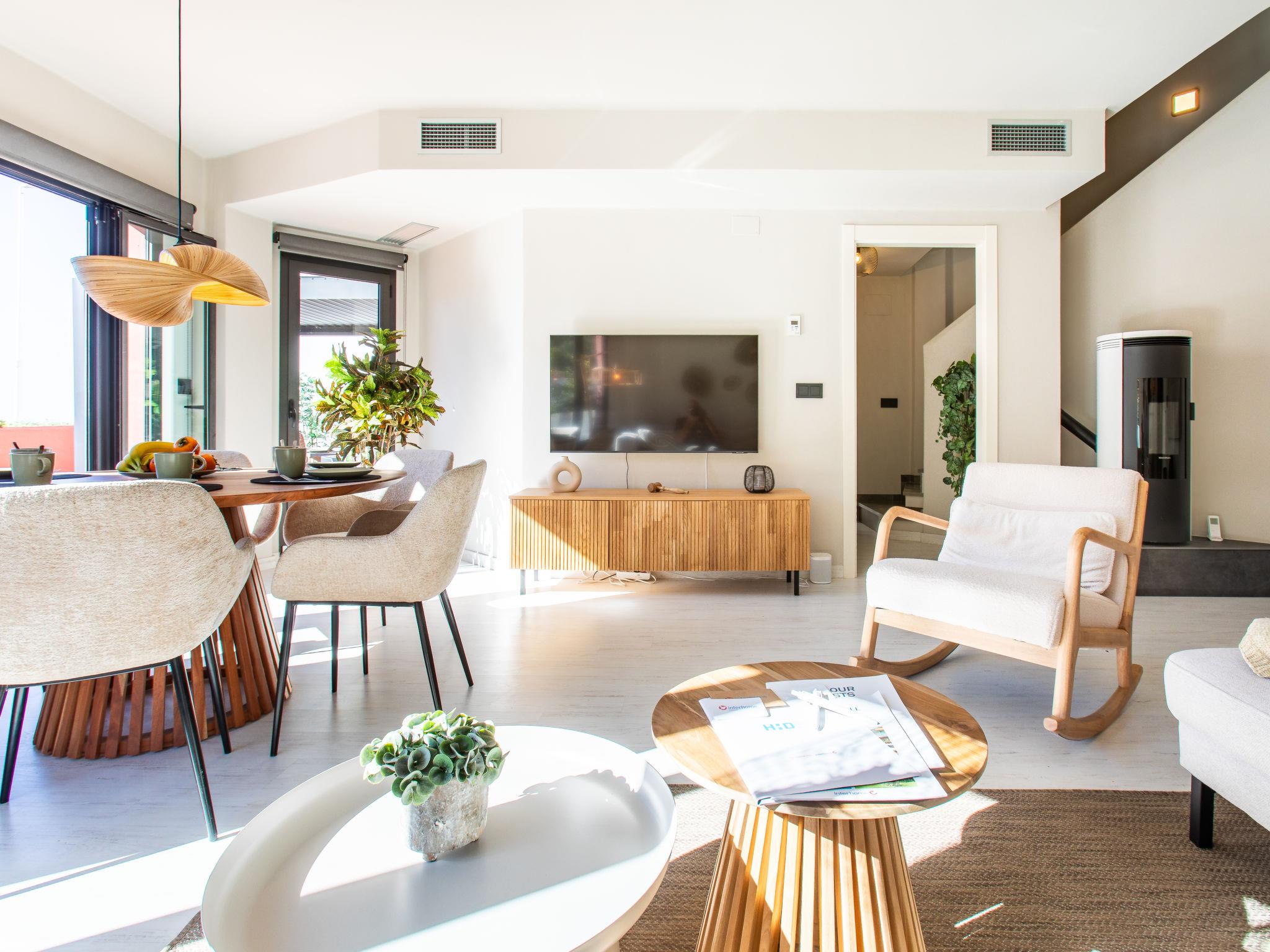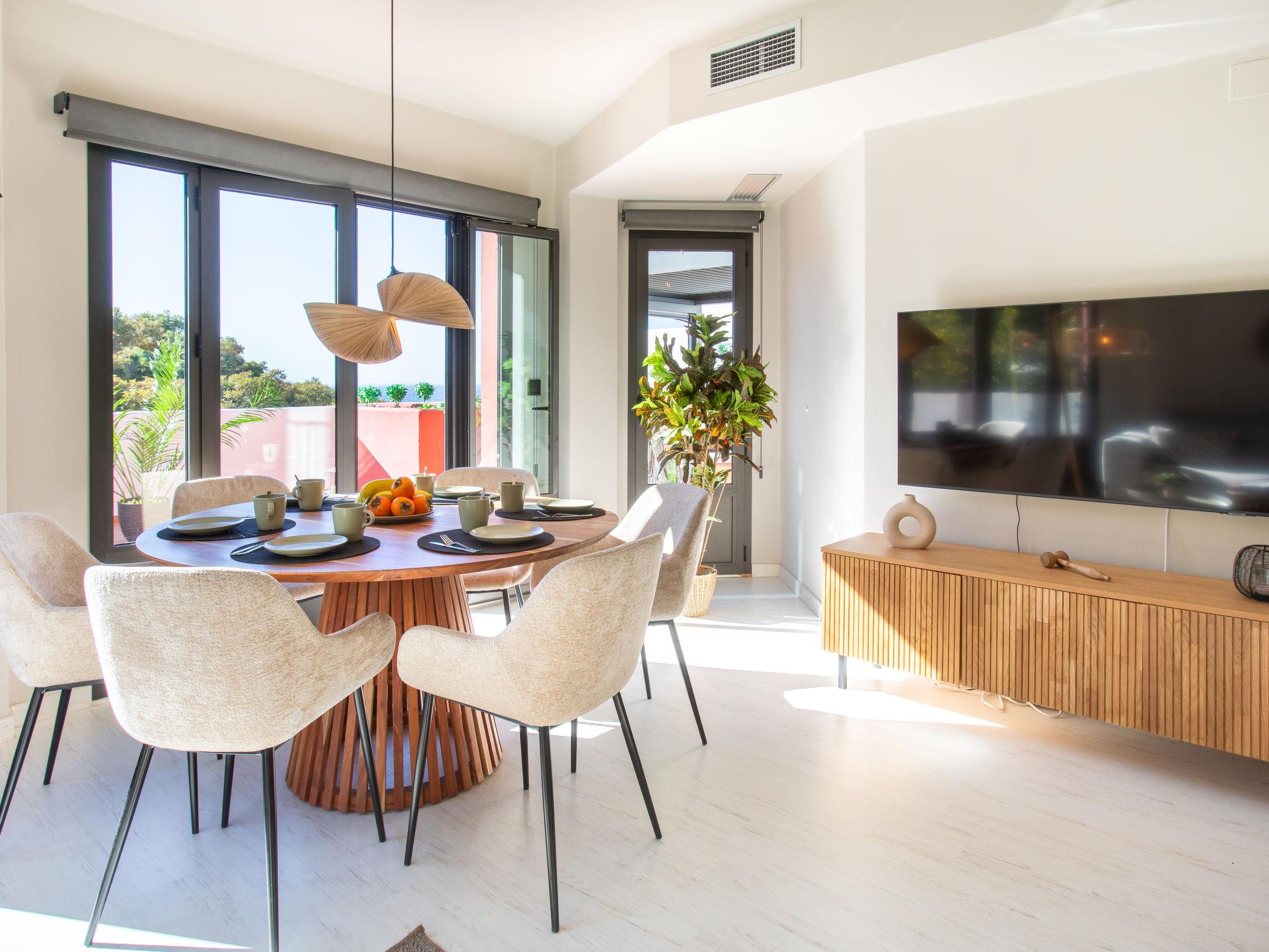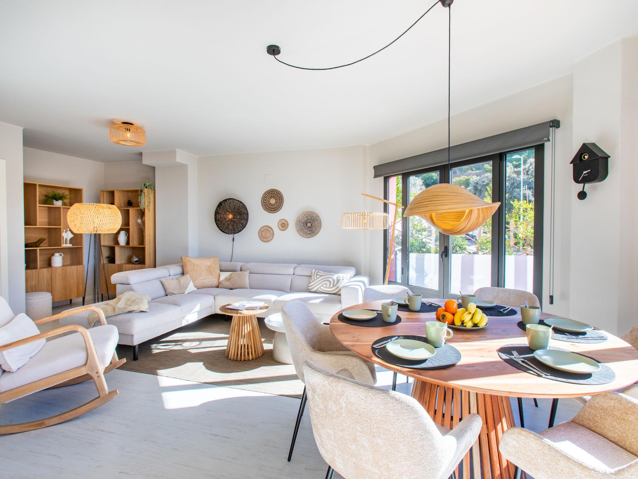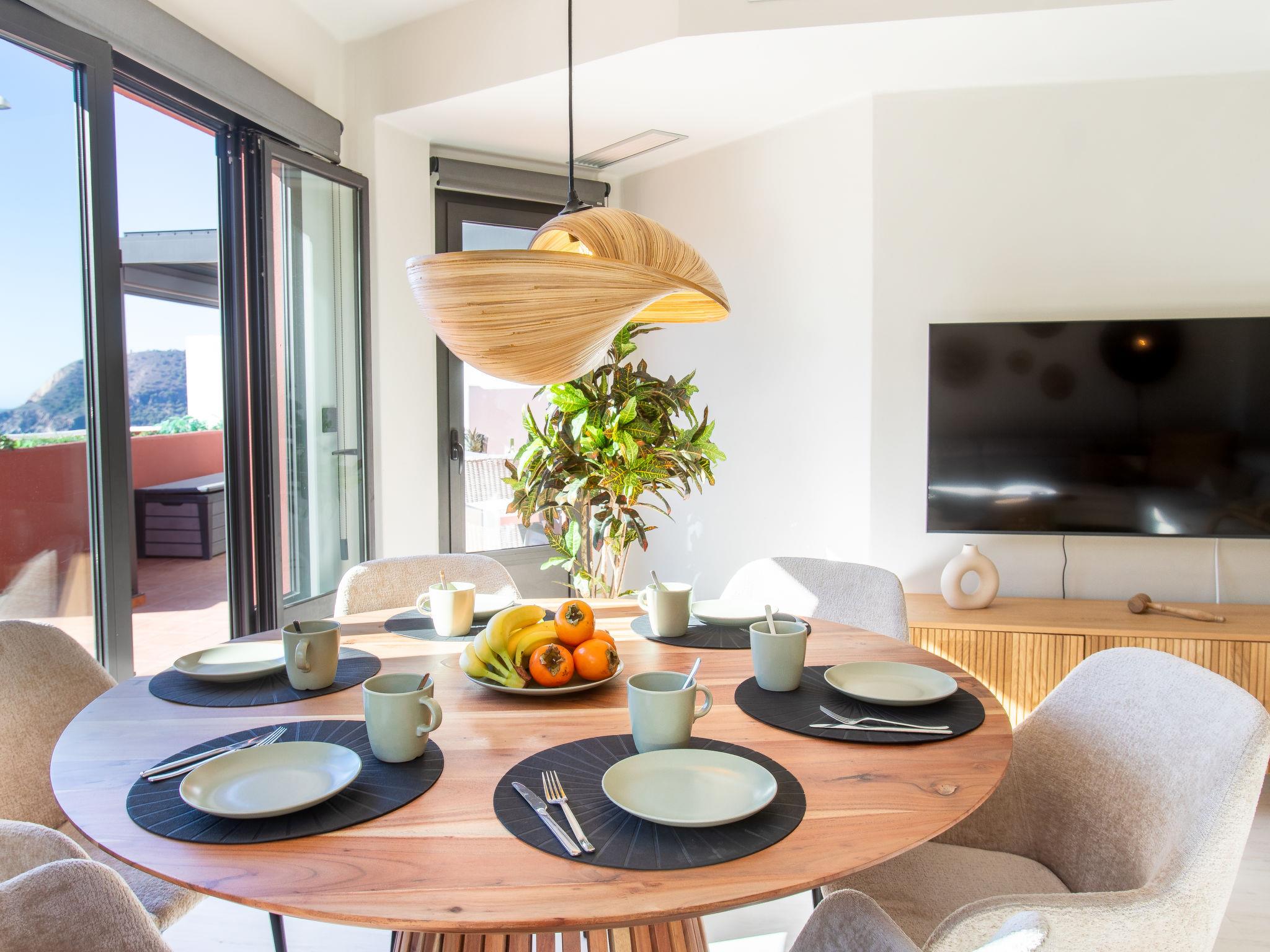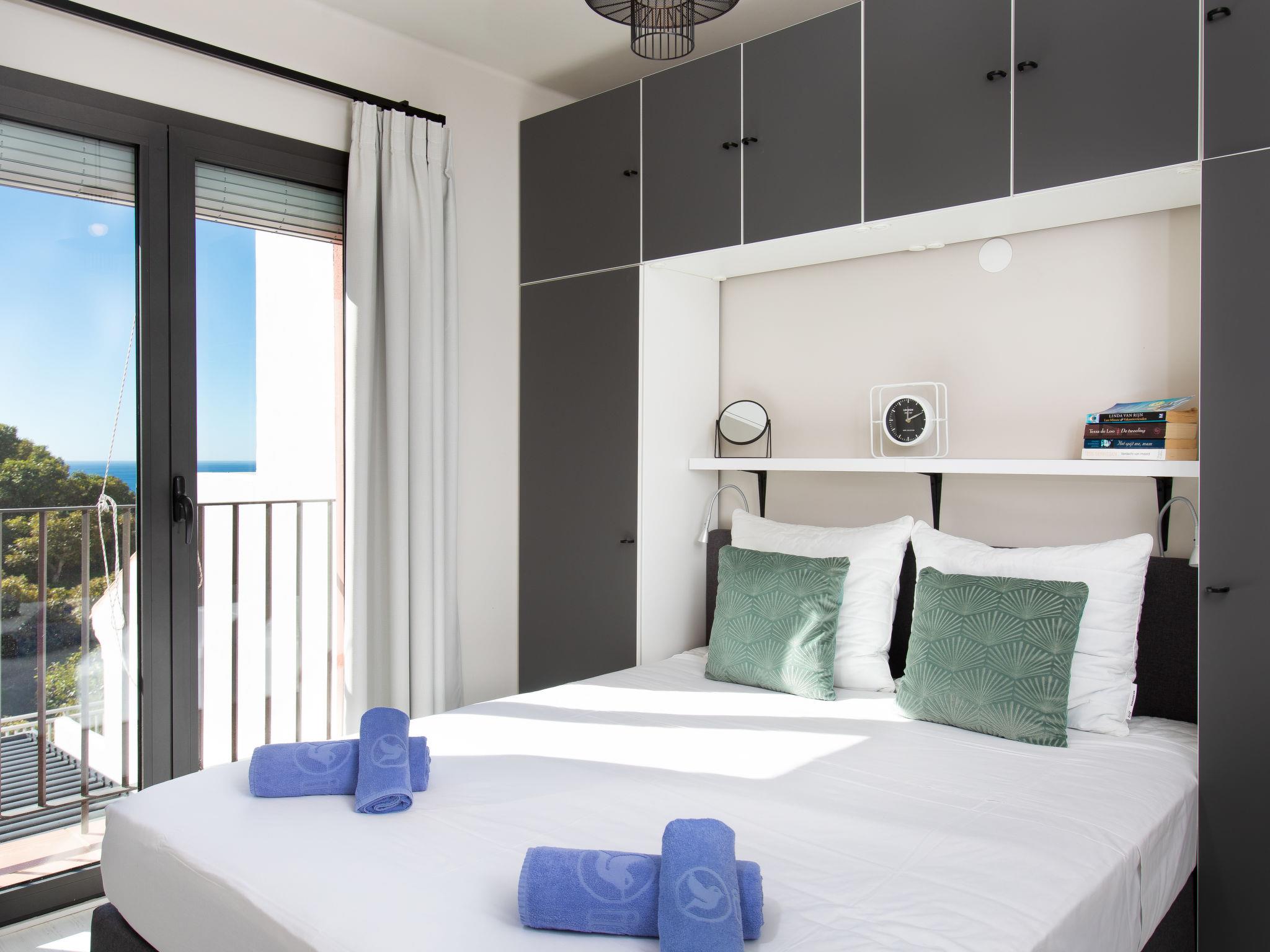 "Bahia", 5-room semi-detached house 227 m2, south facing position. Spacious and bright, comfortable and beautiful furnishings: living/dining room with digital TV, air conditioning and forced-air heating. Exit to the terrace, pergola. Kitchen (oven, dishwasher, 4 ceramic glass hob hotplates, toaster, kettle, microwave, freezer, electric coffee machine). Exit to the terrace. Sep. WC. Upper floor: 1 room with 1 x 2 bunk beds (90 cm, length 190 cm), air conditioning and forced-air heating. Exit to the balcony. 1 room with 1 double bed (180 cm, length 200 cm), bath/WC, air conditioning and forced-air heating. 1 room with 1 double bed (160 cm, length 200 cm), shower/WC, air conditioning and forced-air heating. Exit to the balcony. Shower/WC. 2nd upper floor: 1 large room with sloping ceilings with 1 double bed (200 cm, length 200 cm), digital TV, air conditioning and forced-air heating. Exit to the terrace. Porch. Terrace furniture, barbecue. Panoramic view of the sea and the countryside. Facilities: washing machine, iron, children's high chair, baby cot, hair dryer. Internet (WiFi, free). Property has four bedrooms, one really spacious with a seating area and its own private terrace. VUT/GR/06866 // Reg. Nr.: ESFCTU0000180160006597580000000000000000VUT/GR/068668