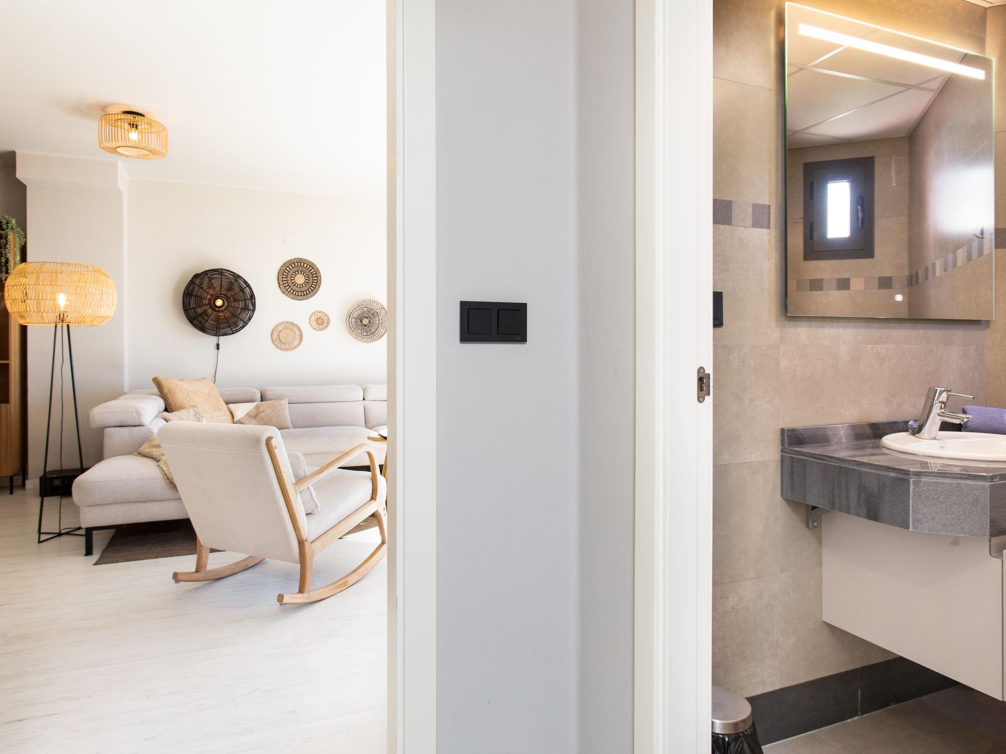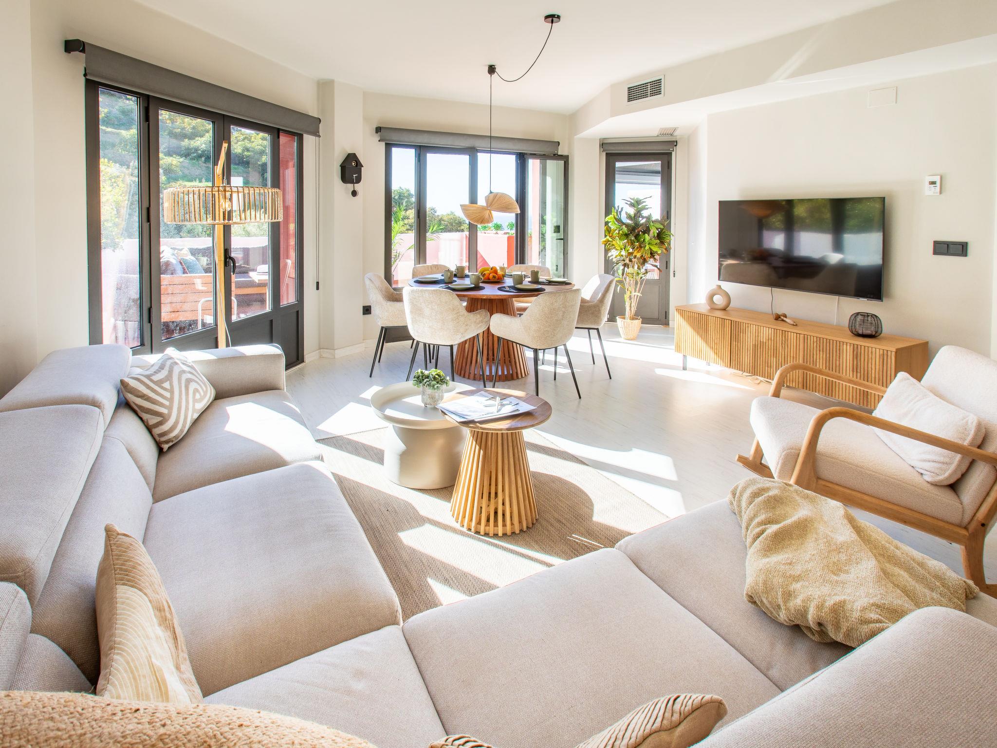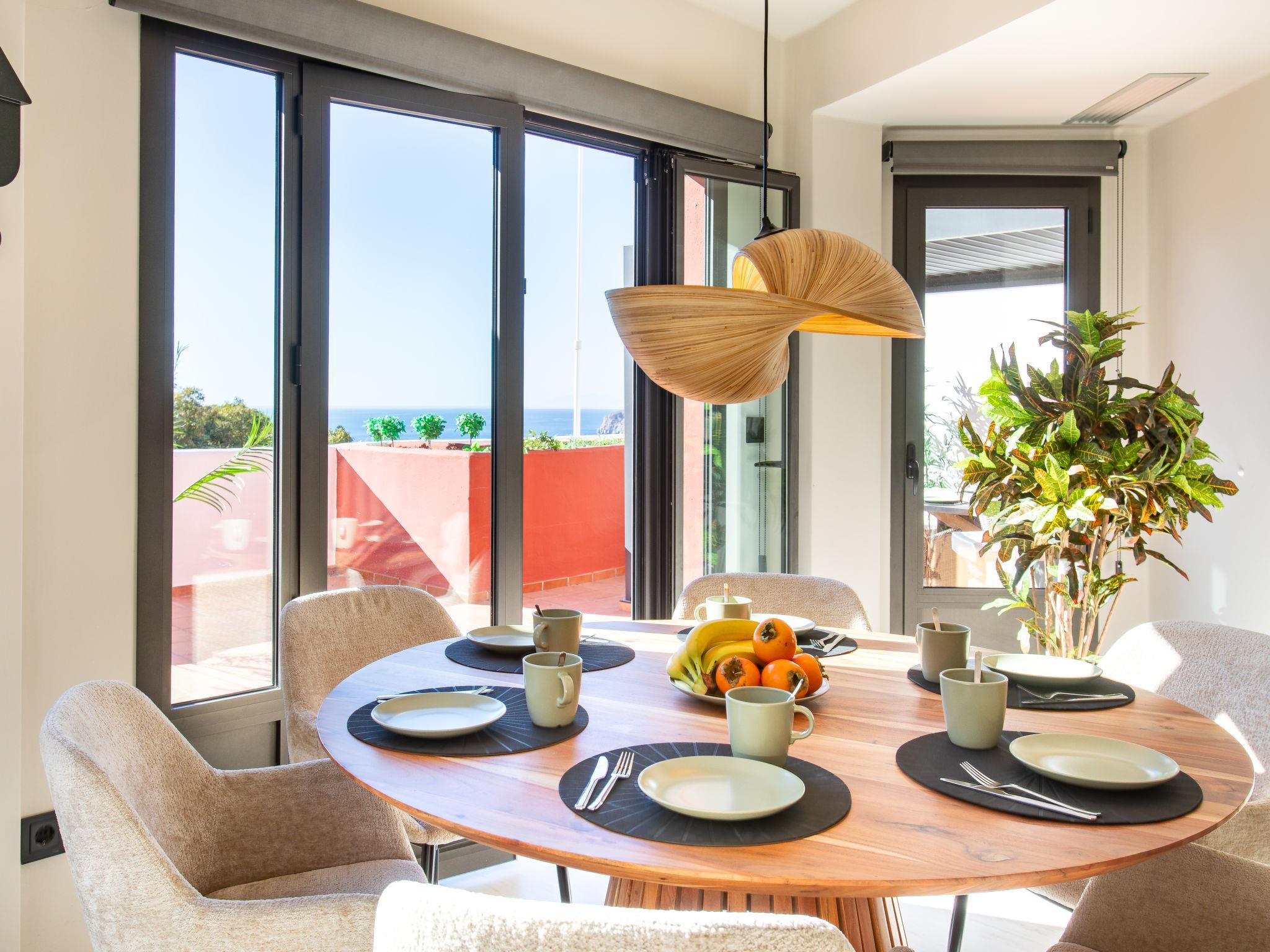 La Herradura: Modern, beautiful, comfortable semi-detached house "Bahia", 3 storeys. In a quiet, sunny position residential area (villas), 700 m from the sea, 700 m from the beach, south facing position. For shared use: lawn for sunbathing, swimming pool angular (16 x 7 m, depth 100 - 175 cm, seasonal availability: 01.Jan. - 31.Dec.). WC in the pool area, outdoor shower, parking space n 3. Shop 700 m, supermarket, restaurant, bar, bakery, café, bus stop 2 km, railway station 60 km, diving center 2 km. Sports harbour 2 km, marina 2 km, golf course (18 hole) 13 km, surf school 55 km, sailing school 2 km. Nearby attractions: Almuñecar, Salobreña, Las Alpujarras, Valle de Lecrin, Nerja, Frigiliana. Well-known ski regions can easily be reached: Sierra Nevada. Hiking paths: Sierra Tejeda, Sierra Almijara. Please note: no lift. The owner does not accept any youth groups. Loading and unloading of baggage is possible at the holiday house. Property ref. ES5400.601.1 is situated on the same property. This beautiful house gets the sun all day and has beautiful views to the bay of la Herradura from every bedroom. Community pool is 30 meters away from property.