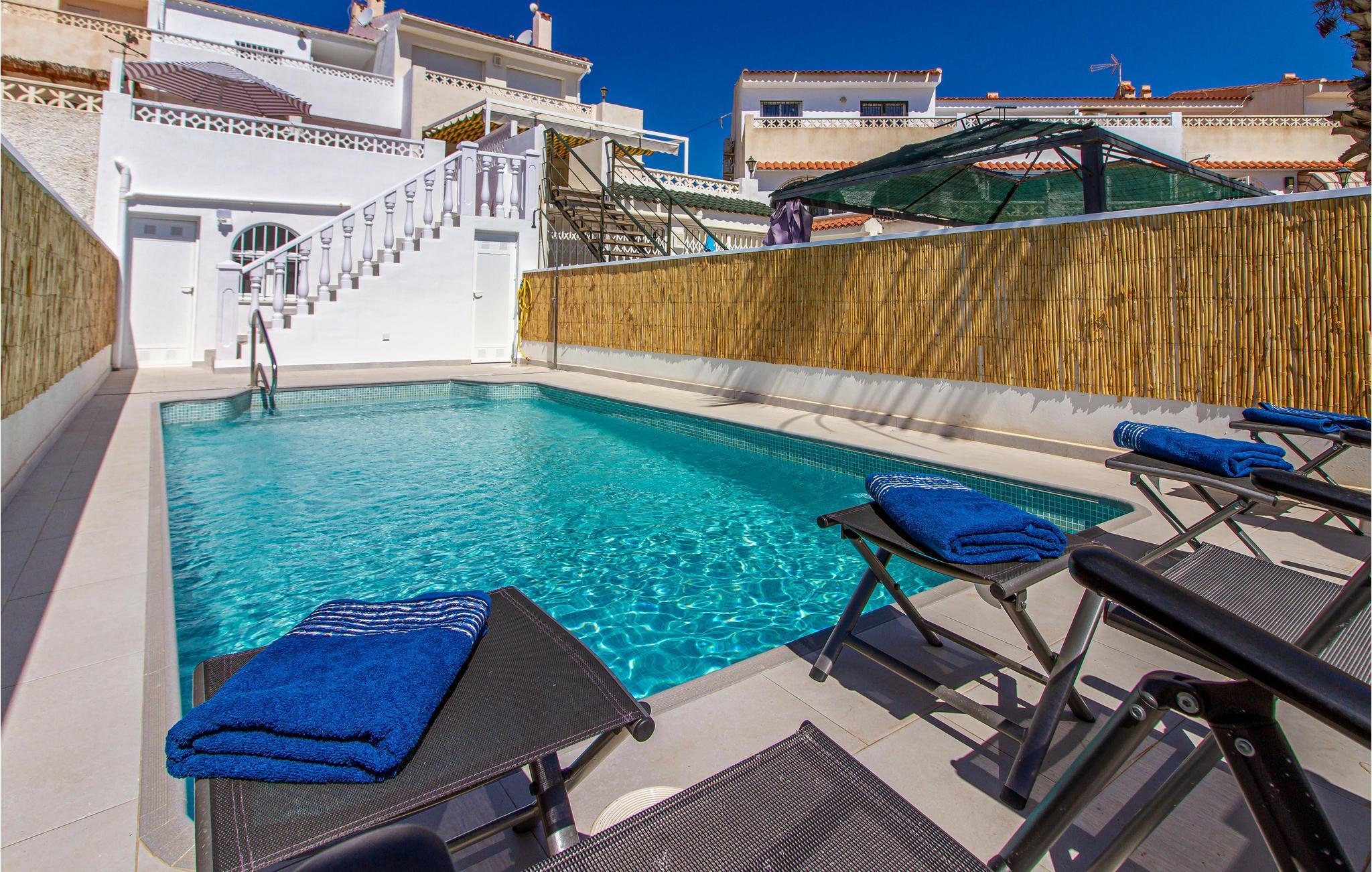 Denne storslåede ejendom med privat pool vil helt sikkert imponere jer. De klassiske, moderne møbler med farvenuancer udstråler en dejlig feel-good atmosfære. Indretningen af værelserne og antallet af badeværelser gør den ideel til at holde ferie sammen med familie eller nære venner. Udearealet er det særlige højdepunkt. Her har I mulighed for sjov og afslapning, enten i poolen eller på den store tagterrasse med grillplads. Der er frit valg!