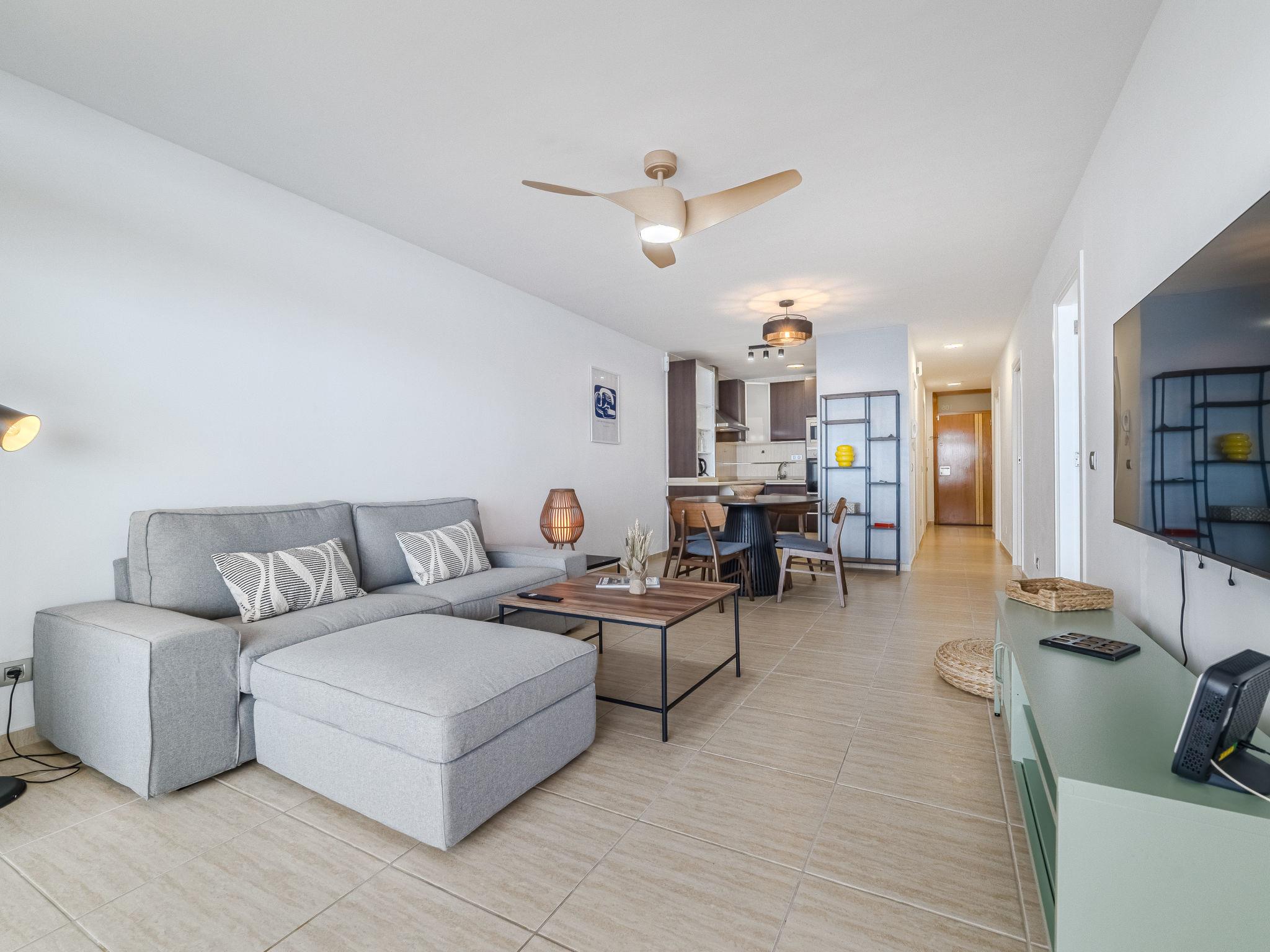 "Punta del Sol", 3-room apartment 110 m2 on 1st floor. Object suitable for 4 adults. Spacious and bright, practical and comfortable furnishings: living/dining room with digital TV and fan. Exit to the balcony. 1 room with 1 french bed (1 x 150 cm, length 190 cm), digital TV and fan. 1 room with 1 double bed (1 x 150 cm, length 190 cm), fan. Kitchen (oven, 4 ceramic glass hob hotplates, toaster, kettle, microwave, electric coffee machine). 2 showers/WC. No heating option. Large balcony. Terrace furniture. Very beautiful view of the sea. Facilities: washing machine, iron, hair dryer. Internet (WiFi, free). Parking space n 13 (roofed). Please note: suitable for families. Non-smokers only. Fire extinguisher. VV-38-4-0113161 // Reg. Nr.: ESFCTU0000380200003175980000000000000VV-38-4-01131615