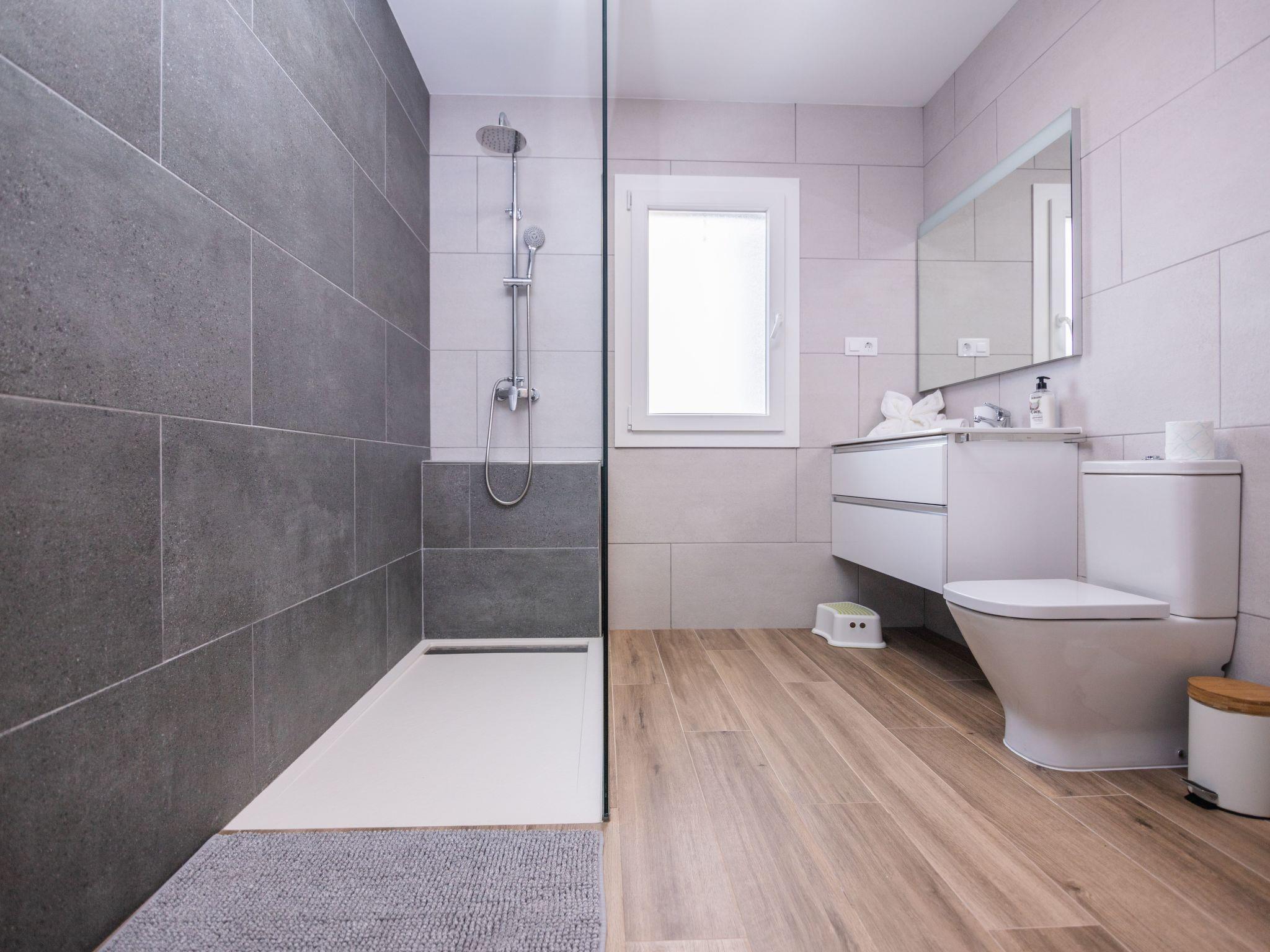 Upstairs you will find the living/dining are with sofas, a satellite television, two large dining tables and six chairs. Furthermore, there is a kitchen with a separate utility room, a large bathroom with a bathtub and a bedroom with a double bed (150 x 200 cm) and an ensuite bathroom on this floor. Downstairs is a bathroom with a toilet, as well as two bedrooms - furnished with a double bed (150 x 200 cm) and two single beds (90 x200 cm).