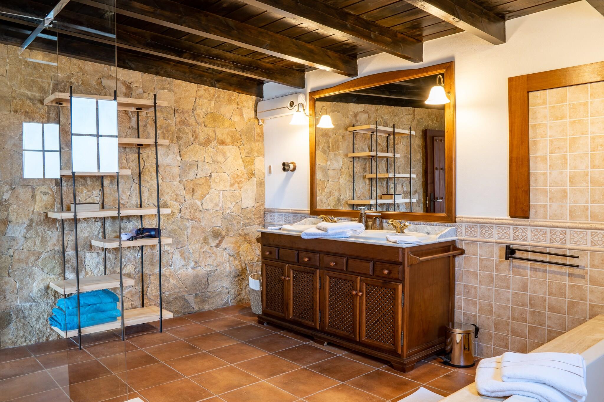 Stueetage: (gang, Stue(Fjernsyn, sofahjørne), spisestue(spisebord), Køkken(elkedel, brødrister, kaffemaskine, espressomaskine, combi-mikroovn, opvaskemaskine , køle-fryseskab, Saftpresser, Blender), soveværelse(dobbeltseng(180 x 200 cm)), soveværelse(dobbeltseng(160 x 200 cm)), soveværelse(enkeltseng(90 x 200 cm), enkeltseng(90 x 200 cm)), badeværelse(bruser, håndvask, toilet), bryggers(ovn), pulterkammer(vaskemaskine)) På 1. etage: (soveværelse(dobbeltseng(180 x 200 cm)), badeværelse(badekar, bruser, håndvask, toilet)) terrasse, havemøbler, solstole, grill, parkering, Parasol, swimmingpool(privat, udendørs, opvarmes), petanquebane