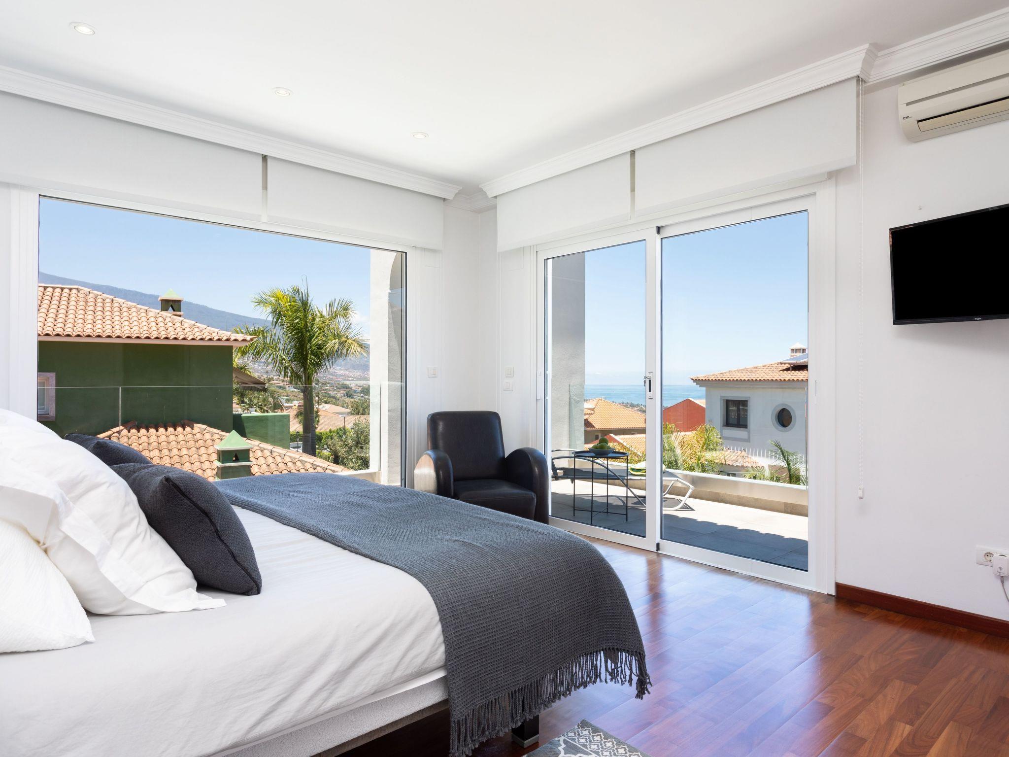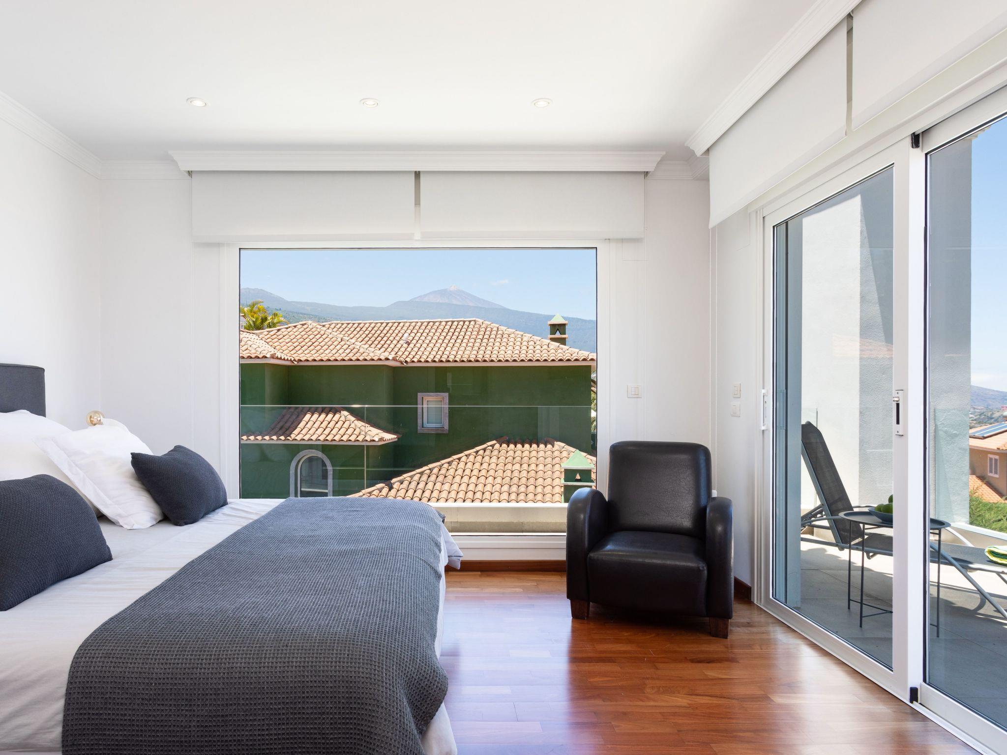 Moving upstairs, there are three bedrooms, all equipped with air conditioning, and two bathrooms, one of which is en-suite. The master bedroom boasts a balcony with a spectacular view of the Teide and the sea.