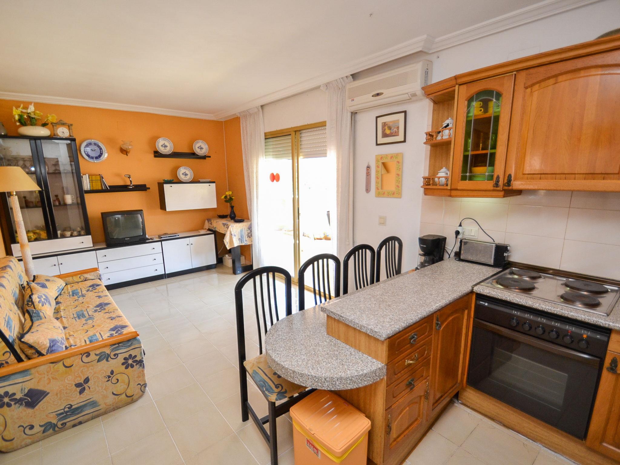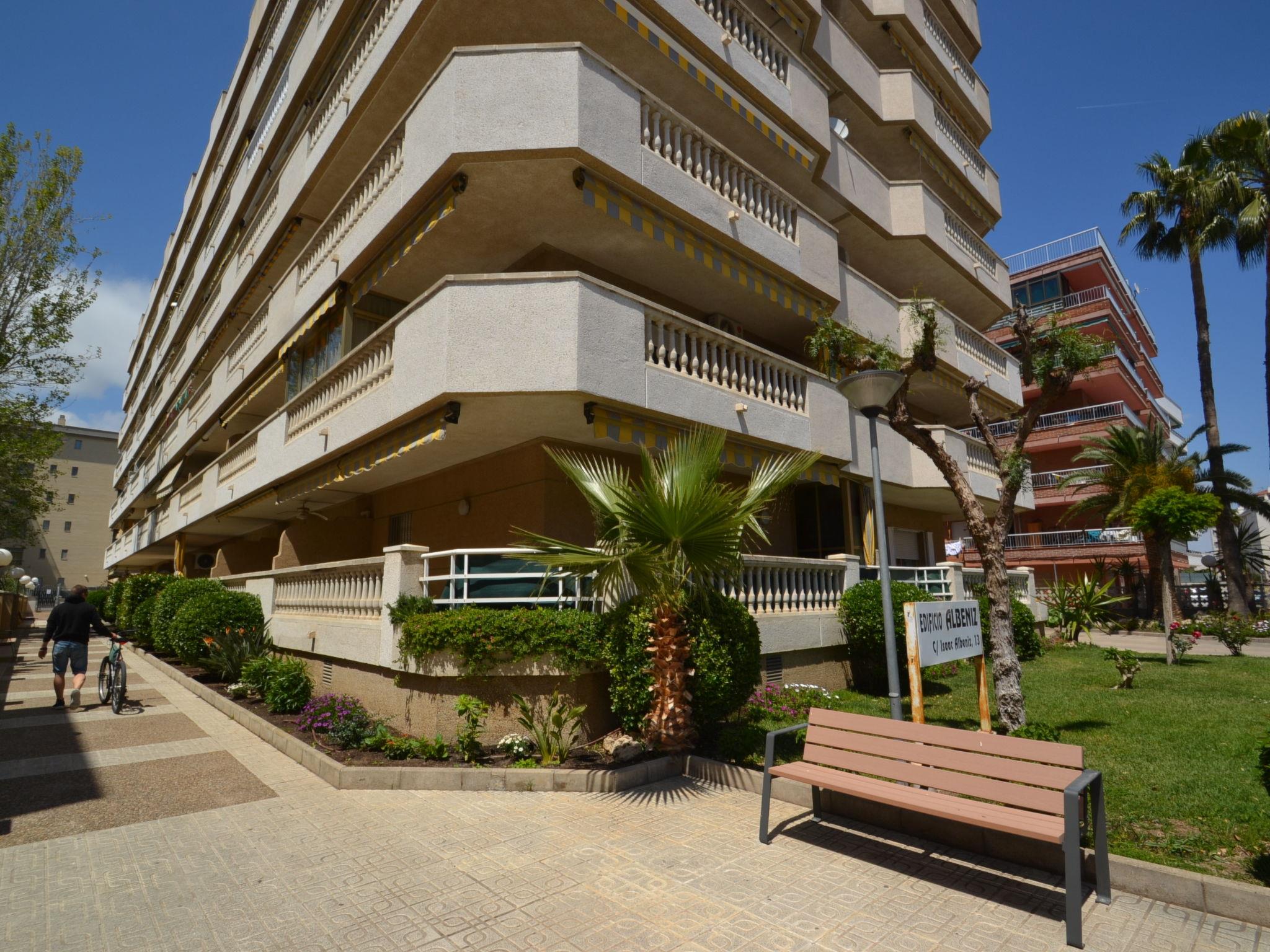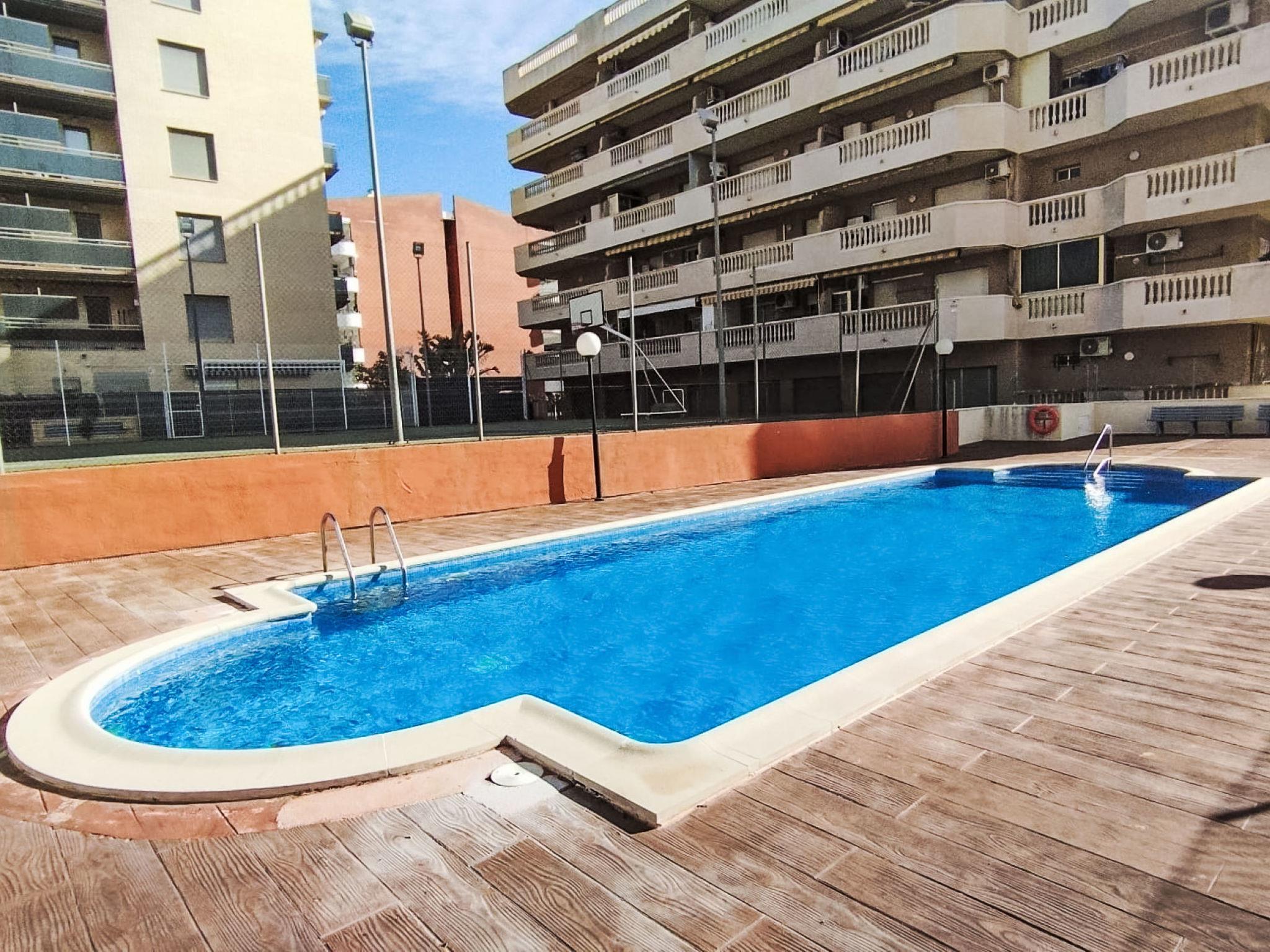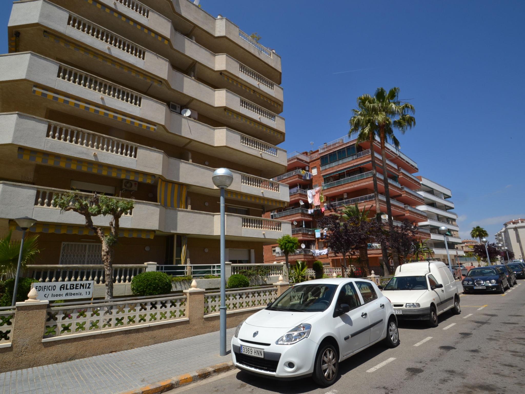 La Pineda 2 km from Salou: Cosy apartment block "Albeniz". In a sunny position, excellent location: right in the centre but still quiet, 300 m from the sea, from the beach. For shared use: garden, swimming pool (4 x 8 m, depth 30 - 200 cm, seasonal availability: 01.Jun. - 30.Sep.). Outdoor shower. In the house: lift. Public parking on the road. Shop 100 m, supermarket 200 m, restaurant, bar 100 m, bus stop 300 m. Golf course (18 hole) 100 m. Nearby attractions: parque temático Portaventura 2 km, parque acuático Aquopolis 500 m, Spa Aquum 500 m. The owner does not accept any youth groups.