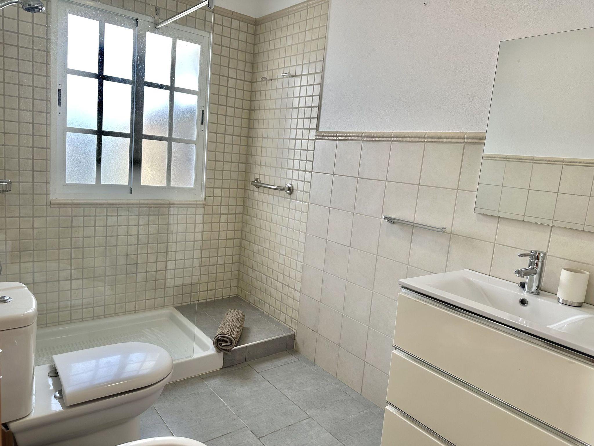 • Bad mit moderner Dusche, WC, Bidet, Doppelwaschbecken