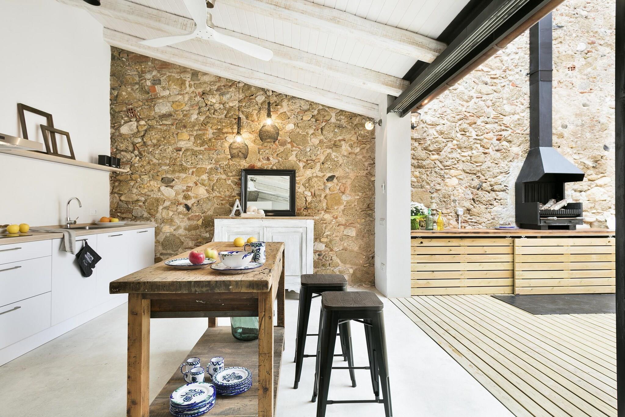 Spektakulært traditionelt catalansk hus fuldstændig restaureret med alle detaljer og faciliteter, udendørs swimmingpool for at nyde ferie i reneste Empordà stil. Fordelt på tre etager med store og lyse rum. I stueetagen finder vi værelserne med komplet udstyrede badeværelse, et værelse med vaskemaskine og tørretumbler; på første sal en luksuriøs og komfortabel stue med en stor pejs, fuldt udstyret køkken, spisestue og et badeværelse. Den øverste etage er ideel til at nyde udsigten, har en stor terrasse-Chill Out solarium med sofaer og fodboldbord. Lige overfor huset er overalt gaden poolen helt privat med alt hvad du behøver for at nyde et dejligt badeværelse og nyde en grill, består af åbent køkken og bord til 11 personer og et toilet. Oplev luksus i det rolige og venlige Empordà landsbyen Marenya, en af landsbyerne La Tallada de Empordà, meget tæt på de bedste strande på Costa Brava og en kort afstand fra de vigtigste destinationer i området vil give dig mulighed for at nyde en familieferie med alle kulturelle, turister, gastronomiske og sportslige muligheder.