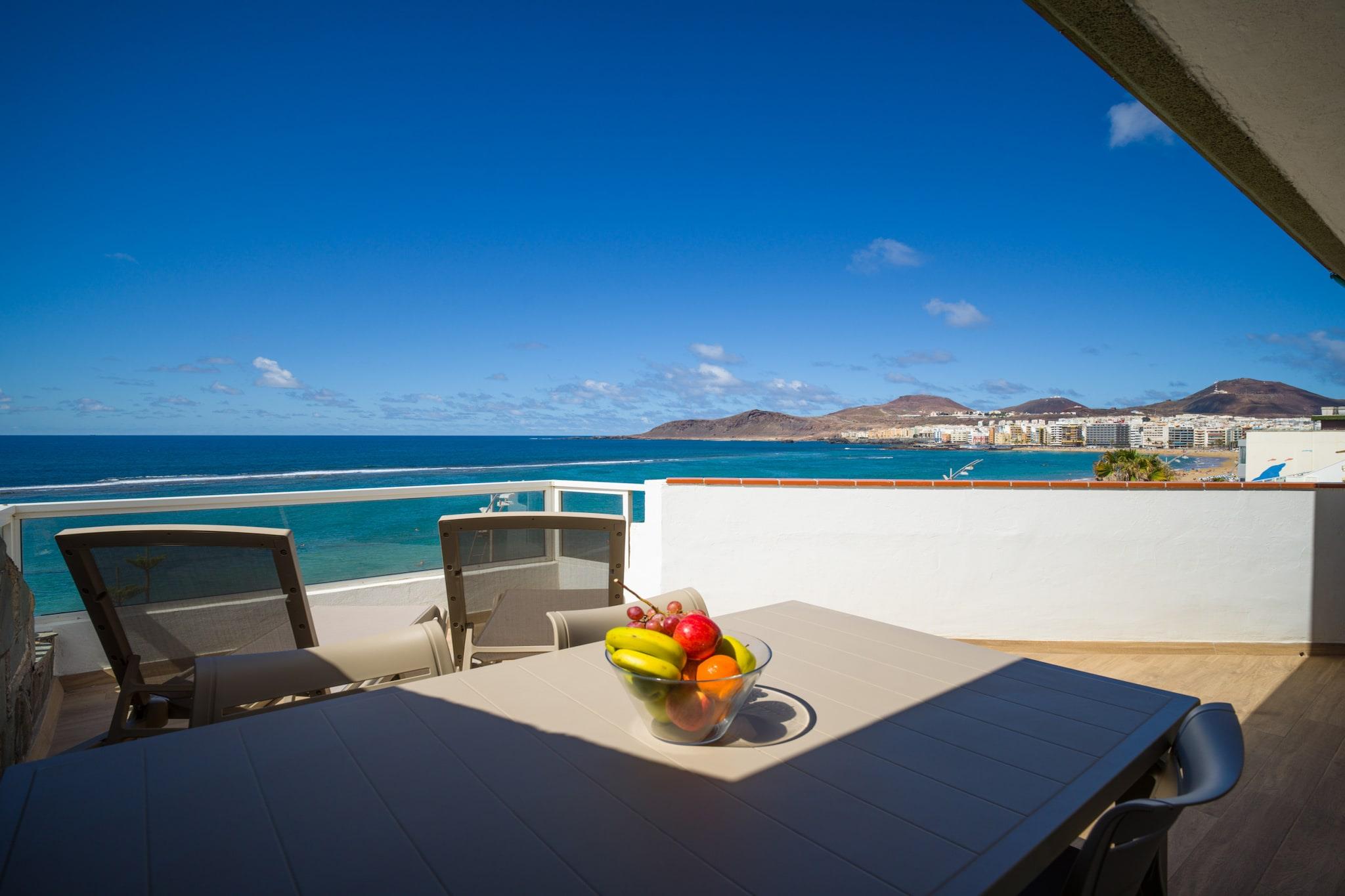 Oplev det bedste fra Las Canteras med dette rummelige og fuldstændig renoverede feriehus, ideelt beliggende lige ved stranden. Denne bolig på fjerde sal blev fuldstændig renoveret i maj 2023 og tilbyder et lyst, moderne rum med en fantastisk havudsigt og moderne bekvemmeligheder - perfekt til både fritid og fjernarbejde._x000D_ _x000D_ Træd ind på den store private terrasse, fuldt møbleret med liggestole og en udendørs spiseplads, hvor du kan slappe af med panoramaudsigt over stranden, Atlanterhavet og endda Tenerifes majestætiske Teide på klare dage. Hele rummet vender udad og byder velkommen til naturligt lys og havbrise hele dagen._x000D_ _x000D_ Udstyret med højhastigheds-WiFi, nøglefri adgang (via kode, kort eller mobilapp) og bæredygtige designelementer – inklusive LED-belysning, apparater med lavt forbrug og genbrugsspande – kombinerer dette hjem bekvemmelighed, komfort og en miljøbevidst livsstil._x000D_ _x000D_ Dens førsteklasses beliggenhed giver dig mulighed for at nyde solen, havet og det pulserende liv i Las Palmas lige uden for din dør. Dette feriested er ideelt for digitale nomader, par eller solorejsende og tilbyder den perfekte base for at opdage Gran Canarias charme og naturlige skønhed._x000D_