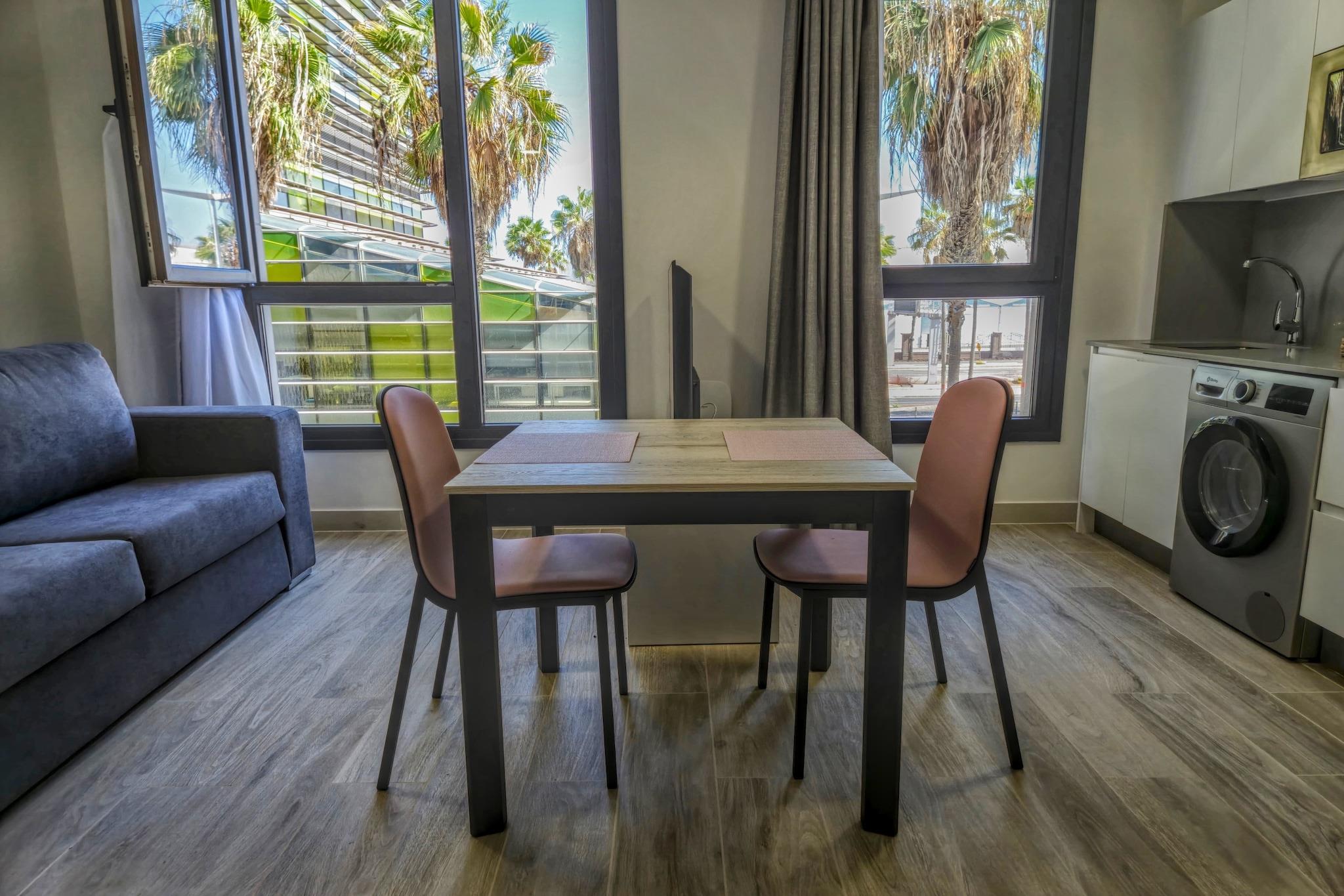 Dette smagfuldt indrettede hus på 50 m² ved stranden ligger kun 10 meter fra Playa de Las Canteras og tilbyder et lyst og afslappende kystferiested for to. Beliggende i et roligt område i Las Palmas de Gran Canaria, er det omgivet af bedste spisesteder som Origen Steakhouse og Casa Carmelo samt butikker, parker og naturattraktioner. Rummet har et udvendigt layout med et moderne køkken i åbent plan, fuldt udstyret med en induktionskogeplade, mikroovn, køleskab, kaffemaskine og alle nødvendige redskaber. Du vil også finde en vaskemaskine, strygejern, hårtørrer, Wi-Fi og et tv for din komfort og bekvemmelighed - alt hvad du behøver for et ubekymret ophold ved havet. Med El Confital, Santa Catalina Busstation og Las Palmeras Golf i nærheden er denne beliggenhed perfekt til både at udforske og slappe af. Uanset om du nyder gåture i solnedgangen på promenaden, afprøver lokale retter eller opdager Gran Canarias bjerglandsbyer og naturreservater, er dette kystskjul en vidunderlig base.