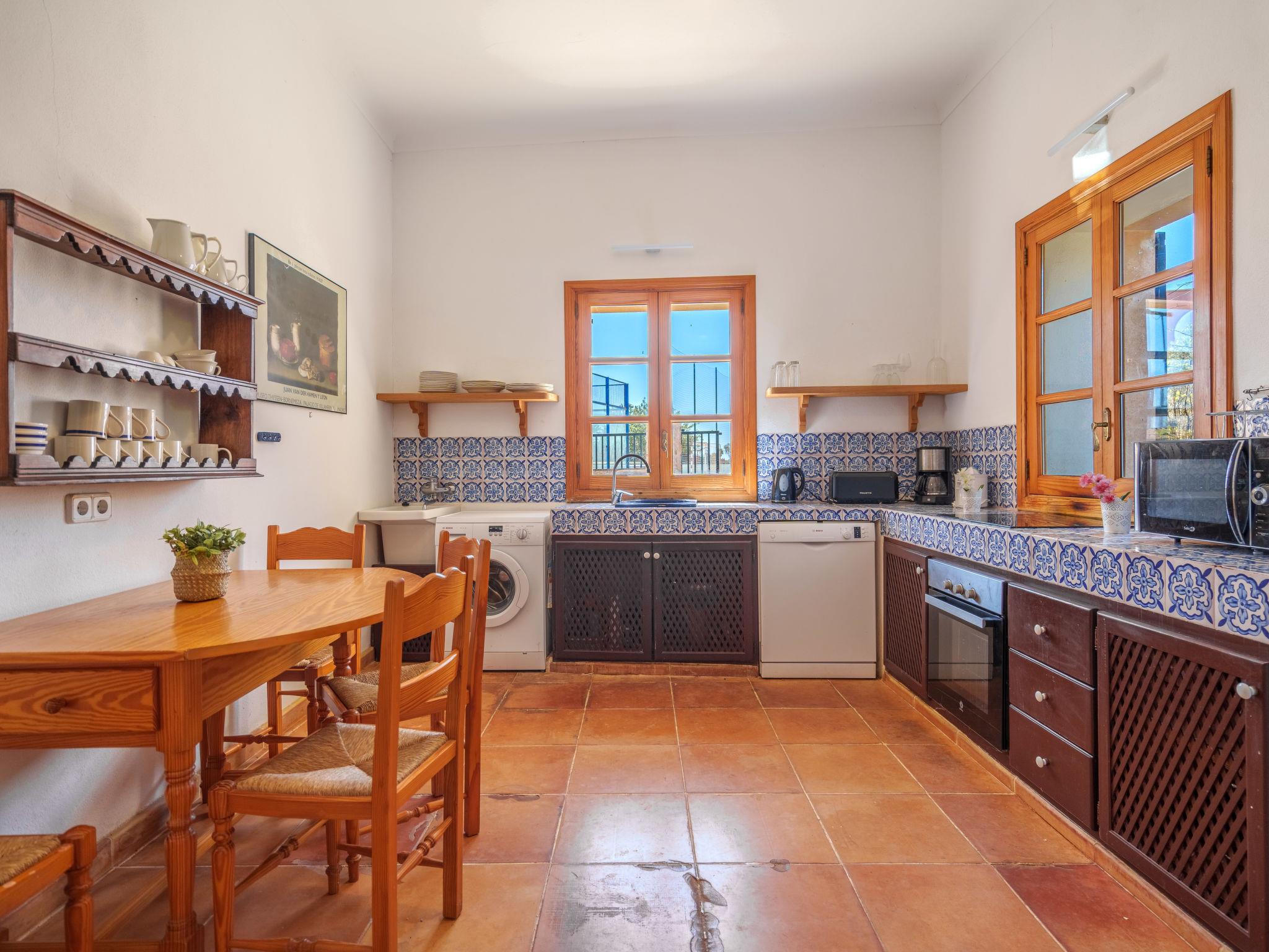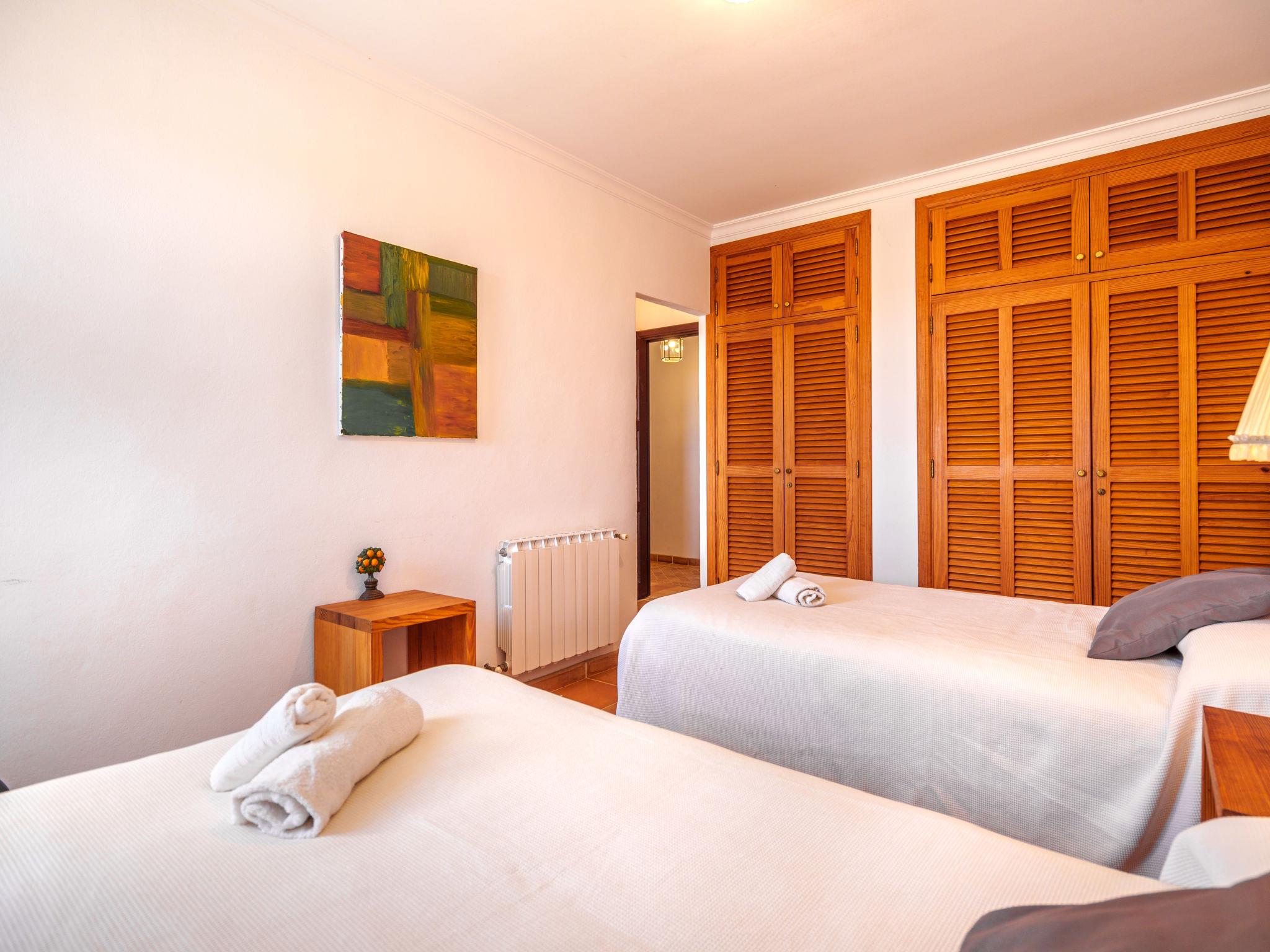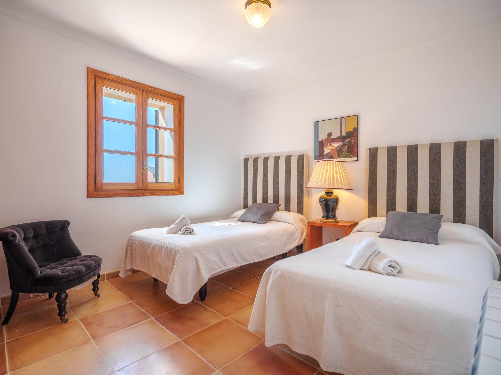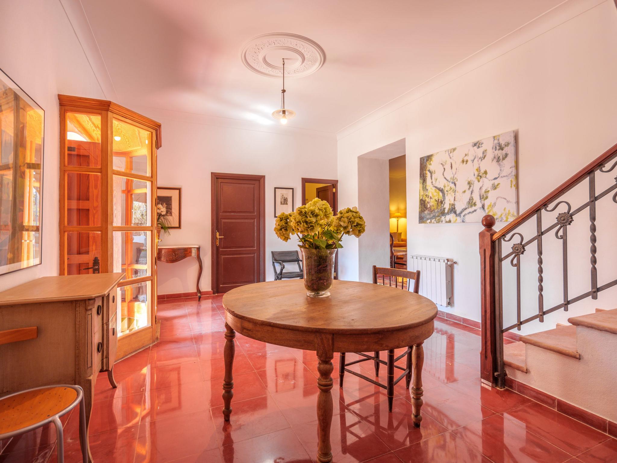 "Gran Llombards", 5-room house 200 m2 on 2 levels. Object suitable for 6 adults. Very comfortable furnishings: living room with open-hearth fireplace, digital TV, international TV channels and flat screen. Exit to the patio. Dining room with dining table, digital TV and flat screen. Kitchen-/living room (oven, dishwasher, 3 ceramic glass hob hotplates, toaster, kettle, microwave, freezer, electric coffee machine) with dining table. Shower/WC. Upper floor: 1 large double bedroom with 1 french bed (150 cm, length 200 cm), bath/WC. Exit to the terrace. 3 large double bedrooms, each room with 2 beds (90 cm, length 200 cm), bath/WC. Large balcony, patio, porch. Terrace furniture, balcony furniture, barbecue, deck chairs (4), covered balcony. View of the resort. Facilities: washing machine, iron, children's high chair, baby cot, hair dryer. Internet (WiFi, free). Parking (fenced 2 cars) at the house. Please note: non-smoking house. The pool mentioned in the description is for private use. ETV/9186 // Reg. Nr.: ESFCTU00000700800077721500000000000000000000ETV/91868