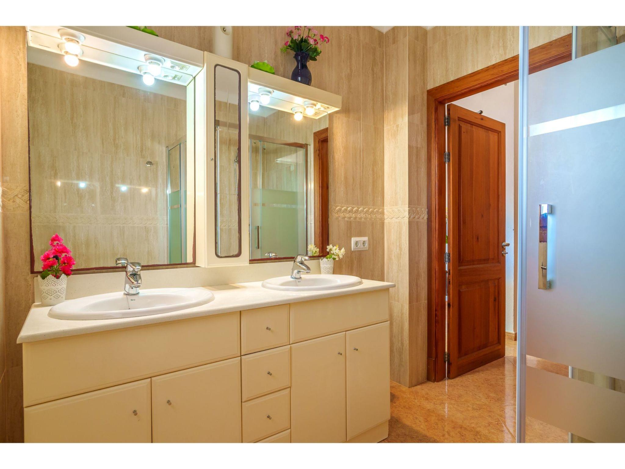 "Vista Playa", 3-room apartment 60 m2, on the ground floor. Modern furnishings: living/dining room with dining table, satellite TV and digital TV. Exit to the terrace. 1 room with 2 beds. 1 room with 1 french bed (150 cm). Open kitchen (oven, 3 ceramic glass hob hotplates, microwave, freezer, electric coffee machine). Shower/WC, double hand-basin. Floor heating. Terrace 22 m2, roofed. Terrace furniture. Marvellous view of the sea. Facilities: washing machine, children's high chair, baby cot, hair dryer. Internet (WiFi, free). Please note: non-smokers only. Maximum 1 pet/ dog allowed. Fire extinguisher. ETV/5411 // Reg. Nr.: ESFCTU00000700800112862700000000000000000000ETV/54113