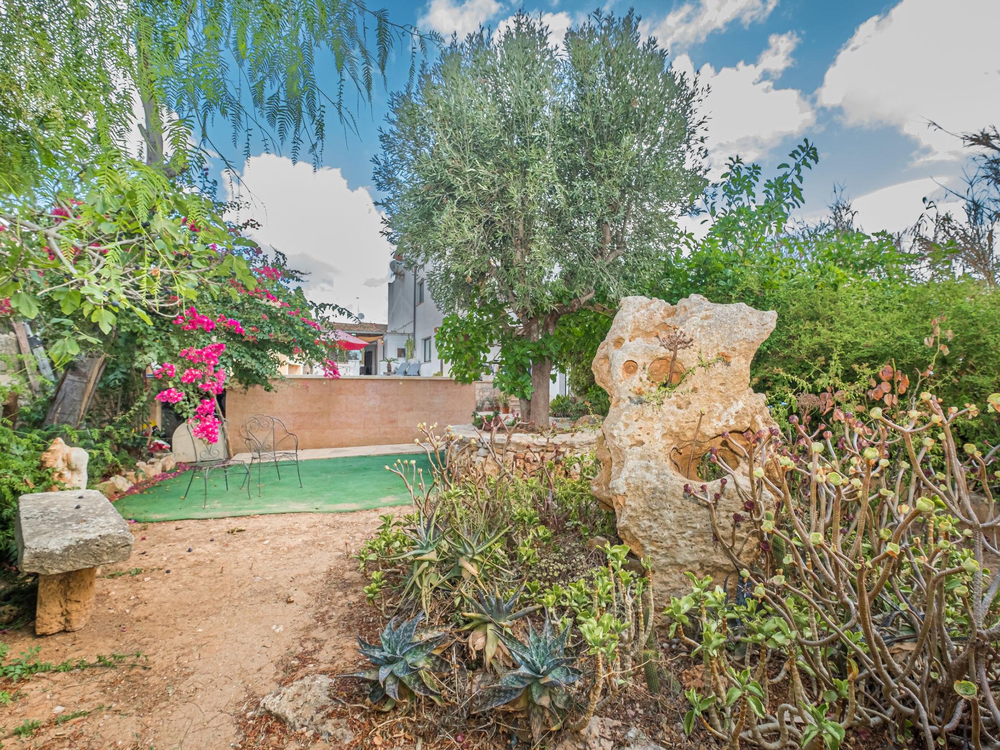 2-family house "Sa Rossa", terraced. In the resort 100 m from the centre of Es Llombards, 7 km from the centre of Santanyi, 16 km from the centre of Campos, 6 km from the sea. Private: property 200 m2 (fenced), garden with wildlife garden and trees, swimming pool (7 x 3 m, depth 100 - 160 cm, seasonal availability: 01.Jan. - 31.Dec.). Shower/WC in the pool area, public parking on the road. Shop 7 km, bus stop "Santanyi" 6 km, railway station "Manacor" 37 km, sandy beach "Cala Llombards" 6 km. Please note: car recommended. Object suitable for 4 adults. The owner lives on the same property.
