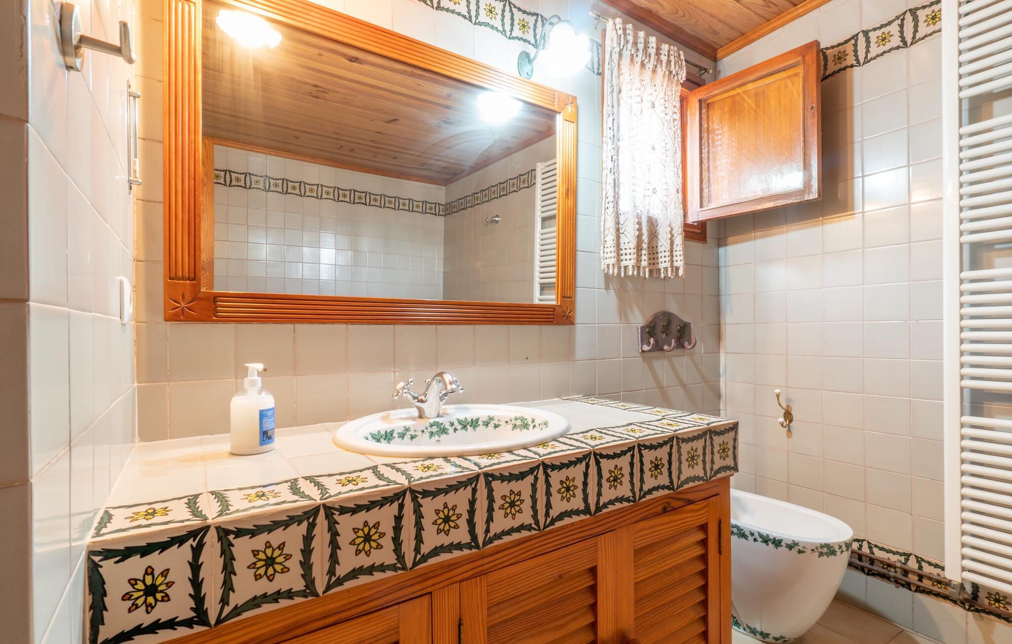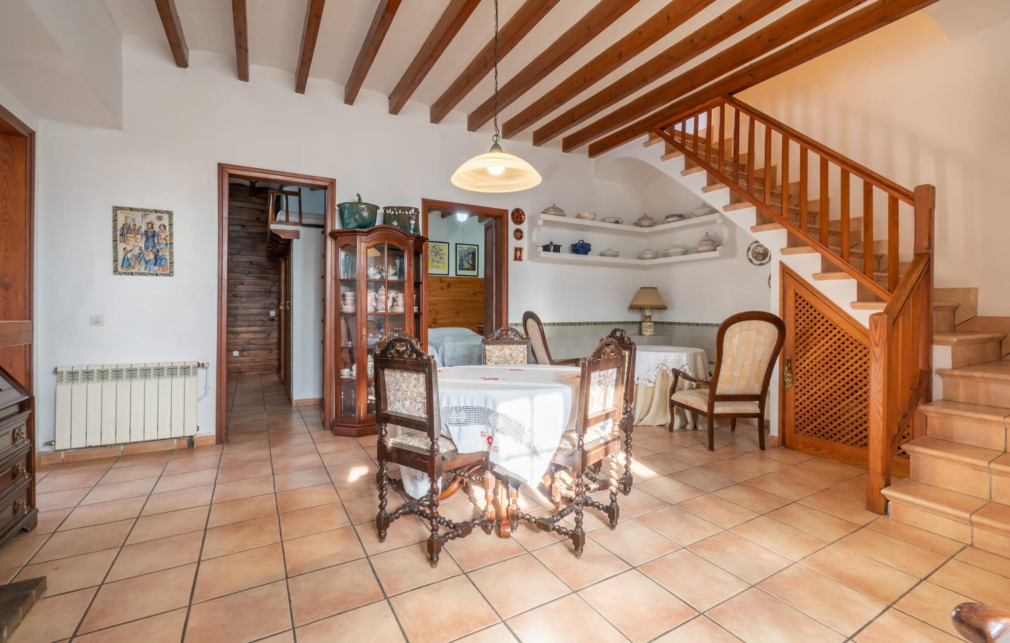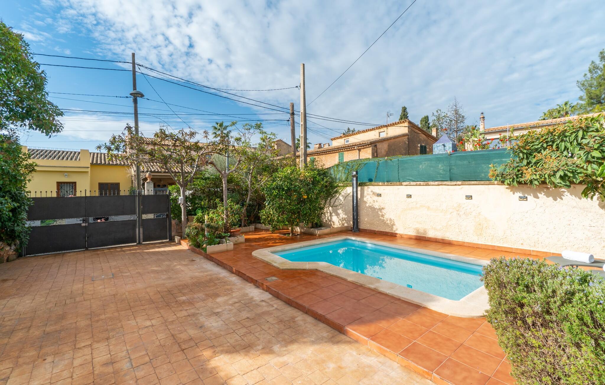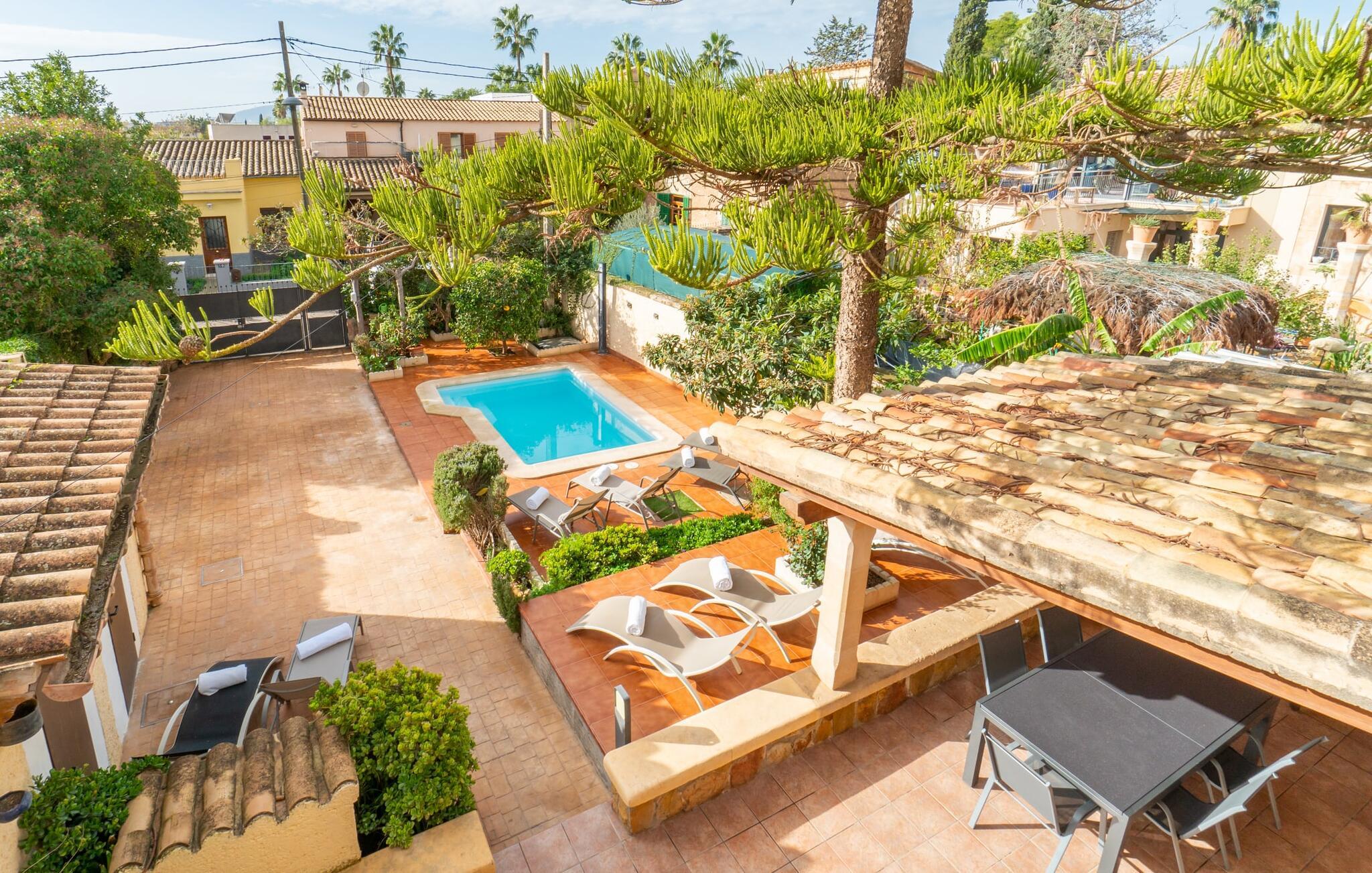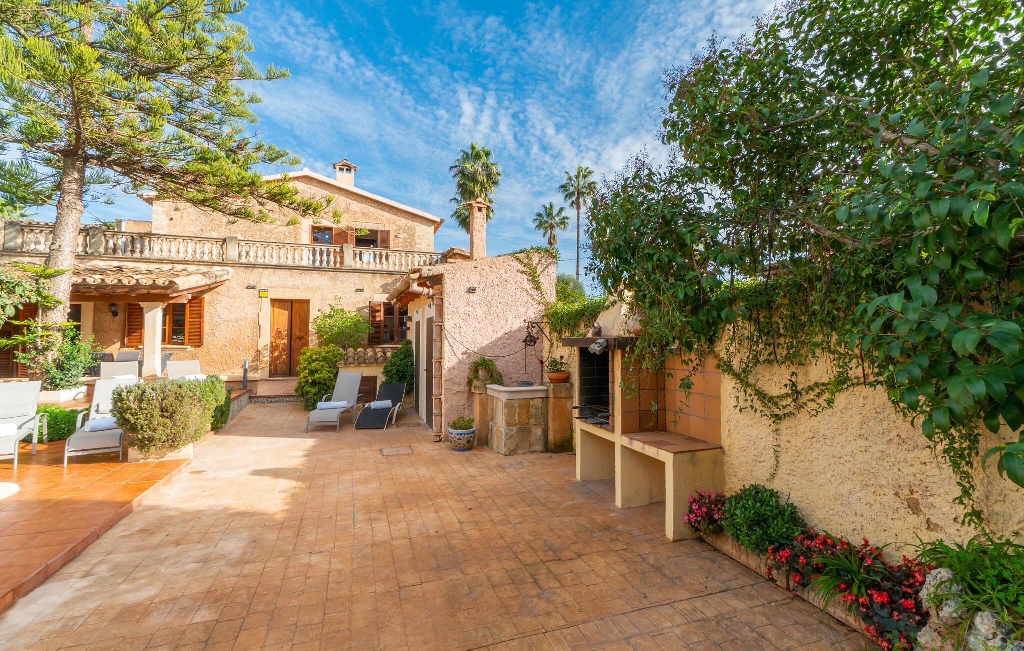 Hvis I foretrækker at bo tæt på byen med venner eller familie, så overvej Villa "Los Abilos". Dette rummelige feriehus ligger i udkanten af Palma, Mallorca, i et charmerende boligområde. Ejendommen har et privat udendørs område med pool og bruser, omgivet af en mur for yderligere privatliv. Slap af på de forskellige terrasser udstyret med komfortable liggestole eller nyd den betagende udsigt fra tagterrassen. Udekøkkenet og grillpladsen er perfekte til fælles måltider. Den indbydende atmosfære forstærkes af et udvalg af middelhavsplanter. I kan parkere i haven. Indvendigt udstråler villaen traditionel mallorcansk charme med mørkt træ, naturlige farver og rustikke møbler. I stueetagen er der et veludstyret køkken, en hyggelig opholds- og spisestue, to unikt designede soveværelser og to badeværelser. Ovenpå er der yderligere fire soveværelser og to badeværelser, hvoraf det ene har et stort badekar. Villaen "Los Abilos" ligger på en typisk villavej i udkanten af Palma i den vestlige del af Mallorca. Der er kun omkring 5,5 km til byens centrum, som I nemt kan nå med bus. Stranden Platja de Can Pere Antoni ligger cirka 10,5 km væk. Butikker og restauranter ligger inden for gåafstand. Bemærk venligst, at denne ejendom ikke accepterer ungdomsgrupper eller polterabender. En ungdomsgruppe på denne ejendom består af personer på 23 år eller derunder. Book ikke denne ejendom, hvis I er en ungdomsgruppe eller polterabend, da jeres reservation vil blive afvist, når den er booket, hvilket også kan være tilfældet ved ankomst til ejendommen eller under jeres ophold, og I vil ikke modtage en refusion