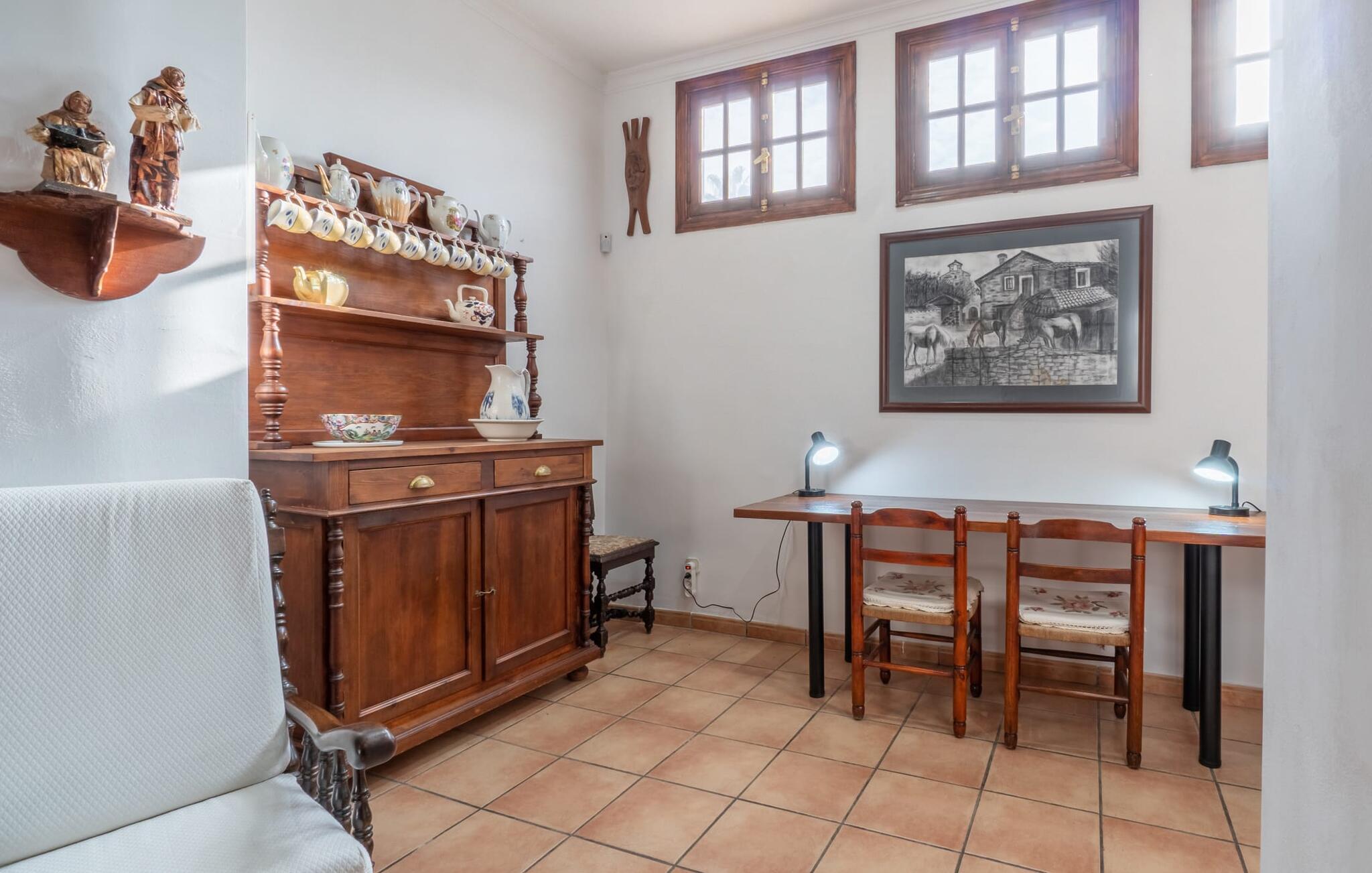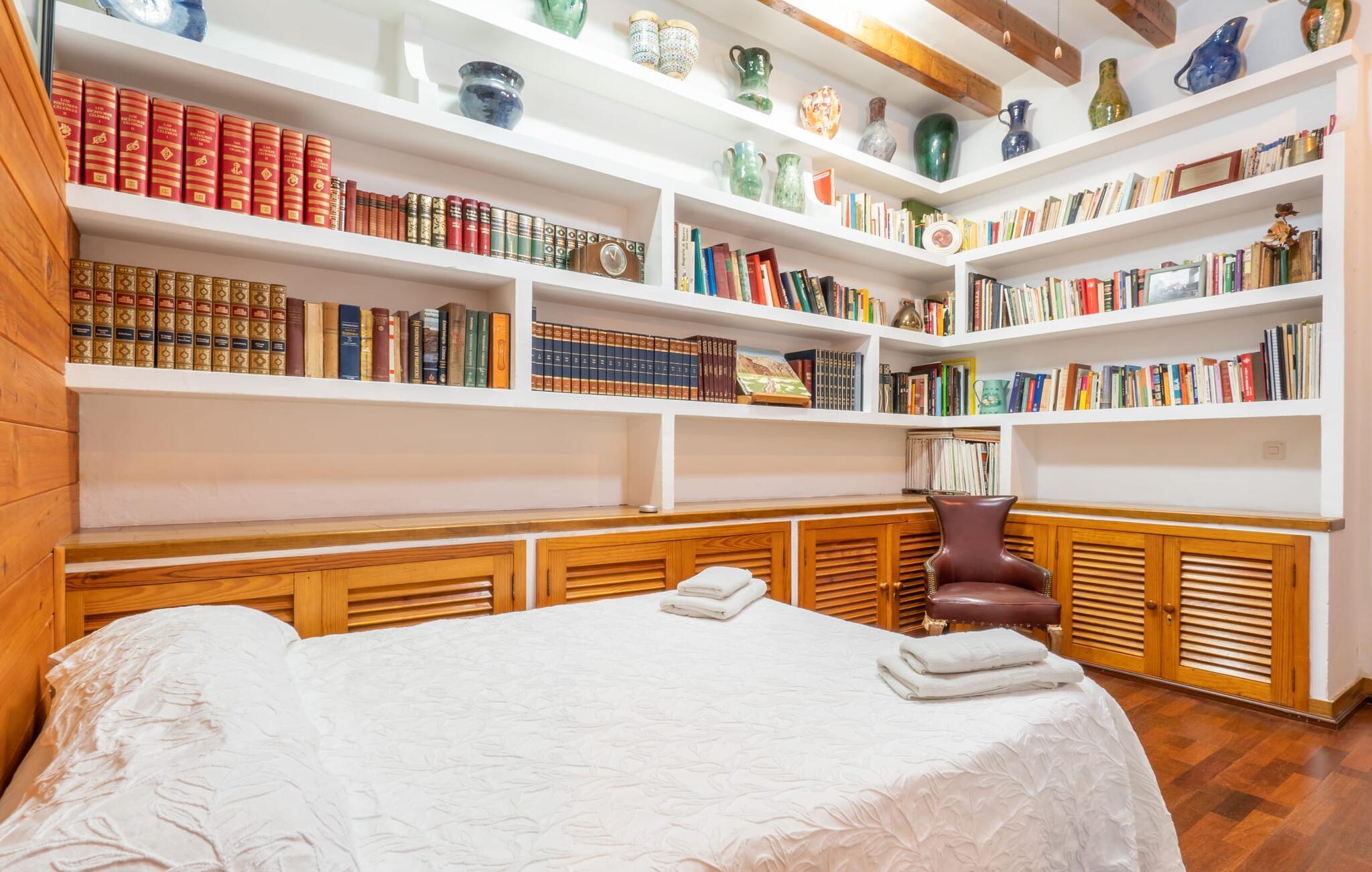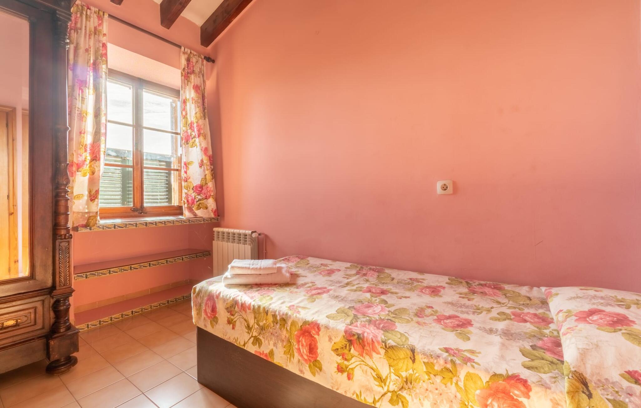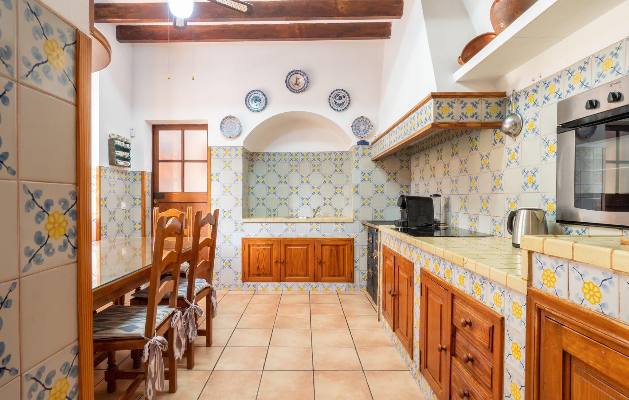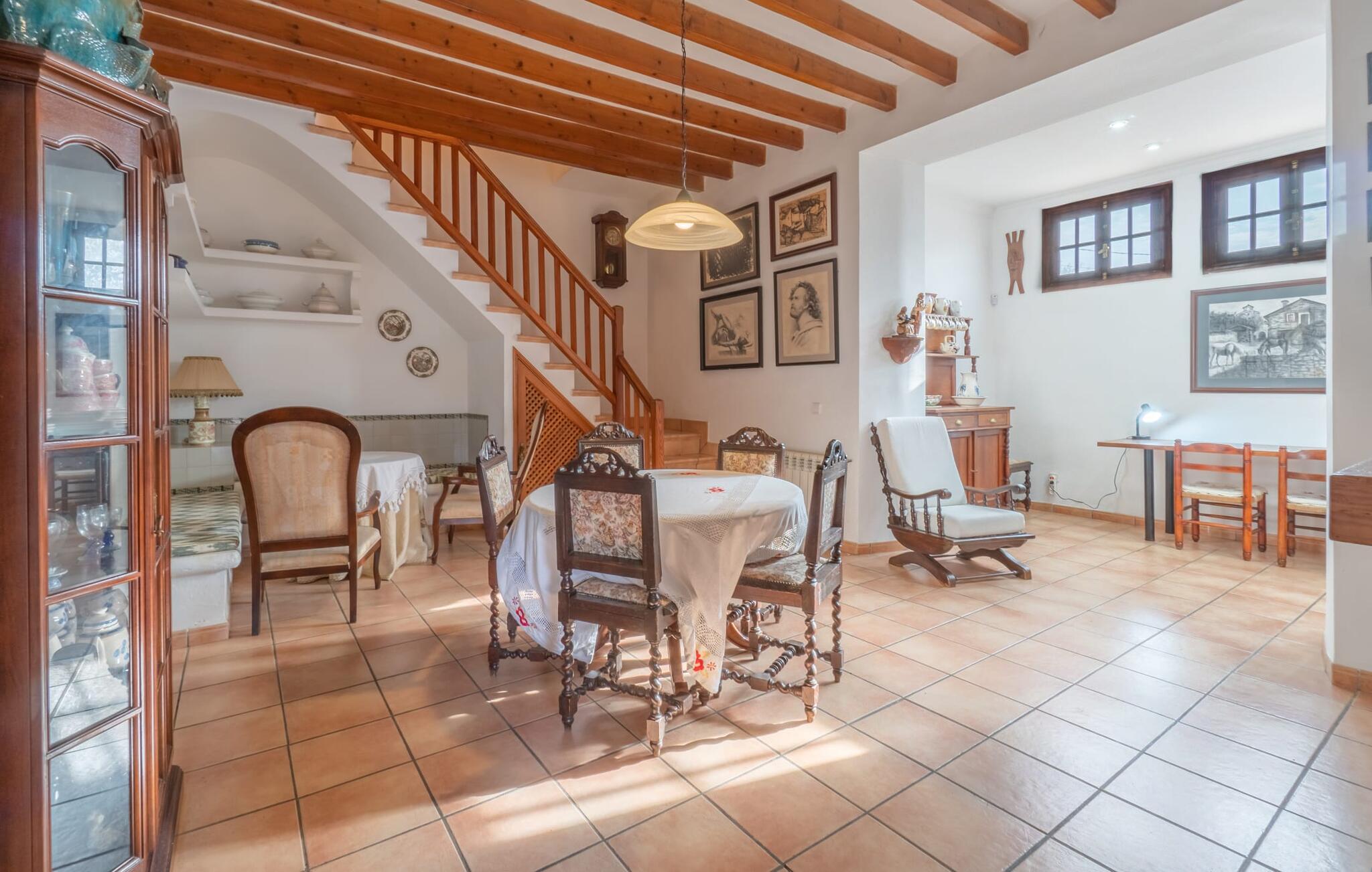 Hvis I foretrækker at bo tæt på byen med venner eller familie, så overvej Villa "Los Abilos". Dette rummelige feriehus ligger i udkanten af Palma, Mallorca, i et charmerende boligområde. Ejendommen har et privat udendørs område med pool og bruser, omgivet af en mur for yderligere privatliv. Slap af på de forskellige terrasser udstyret med komfortable liggestole eller nyd den betagende udsigt fra tagterrassen. Udekøkkenet og grillpladsen er perfekte til fælles måltider. Den indbydende atmosfære forstærkes af et udvalg af middelhavsplanter. I kan parkere i haven. Indvendigt udstråler villaen traditionel mallorcansk charme med mørkt træ, naturlige farver og rustikke møbler. I stueetagen er der et veludstyret køkken, en hyggelig opholds- og spisestue, to unikt designede soveværelser og to badeværelser. Ovenpå er der yderligere fire soveværelser og to badeværelser, hvoraf det ene har et stort badekar. Villaen "Los Abilos" ligger på en typisk villavej i udkanten af Palma i den vestlige del af Mallorca. Der er kun omkring 5,5 km til byens centrum, som I nemt kan nå med bus. Stranden Platja de Can Pere Antoni ligger cirka 10,5 km væk. Butikker og restauranter ligger inden for gåafstand. Bemærk venligst, at denne ejendom ikke accepterer ungdomsgrupper eller polterabender. En ungdomsgruppe på denne ejendom består af personer på 23 år eller derunder. Book ikke denne ejendom, hvis I er en ungdomsgruppe eller polterabend, da jeres reservation vil blive afvist, når den er booket, hvilket også kan være tilfældet ved ankomst til ejendommen eller under jeres ophold, og I vil ikke modtage en refusion
