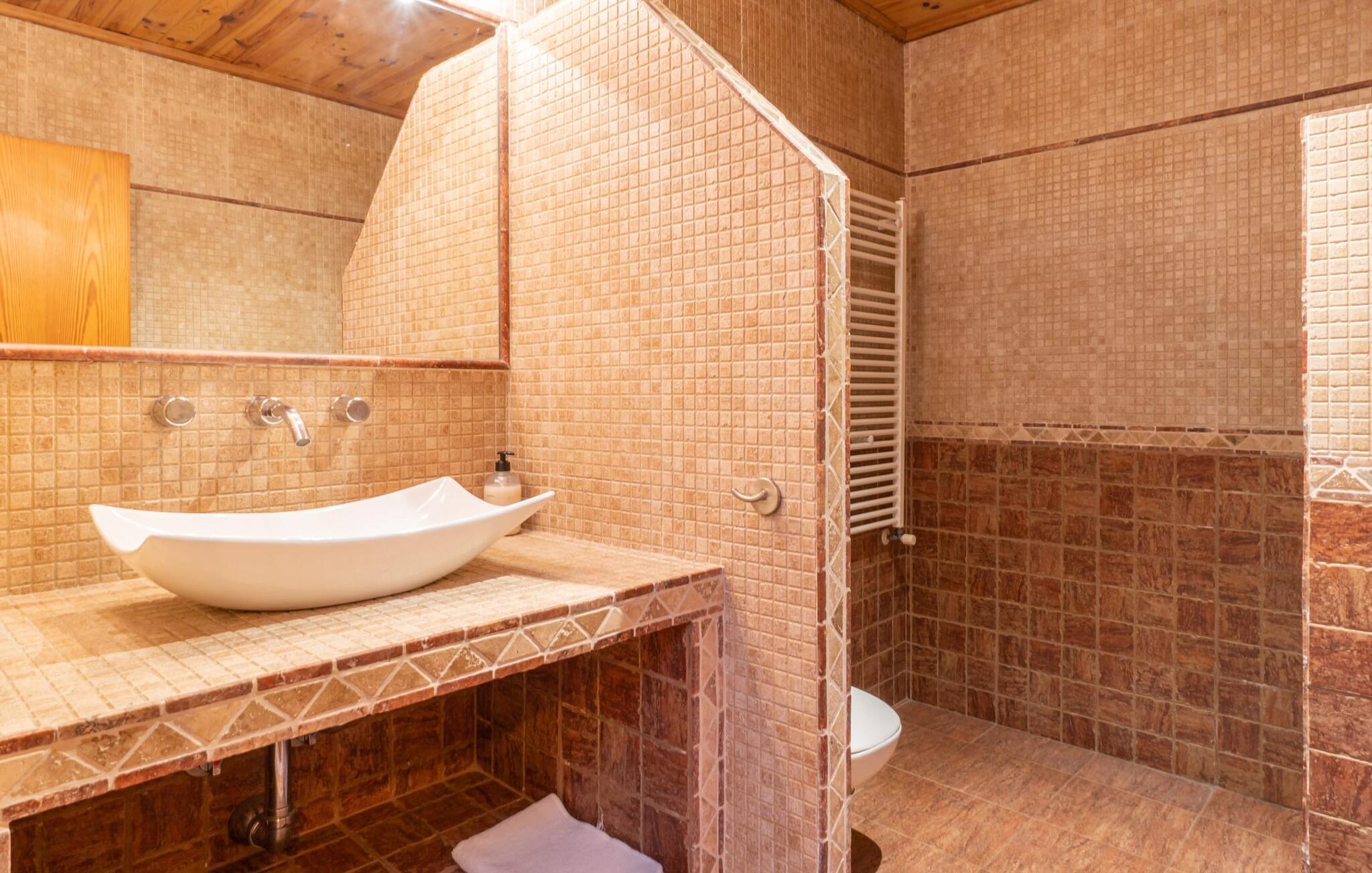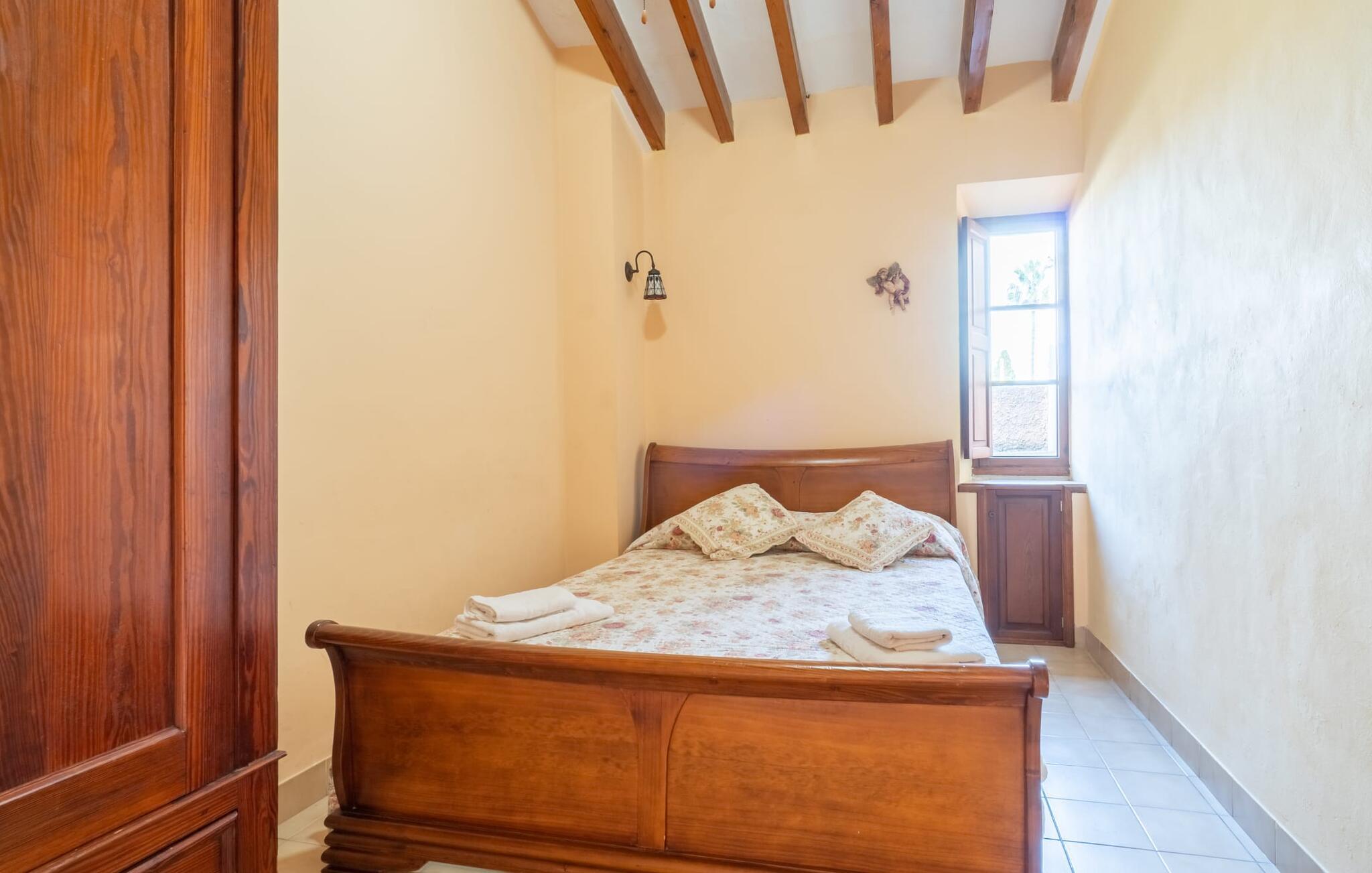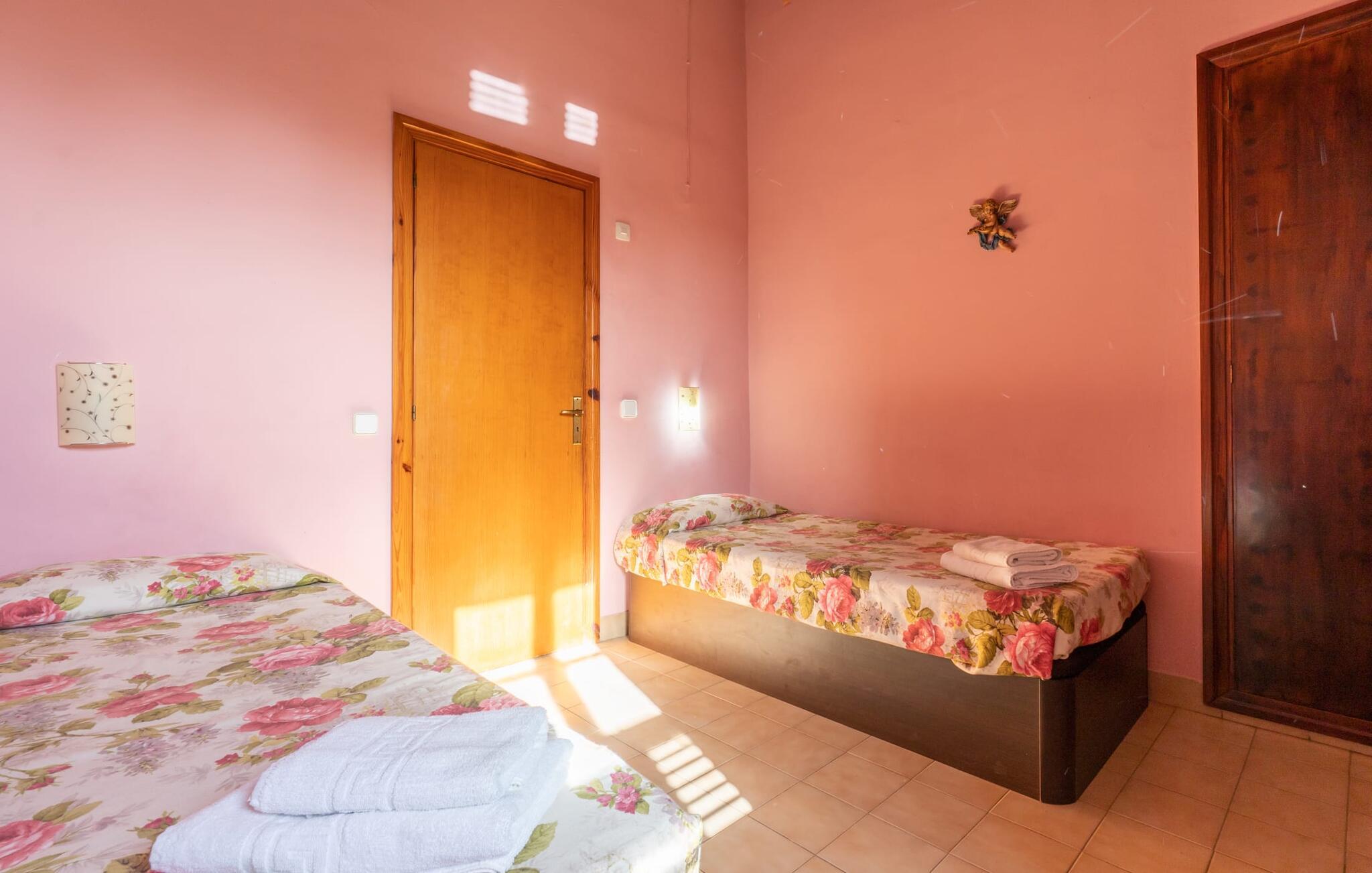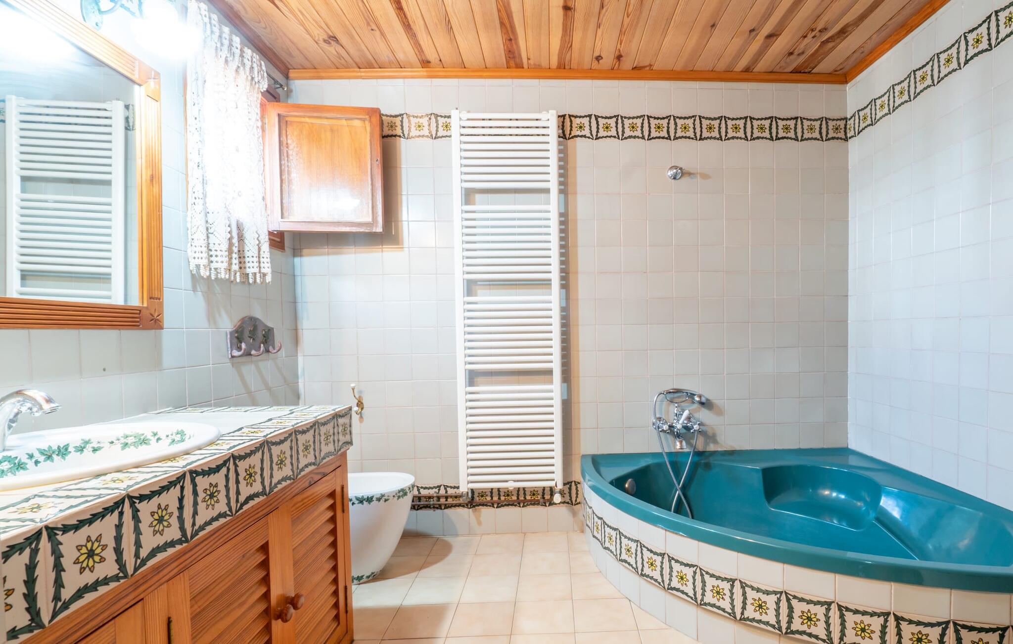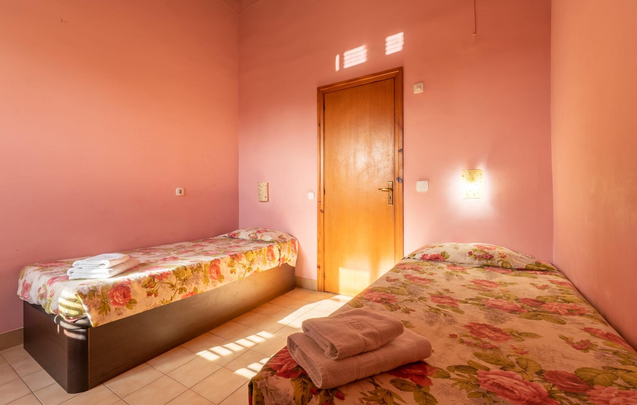 Hvis I foretrækker at bo tæt på byen med venner eller familie, så overvej Villa "Los Abilos". Dette rummelige feriehus ligger i udkanten af Palma, Mallorca, i et charmerende boligområde. Ejendommen har et privat udendørs område med pool og bruser, omgivet af en mur for yderligere privatliv. Slap af på de forskellige terrasser udstyret med komfortable liggestole eller nyd den betagende udsigt fra tagterrassen. Udekøkkenet og grillpladsen er perfekte til fælles måltider. Den indbydende atmosfære forstærkes af et udvalg af middelhavsplanter. I kan parkere i haven. Indvendigt udstråler villaen traditionel mallorcansk charme med mørkt træ, naturlige farver og rustikke møbler. I stueetagen er der et veludstyret køkken, en hyggelig opholds- og spisestue, to unikt designede soveværelser og to badeværelser. Ovenpå er der yderligere fire soveværelser og to badeværelser, hvoraf det ene har et stort badekar. Villaen "Los Abilos" ligger på en typisk villavej i udkanten af Palma i den vestlige del af Mallorca. Der er kun omkring 5,5 km til byens centrum, som I nemt kan nå med bus. Stranden Platja de Can Pere Antoni ligger cirka 10,5 km væk. Butikker og restauranter ligger inden for gåafstand. Bemærk venligst, at denne ejendom ikke accepterer ungdomsgrupper eller polterabender. En ungdomsgruppe på denne ejendom består af personer på 23 år eller derunder. Book ikke denne ejendom, hvis I er en ungdomsgruppe eller polterabend, da jeres reservation vil blive afvist, når den er booket, hvilket også kan være tilfældet ved ankomst til ejendommen eller under jeres ophold, og I vil ikke modtage en refusion