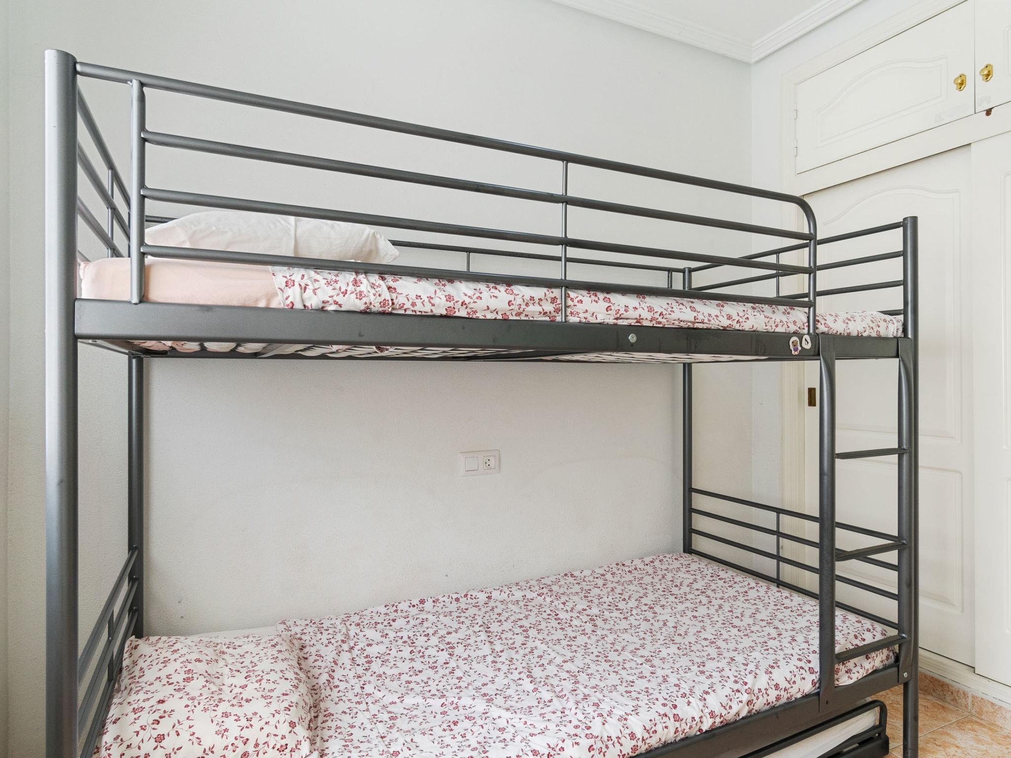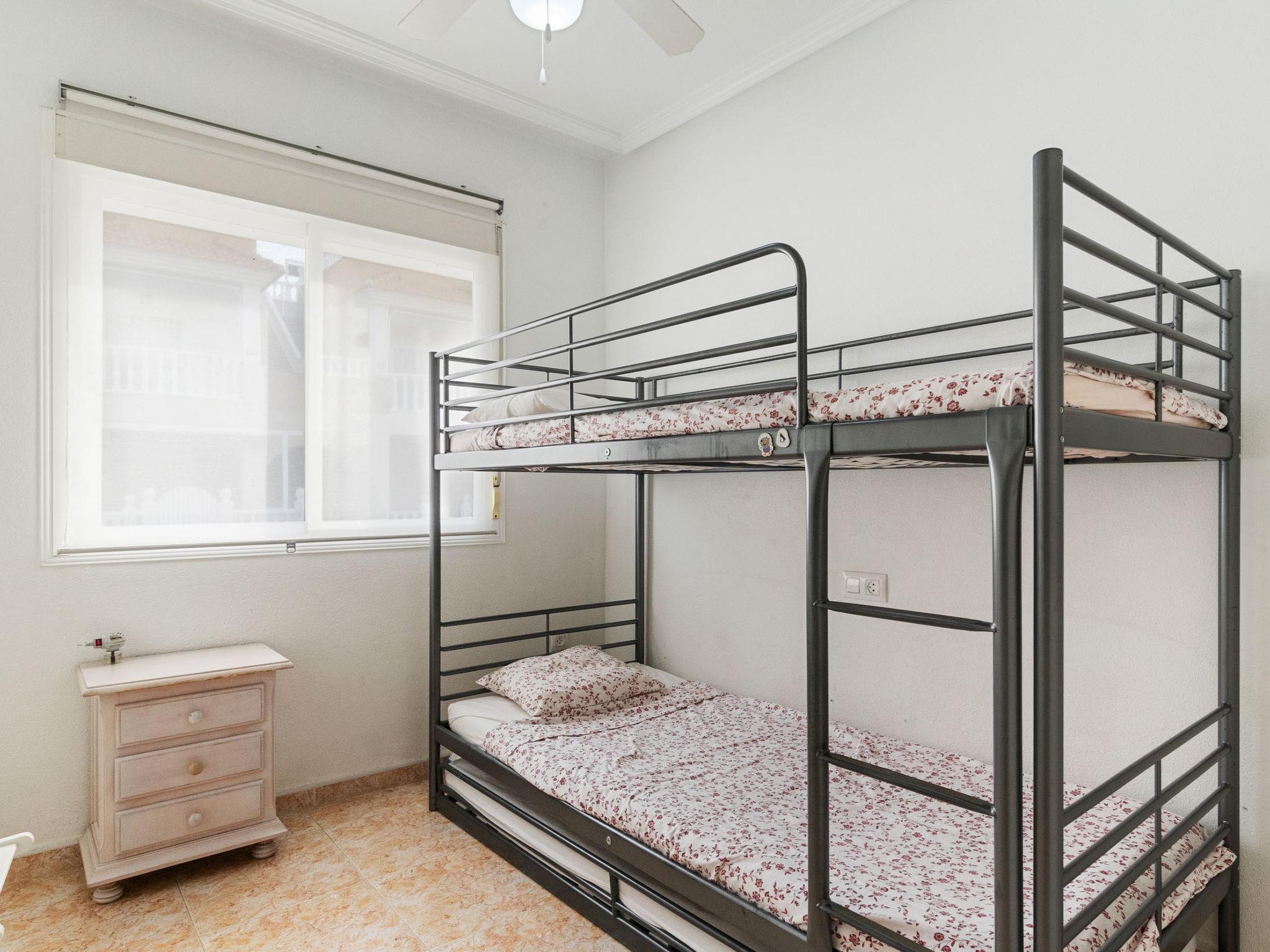 3-room terraced house 50 m2. Bright, practical and comfortable furnishings: open living/dining room with dining table, international TV channels, flat screen, air conditioning and forced-air heating. Exit to the terrace. 1 room with 1 double bed. 1 room with 1 x 2 bunk beds (90 cm), 1 pull-out bed (1 pers.). Open kitchen (dishwasher, 4 ceramic glass hob hotplates, microwave). Bath/WC. Electric heating, air-conditioning. Terrace 8 m2. Terrace furniture. Facilities: washing machine, iron, baby cot for up to 2 year olds, hair dryer. Internet (WiFi, free). Please note: non-smokers only. VV.MU.688-1 // Reg. Nr.: ESFCTU00003003300067384500000000000000000VV.MU.688-10