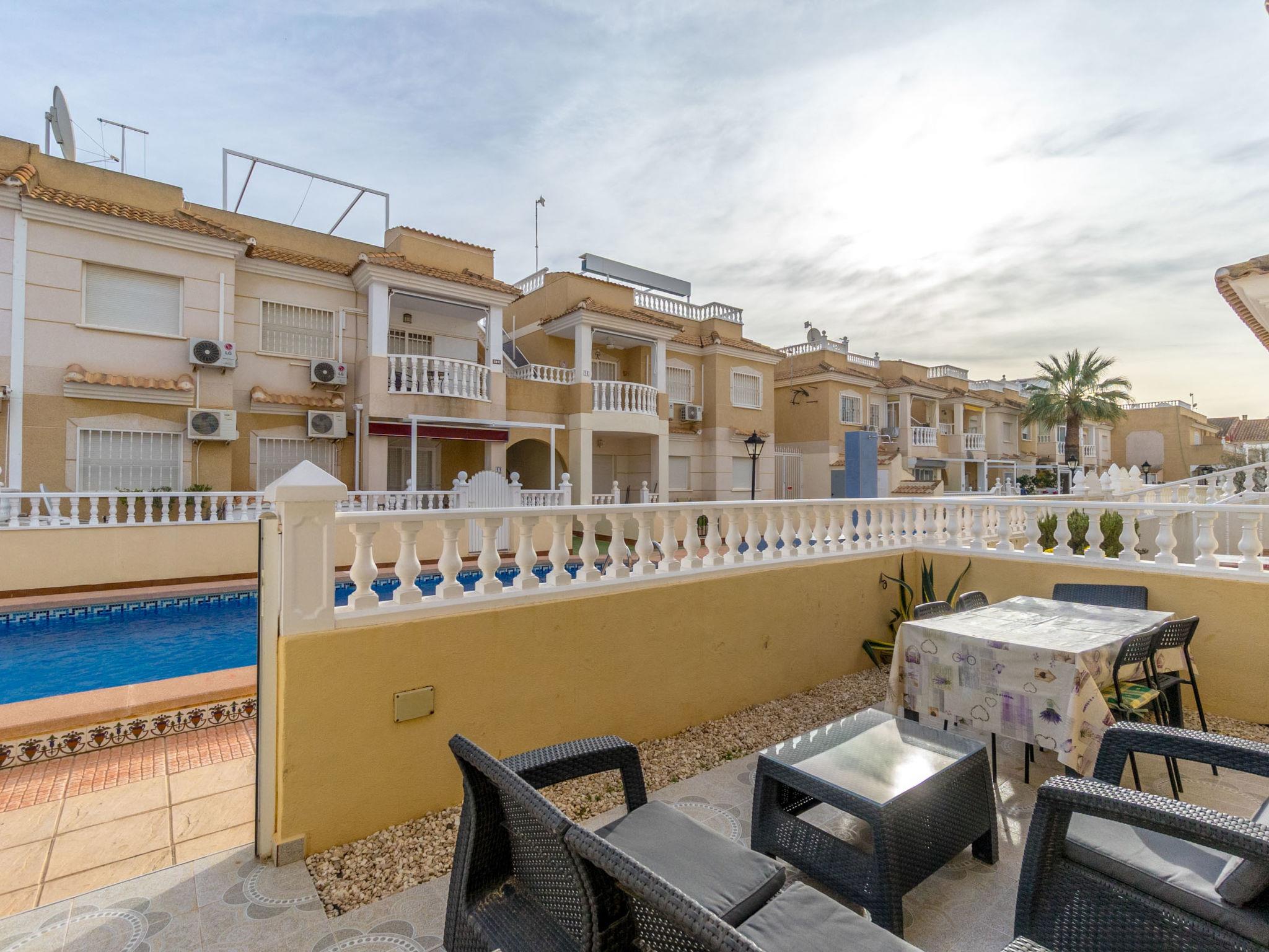 Small, comfortable terraced house "Tista". In the resort Los Alcázares, in a quiet, sunny position, 500 m from the sea, from the beach. For shared use: swimming pool (seasonal availability: 01.Jan. - 31.Dec.). Children's pool, outdoor shower, public parking on the road. Grocery, supermarket, restaurant, bus stop 500 m, sandy beach. Golf course (18 hole) 3 km, children's playground 50 m.