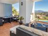 Lejligheden består af et soveværelse og en stor terrasse med gode rattan-havemøbler og bekvemme puder, hvor I kan slappe af, spise i det fri og nyde den uforglemmeligt smukke panoramaudsigt over bjergene, havet og en af de fælles pools.
