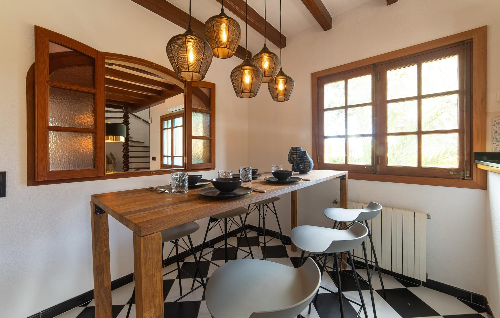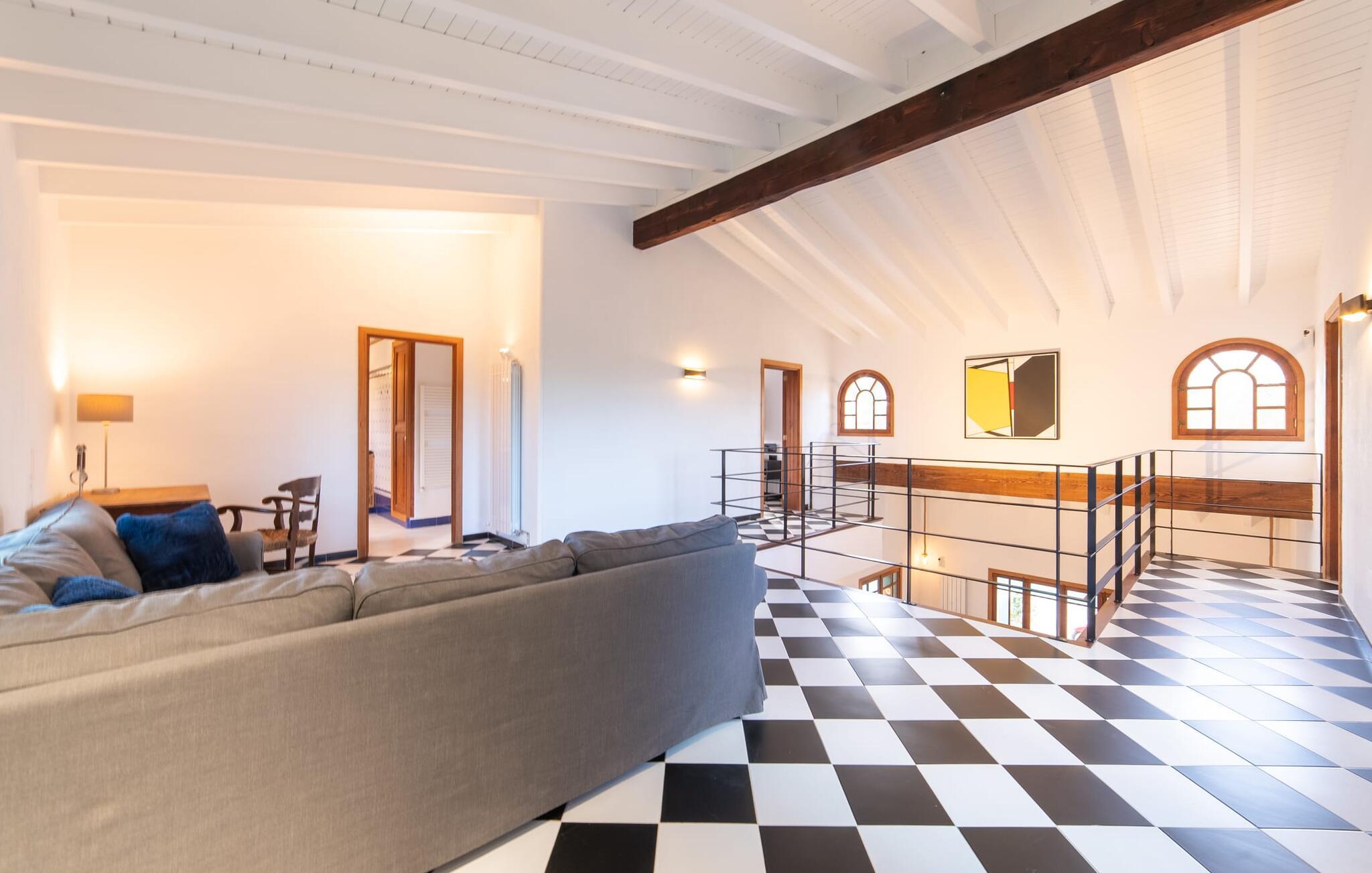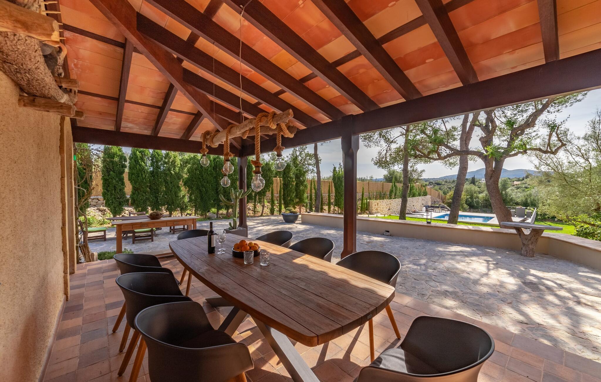 Fincaen "Los Pinos de Arta" er et to-etagers, trendy feriehus, der imponerer med en særlig individuel blanding af klassisk mallorcansk konstruktion, vidunderligt grønt og roligt område og detaljeret interiør og eksteriørdesign. Den store, meget attraktive have med gamle træer og store græsplæner danner en skøn idyl med forskellige zoner, hvor der altid er solrige og skyggefulde pletter. Der er talrige siddemuligheder ved poolen, på de store terrassearealer og på den hyggelige overdækkede terrasse direkte ved huset. Hvis I ønsker det, kan I først om morgenen svømme et par længder i poolen, som er omgivet af en elegant solterrasse med god plads til liggestole og nemt kan nås via en bred trappe. Chill-out loungen tilbyder de bedste betingelser for afslappende timer udendørs. Sportsentusiaster og børn får også noget for pengene. En stor spillebane med et volleyballnet og en overdimensioneret trampolin i jordhøjde giver mulighed for at slippe dampen ud. Den imponerende stue med næsten 8 m højt bjælkeloft, der strækker sig over to plan i stueetagen, danner centrum for det statelige, over 300 m² store hus, som imponerer med sin stilfulde flair og attraktive indretning. I det centrale stueetage er der stue med stor sofa og pejs. De sorte og hvide gulvfliser i kombination med de hvide vægge og lofter giver de moderne møbler en særlig æstetisk ramme. I den tilstødende spiseplads, adskilt af to trin, kan I spise sammen med stil og nyde hjemmets komfort. En anden spisemulighed i form af et stort bord med barstole er tilgængelig i det rummelige, moderne køkken, hvor I kan hygge jer med at tilberede måltider foruden mange arbejdsområder og en fantastisk kogeø. I direkte tilknytning til køkkenet ligger bryggerset, som er udstyret med endnu et drikkekøleskab, og hvorfra man umiddelbart kan tilgå grillpladsen på terrassen. Dette rum er også grillkøkkenet med en Napoleon gasgrill 800 temperatur, hvor I kan tilberede mad udendørs. En dekorativ vindeltrappe i husets tårn fører op og man når først det store galleriområde på øverste etage. På denne etage er der tre smagfuldt og nyrenoverede soveværelser og to badeværelser (en af dem en suite). Derudover byder galleriområdet på endnu et hyggeligt tilflugtssted for at slappe af eller arbejde. Der er også et elegant gæstetoilet i stueetagen til jer og jeres besøgende. Fincaen "Los Pinos de Arta" ligger i landlige omgivelser ikke langt fra den mallorcanske landsby Artà i den nordøstlige del af Mallorca. Den står på en grund på over 10.000 m², der er anlagt omkring huset og poolen som en smuk, grøn have med gamle træer. Artà med dens historiske gamle bydel kan nås på få minutter i bil eller endnu bedre til fods. Dette er en stor fordel, især hvis I ønsker at besøge det landskendte marked hver tirsdag. Fincaen er også ideel for cyklister, da en lille betonsti er umiddelbart tilgængelig for dem gennem havelågen. Strandene i Cala Agulla, Cala Son Moll og Playa de Canyamel ligger hver kun omkring 10 km væk og maksimalt 15 minutter i bil. Det samme gælder det livlige Cala Ratjada, som nyder kultstatus for sit natteliv og kan nås på 15 minutter i bil eller taxa.