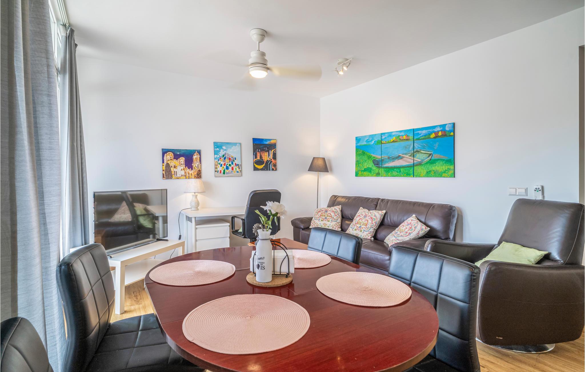 Den skønne ferielejlighed tilbyder jer de ideelle rammer for en kombineret by- og badeferie med jeres familie eller et par venner. Indretningen er smagfuld og af høj kvalitet for at sikre jer den bedste komfort på ferien. Glæd jer til gode faciliteter, såsom et omvendt osmose-vandfiltersystem, som lover jer højt drikkevand fra køkkenhanen. Udforsk også de andre rum, såsom de hyggelige soveværelser, som tilbyder jer afslapning efter travle dage og badeværelserne, som tilbyder privatliv. Den lyse og åbne stue lægger op til at lade blikket vandre over Malagas tage fra den tilstødende altan. Kun få skridt fra lejligheden finder I to store markeder. Besøg de charmerende caféer i jeres nabolag og besøg kunstgalleriet med forskellige kunstnere hver uge. I er kun få minutters gang fra det historiske centrum. Gå en tur gennem de smukke gader og stræder og nyd byens flair. Beundre blandt andet Santa Iglesia Catedral Basílica de la Incarnación. Uden for det historiske centrum finder I Alcazaba, Castillo de Gibralfaro og havnen. I kan derfor hver dag tage på en ny opdagelsestur og besøge de mange seværdigheder. Efter jeres ture kan I slappe af og forfriske jer selv i vandet på Malagas sandstrand. Et vandland byder på masser af vandsjov for unge og gamle. God fornøjelse i denne attraktive ferielejlighed i Malaga!
