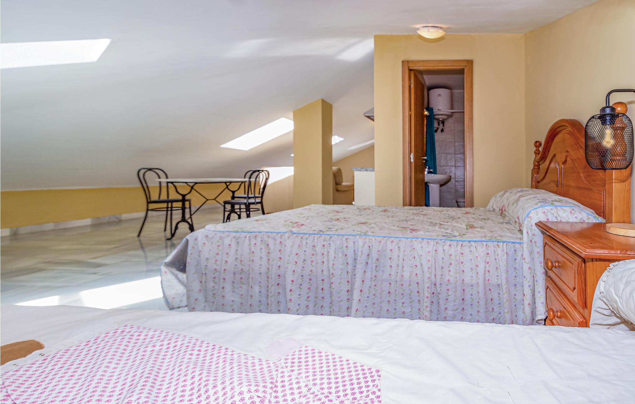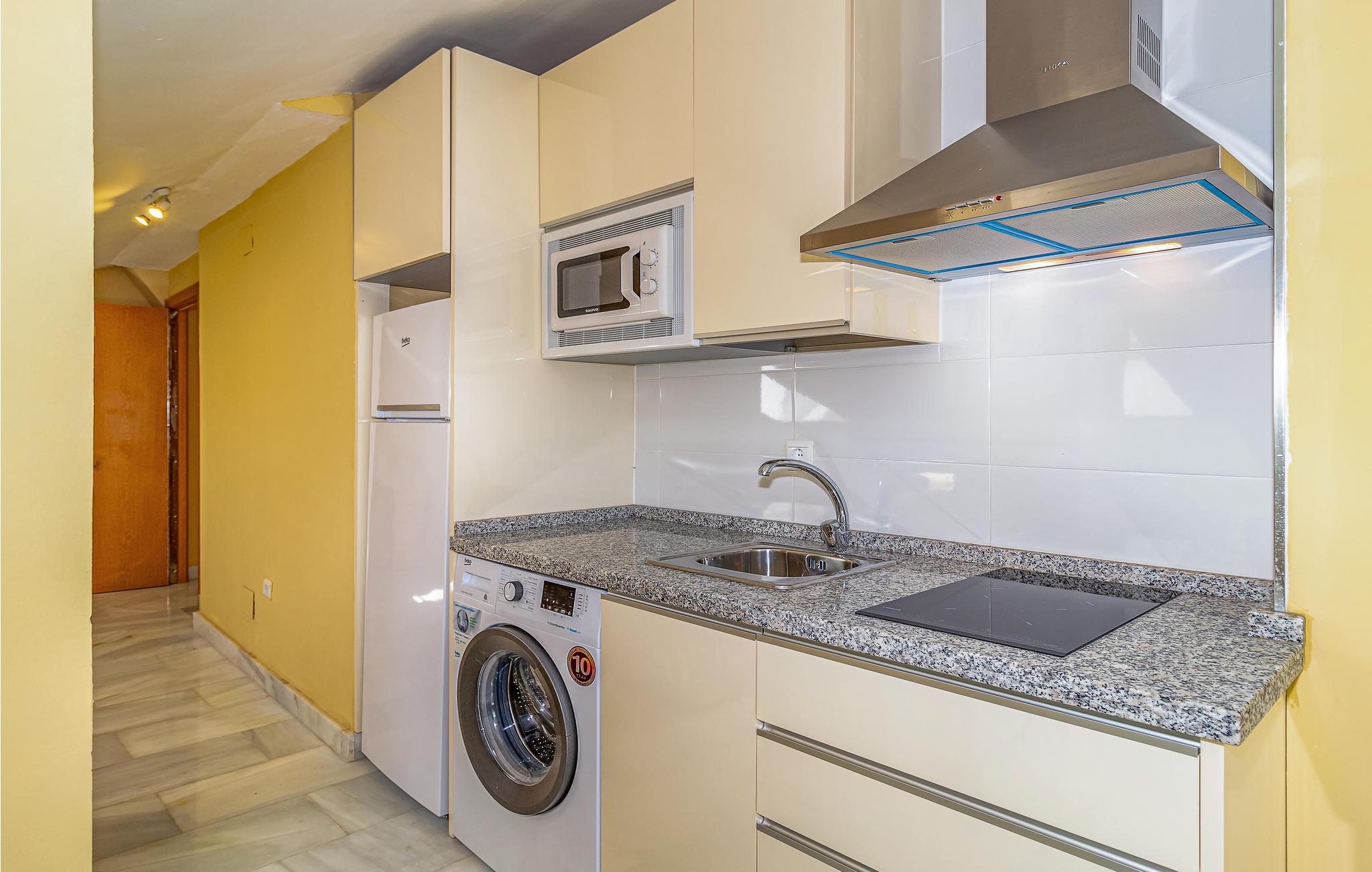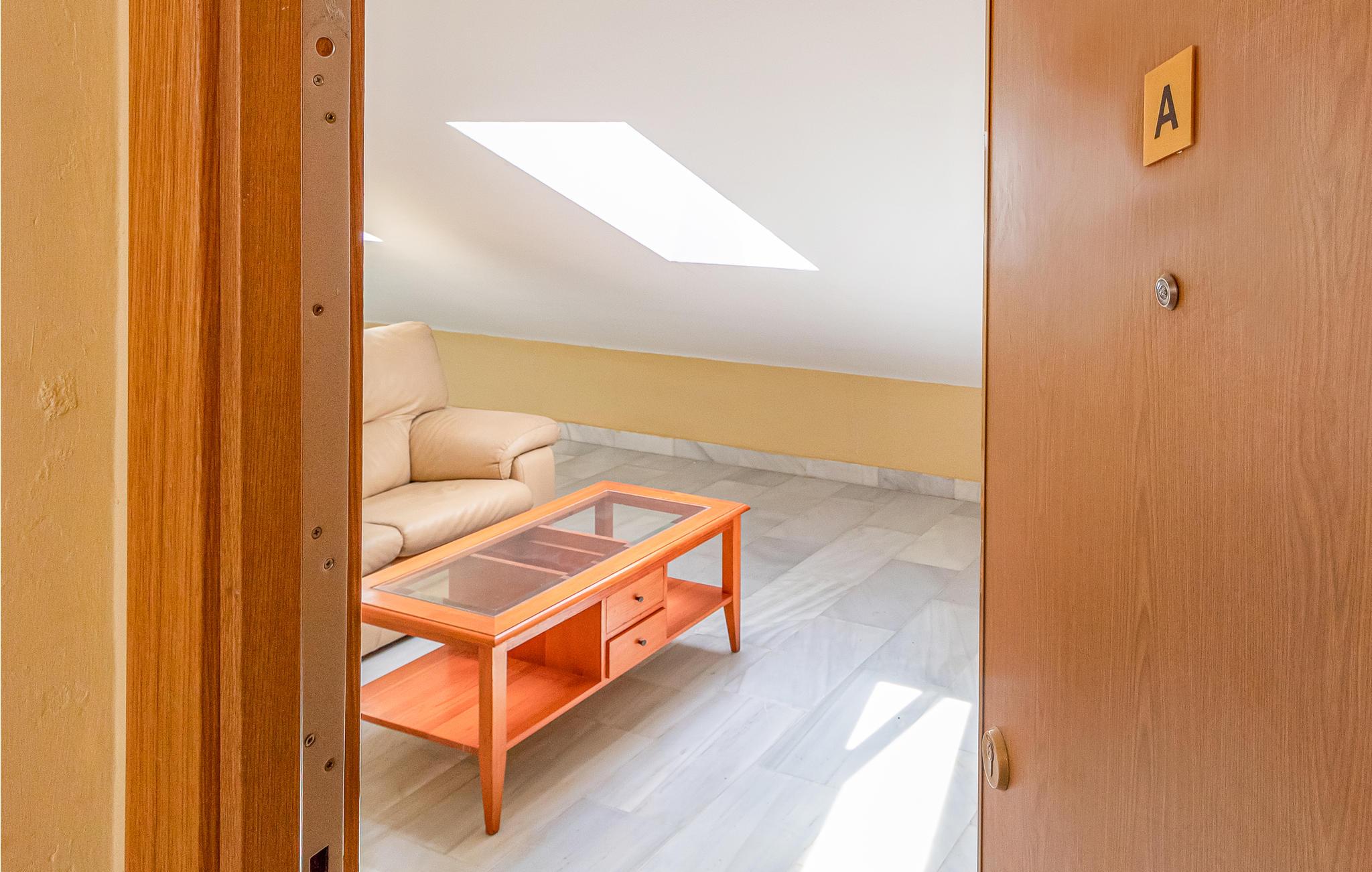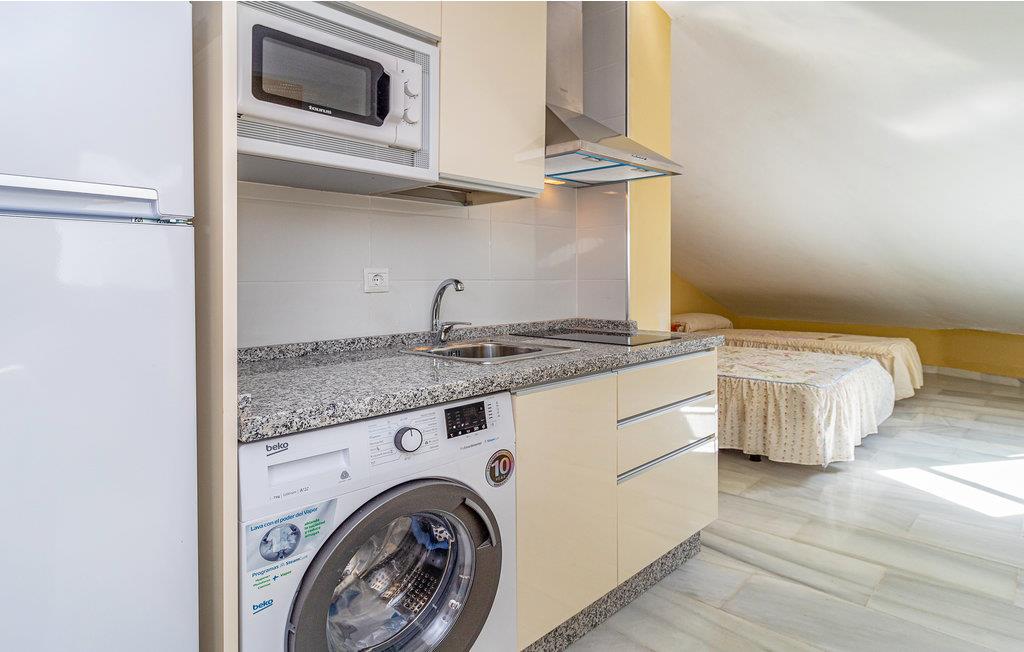 Nyd en ferie i smukke Málaga med base i denne smukke lejlighed til tre personer. Lejligheden er lys og praktisk indrettet, ligger på syvende etage og er opdelt i et soveværelse, et badeværelse, en stue og et tekøkken. I kan samles i stuen i lejligheden til en hyggelig aften og se tv eller planlægge feriens aktiviteter sammen. Den flot renoverede penthouselejlighed har skrå lofter med store vinduer, som skaber et smukt lysindfald i soveværelset og stuen.