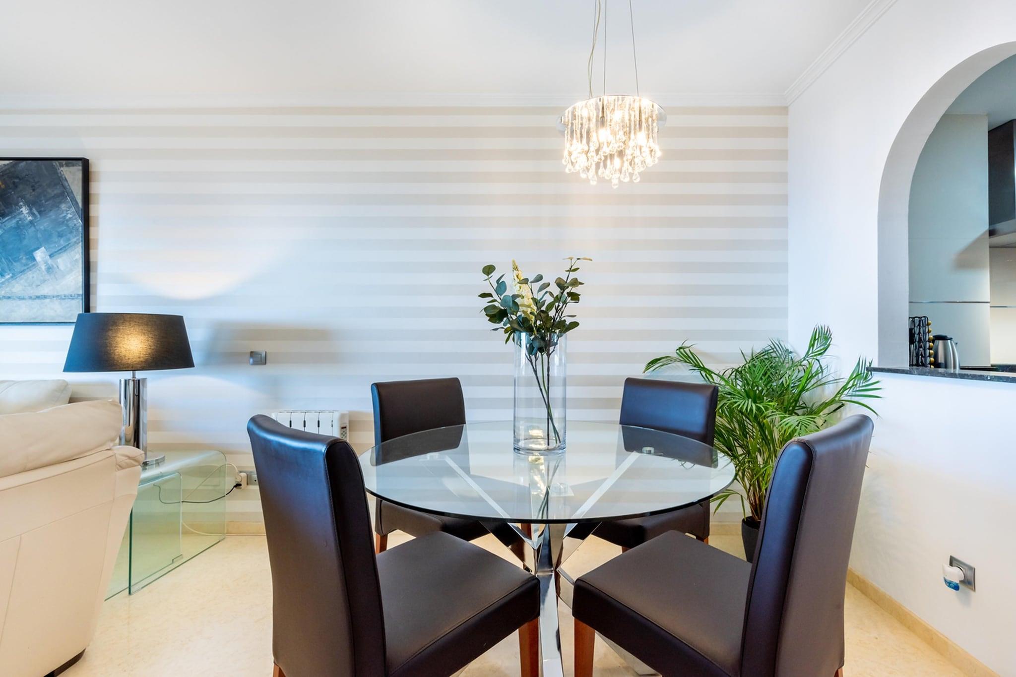 Elegant lejlighed med havudsigt Apartamento Neptuno tilbyder et rummeligt tilflugtssted på 120 m², der er ideelt for familier eller venner, der søger solbeskinnet afslapning. Lejligheden har 2 soveværelser, 2 badeværelser, fuldt udstyret køkken med moderne apparater, opholds-/spisestue med smart-tv og Netflix samt aircondition overalt. Træd ud på terrassen for en fantastisk havudsigt, eller nyd fællesfaciliteter, herunder en pool, tennisbane og have. Parkering er tilgængelig, og kæledyr er ikke tilladt, hvilket sikrer et roligt og behageligt ophold. Udforsk Costa del Sol Kun få skridt fra stranden kan gæsterne slappe af ved Middelhavet eller tage på naturskønne vandreture langs kysten. Málagas livlige centrum (18 km) byder på museer, natteliv, butikker og kulturelle oplevelser. Friluftsentusiaster kan udforske nærliggende stier, golfbaner eller cykelruter langs kysten. Familier og venner vil finde uendelige måder at nyde solen, sandet og det lokale landskab, der kombinerer afslapning med eventyr under deres ophold. Spisning og bekvemmeligheder Rincón de la Victoria og Málaga byder på et udvalg af spisemuligheder, fra fiskerestauranter ved stranden til tapasbarer og caféer. Supermarkeder og lokale butikker er i nærheden for dagligvarer og nødvendigheder. Med nem adgang til offentlig transport, parkering på stedet og Málaga Lufthavn kun 18 km væk, tilbyder denne lejlighed både komfort og bekvemmelighed som en base for at udforske Costa del Sol.