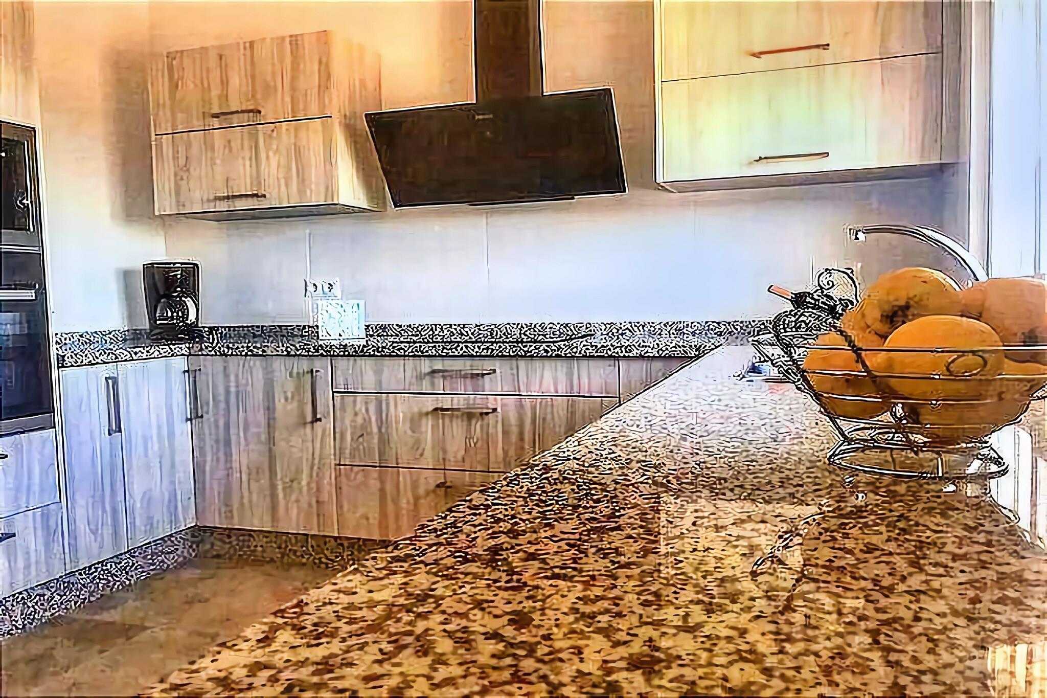 Stueetage: (Stue(Fjernsyn, sofahjørne), Køkken(elkedel, komfur, kaffemaskine, mikrobølgeovn, køle-fryseskab), soveværelse(dobbeltseng), soveværelse(enkeltseng, enkeltseng), soveværelse(enkeltseng, enkeltseng), badeværelse(bruser), badeværelse(bruser), balkon eller terrasse) klimaanlæg, have, grill, parkering, swimmingpool(privat)