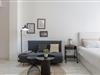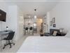 Stue, Køkken(komfur, kaffemaskine), soveværelse(dobbeltseng), badeværelse, dobbeltsovesofa, mikrobølgeovn, køle-fryseskab, bruser, håndvask, toilet, klimaanlæg, elevator, barneseng, barnestol