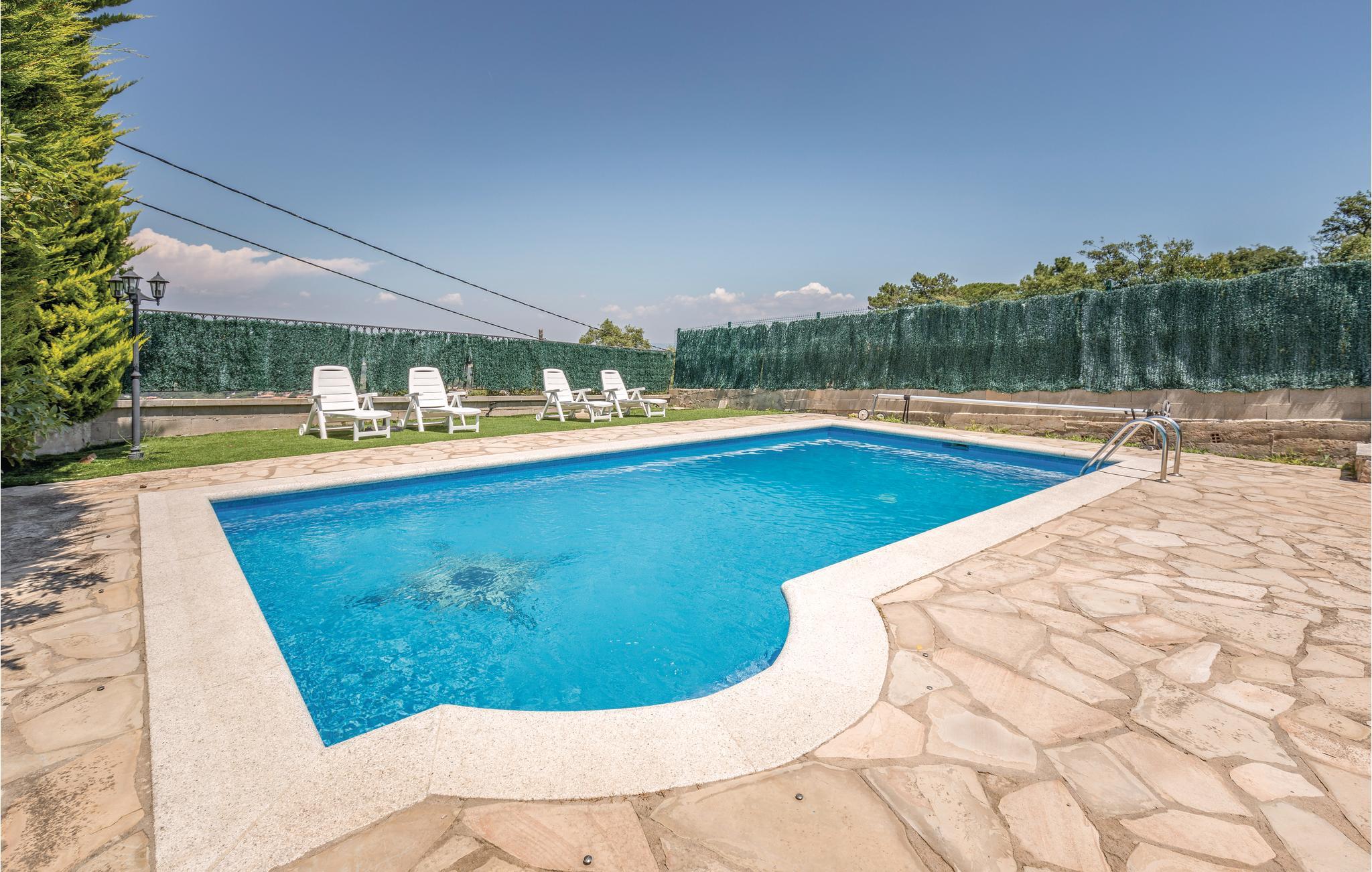 Udenfor finder I en stor og privat pool, der er perfekt til at køle af på varme sommerdage og er omgivet af liggestole, hvor I kan slappe af i solen og nyde den smukke udsigt over bjergene. Der er også flere terrasser til rådighed, den ene med stengrill og havemøbler. Her kan I nyde en behagelig middag med familien.