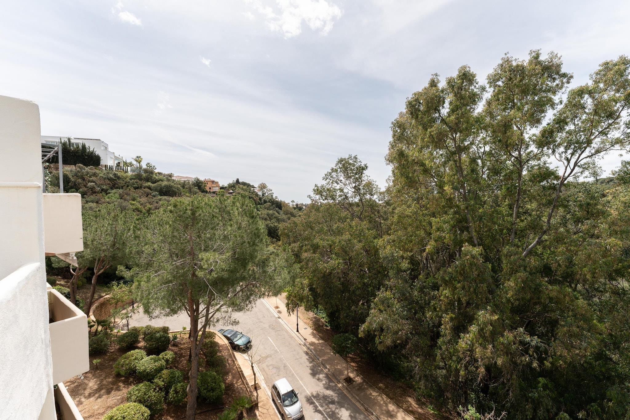 Oplev essensen af afslapning i denne dejlige ferielejlighed, beliggende i et fredeligt boligkompleks i Elviria, Marbella. Perfekt designet til par, familier eller venner, tilbyder den alt, hvad du behøver for et ubekymret ophold på den solbeskinnede Costa del Sol. Lejligheden har to hyggelige dobbeltværelser, to badeværelser med badekar, et fuldt udstyret køkken med alt, hvad du behøver til hjemmelavet madlavning, og en lys stue-spisestue med store vinduer, der åbner ud til en dejlig privat terrasse. Terrassen er hjemmets sande hjerte, et indbydende udendørsområde opdelt i to fritidszoner. Uanset om du nyder morgenmaden i solen, slapper af i loungeområdet eller deler en aftengrillfest under stjernerne, er det det ideelle sted at nyde Andalusiens varme klima. Gæsterne har også adgang til en fælles swimmingpool i det lukkede kompleks, perfekt til at køle af efter en dag på stranden eller at udforske de nærliggende bakker. Kun 4 km væk finder du nogle af de fineste strande på kysten, herunder den ikoniske Cabopino-strand med dens gyldne klitter og krystalklare vand. Prøv frisk fisk og skaldyr eller traditionel *pescaíto frito* på en af strand-*chiringuitos*, eller tilbring dagene med at vandre, spille golf på verdensklassebaner eller udforske lokale markeder og butikker. Til dagsture ligger Marbellas historiske gamle bydel kun 15 minutter væk, mens den glamourøse Puerto Banús og dens luksuriøse marina ligger 25 minutter fra din dør. Lejligheden ligger også kun 35 minutter fra Málaga Internationale Lufthavn, hvilket gør den let tilgængelig fra hele Europa. Med en kombination af komfort, stil og uovertruffen beliggenhed tilbyder dette tilflugtssted i Elviria den perfekte base for at opleve charmen, solskinnet og den pulserende livsstil på Costa del Sol.