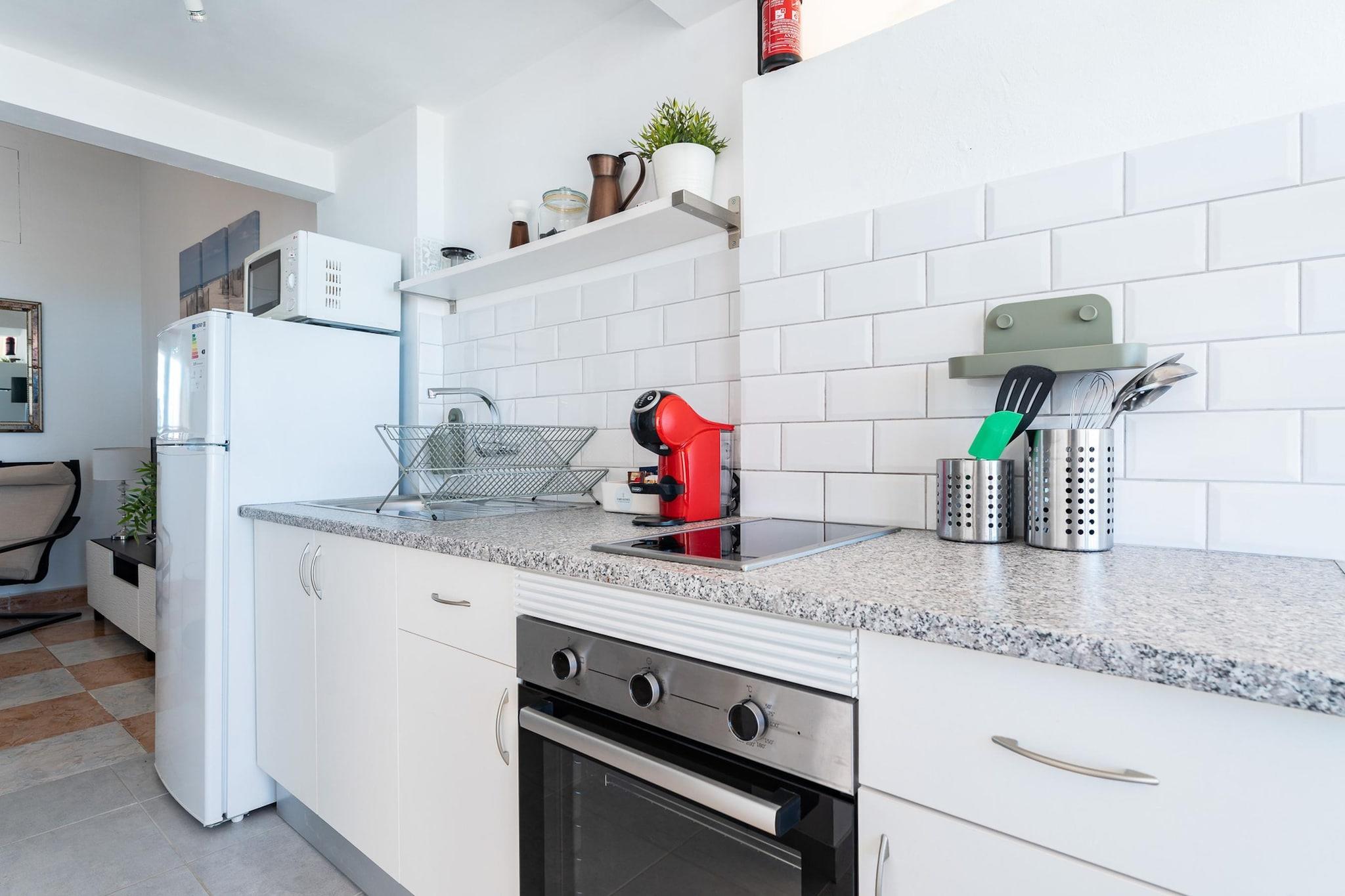 Vågn op til lyden af bølger og Middelhavets glitrende blå vand fra denne charmerende lejlighed ved stranden i Benalmádena Costa. Perfekt placeret kun få skridt fra havet, inviterer dette hyggelige tilflugtssted dig til at starte dine morgener med en gåtur langs promenaden eller en forfriskende dukkert i det krystalklare vand på Costa del Sol. Uanset om du søger afslapning eller et eventyr ved havet, lover denne lejlighed en ferie, du aldrig vil glemme. Indenfor tilbyder lejligheden komfort og bekvemmelighed i lige mål. Den har et lyst soveværelse med to enkeltsenge, et badeværelse med bruser og et fuldt udstyret tekøkken til at tilberede lette måltider. Den åbne stue-spisestue med en sovesofa fører til en privat terrasse med udsigt over havet - det perfekte sted til morgenmad med udsigt eller et aftenglas vin, mens solen går ned over horisonten. Træd udenfor og udforsk Benalmádenas smukkeste strande, såsom Malapesquera, Santa Ana og den maleriske Bil Bil-strand med dens mauriske slot. Ud over kystlinjen kan du slentre gennem den pulserende Puerto Marina med dens butikker, caféer og natteliv, eller slappe af i Parque de la Palomas rolige haver. Tag svævebanen op til Monte Calamorro for at nyde en betagende udsigt, eller besøg familiefavoritter som Selwo Marina og Tivoli World. Herfra er du også perfekt forbundet med nærliggende perler - Malagas historiske centrum, Torremolinos' livlige promenade, Mijas Pueblos bjergcharme og Fuengirolas kystattraktioner. Book dit ophold og omfavn den sande essens af Costa del Sol - sol, hav og ro lige uden for døren.