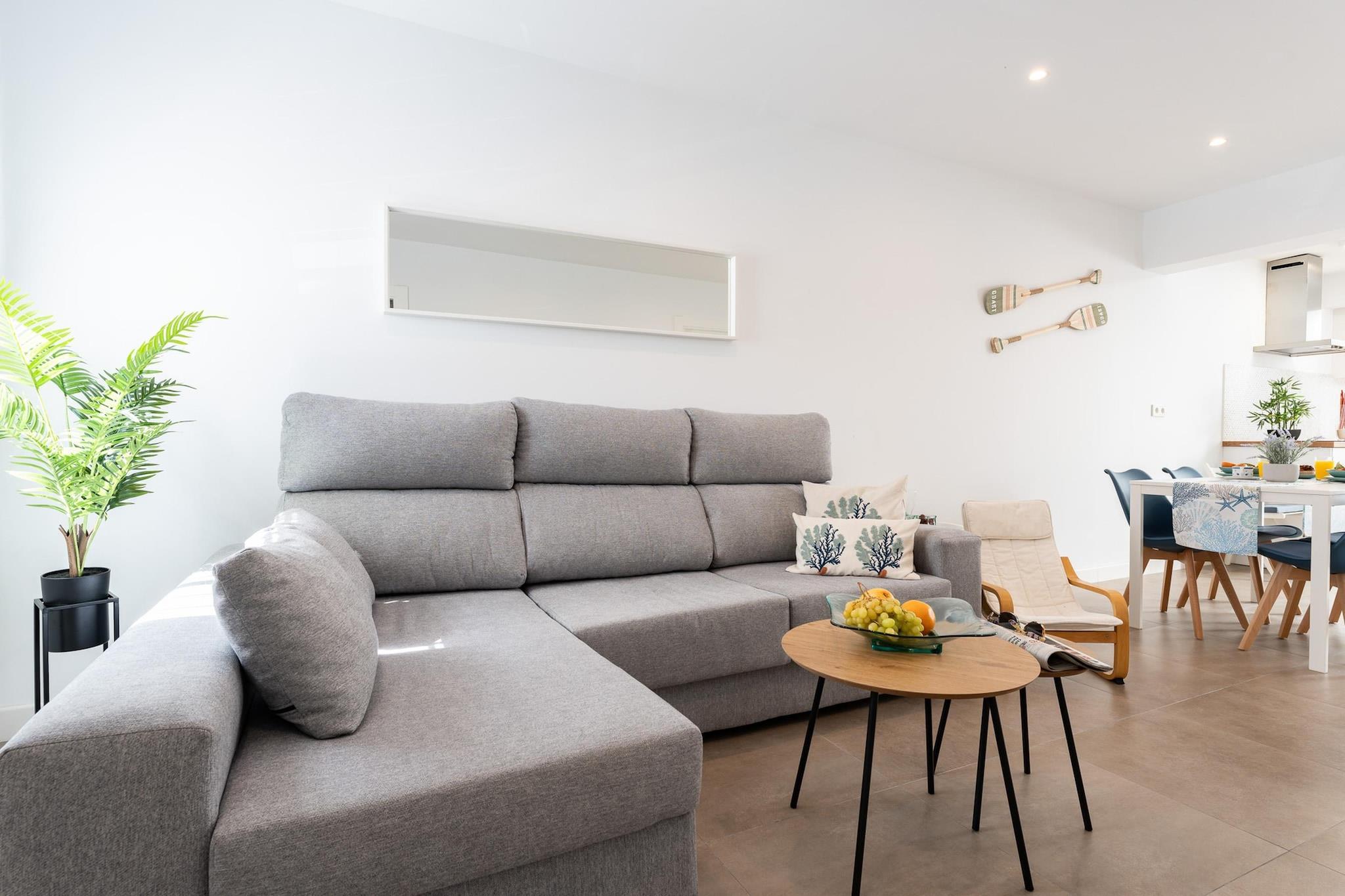 Velkommen til din perfekte ferie ved havet i Fuengirola, en charmerende kystparadis kun få skridt fra stranden! Denne varme og indbydende lejlighed tilbyder alt, hvad du behøver for en uforglemmelig ferie på Costa del Sol, og blander komfort, lys og middelhavscharme. Lejligheden har to hyggelige og veludstyrede soveværelser. Masterværelset har en komfortabel dobbeltseng, ideelt til en god nats søvn, mens det andet soveværelse tilbyder en dobbeltseng og en enkeltseng - perfekt til venner eller familie. Der er to moderne badeværelser, det ene med et forfriskende brusebad, et fuldt udstyret køkken til hjemmelavede måltider og en lys stue-spisestue, der åbner ud til en dejlig terrasse - det ideelle sted at nyde din morgenkaffe eller aftenvin, mens du nyder det andalusiske solskin. Bare få skridt fra din dør finder du Fuengirolas gyldne strande, der strækker sig over syv kilometer. Uanset om du foretrækker at solbade, svømme eller prøve vandsport som paddlesurfing eller jetski, vil Playa de Los Boliches og Playa de Carvajal helt sikkert begejstre med deres livlige atmosfære og fremragende faciliteter. Takket være den privilegerede beliggenhed kan du nemt udforske andre skatte på Costa del Sol. Málaga, med sin rige historie og pulserende kultur, ligger kun 30 minutter væk, mens det glamourøse Marbella byder på luksuriøs shopping og natteliv. For en mere traditionel oplevelse, besøg Mijas - en malerisk hvidkalket landsby beliggende på bakkerne med betagende udsigt og brostensbelagte gader.