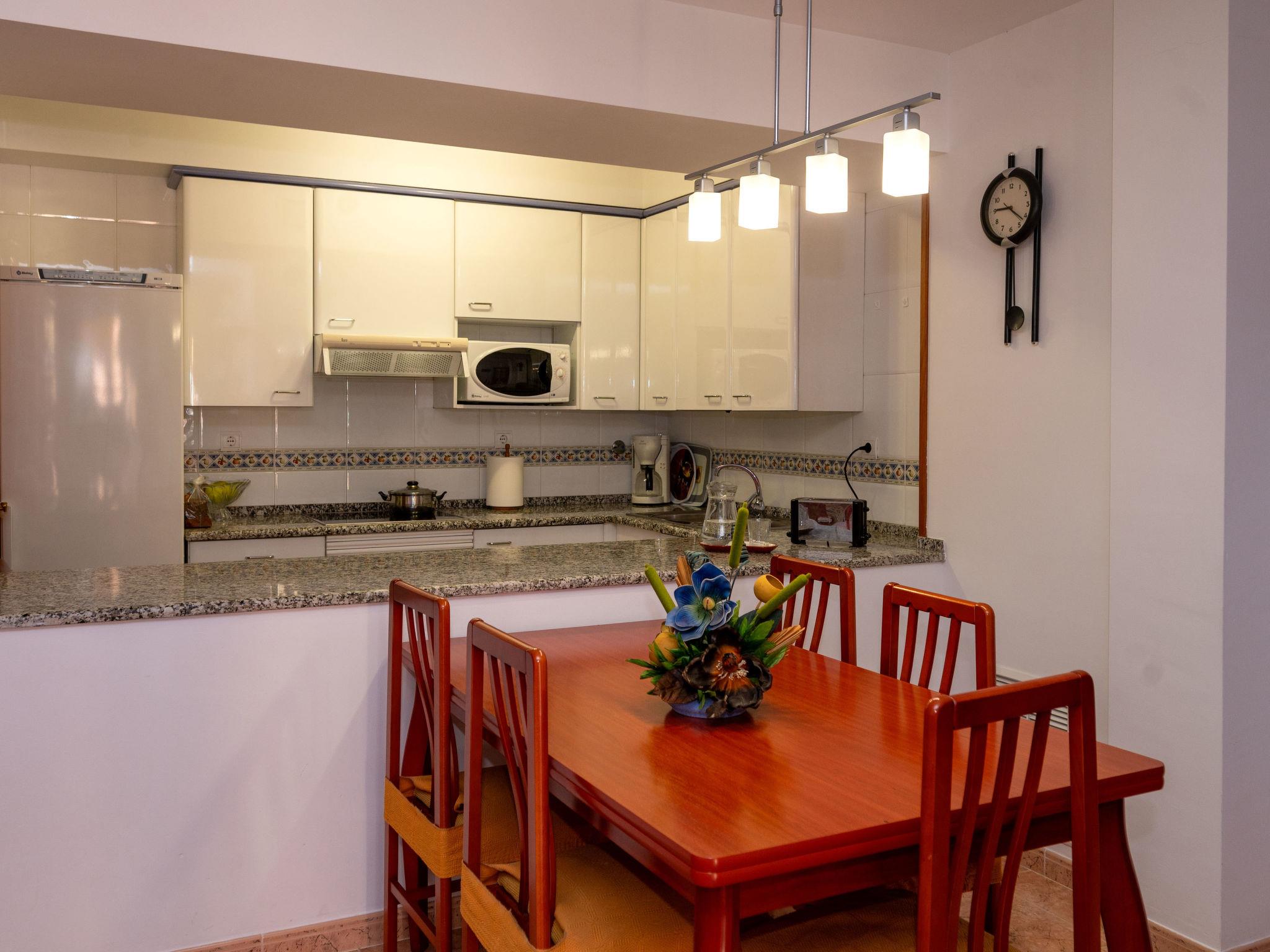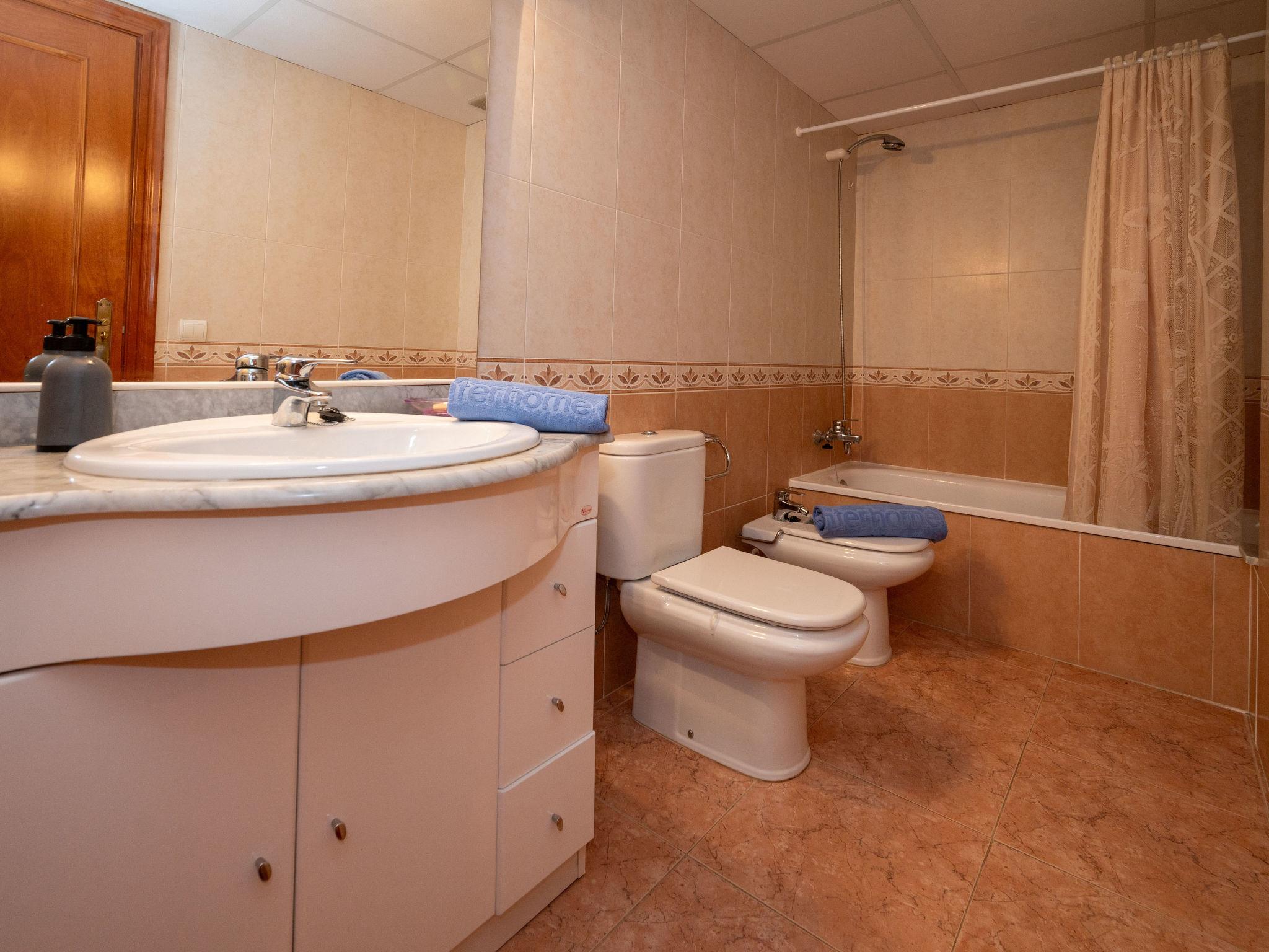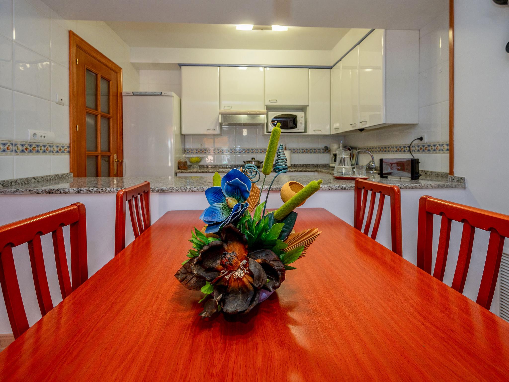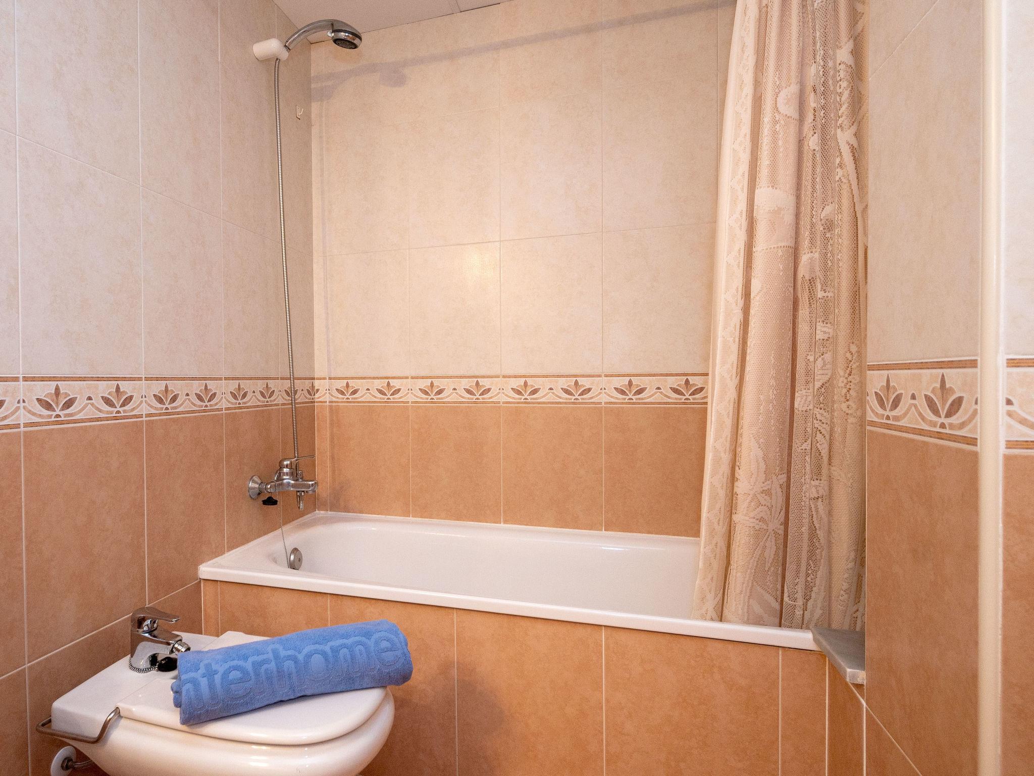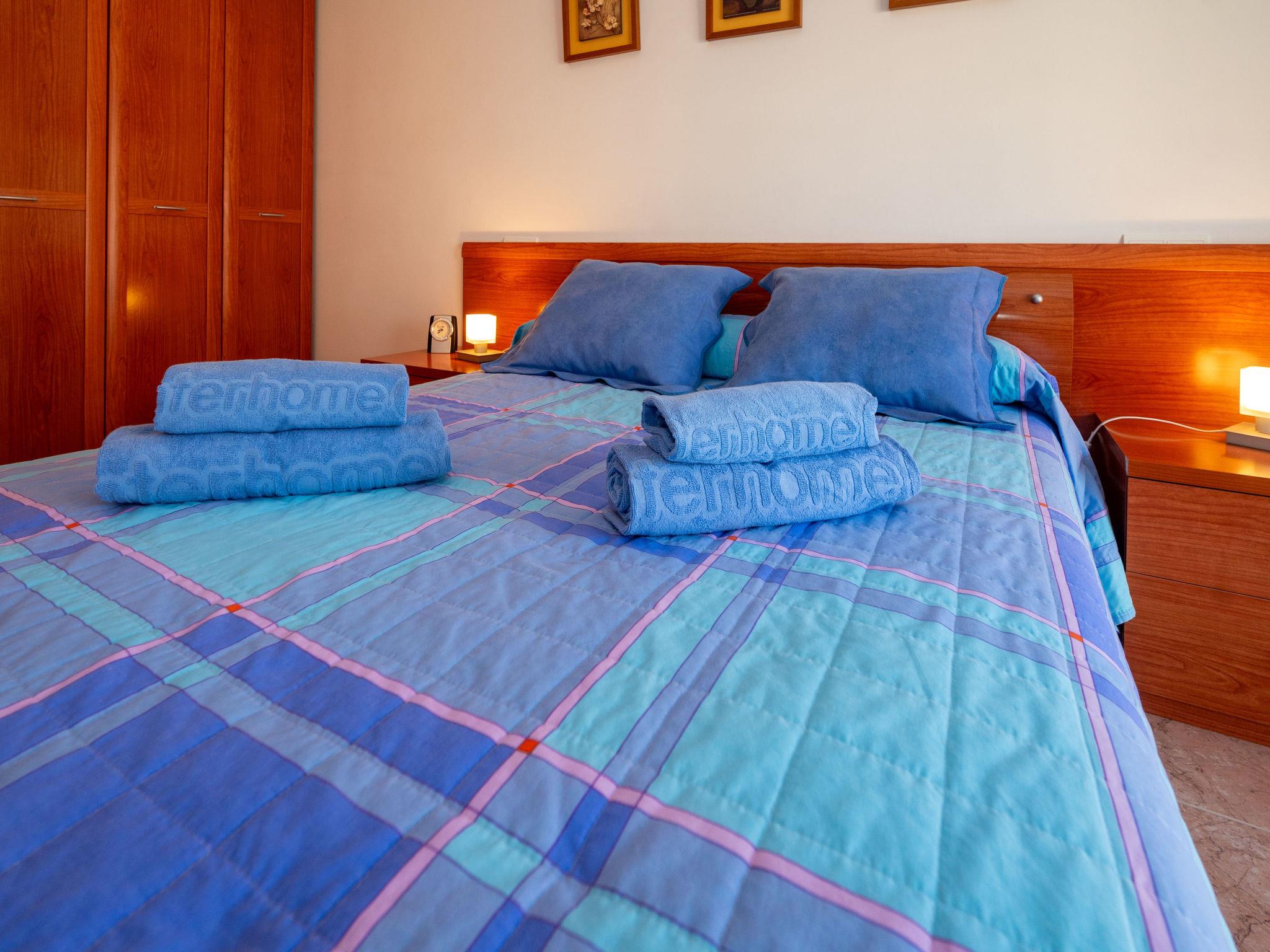 "Colom", 3-room apartment 51 m2. Object suitable for 2 adults + 2 children. Practical and comfortable furnishings: living/dining room with dining table, digital TV, electric heating and air conditioning. Exit to the balcony. 1 room with 1 french bed (135 cm, length 190 cm), electric heating and air conditioning. 1 room with 1 x 2 bunk beds (80 cm, length 190 cm), electric heating and air conditioning. Open kitchen (oven, dishwasher, 4 ceramic glass hob hotplates, toaster, kettle, microwave, electric coffee machine). Bath/bidet/WC. Balcony. Balcony furniture. View of the swimming pool and the garden. Facilities: washing machine, iron, hair dryer. Internet (WiFi, free). Garage (1 car). HUTB-073953 // Reg. Nr.: ESFCTU00000809800062536300000000000000000HUTB-0739537