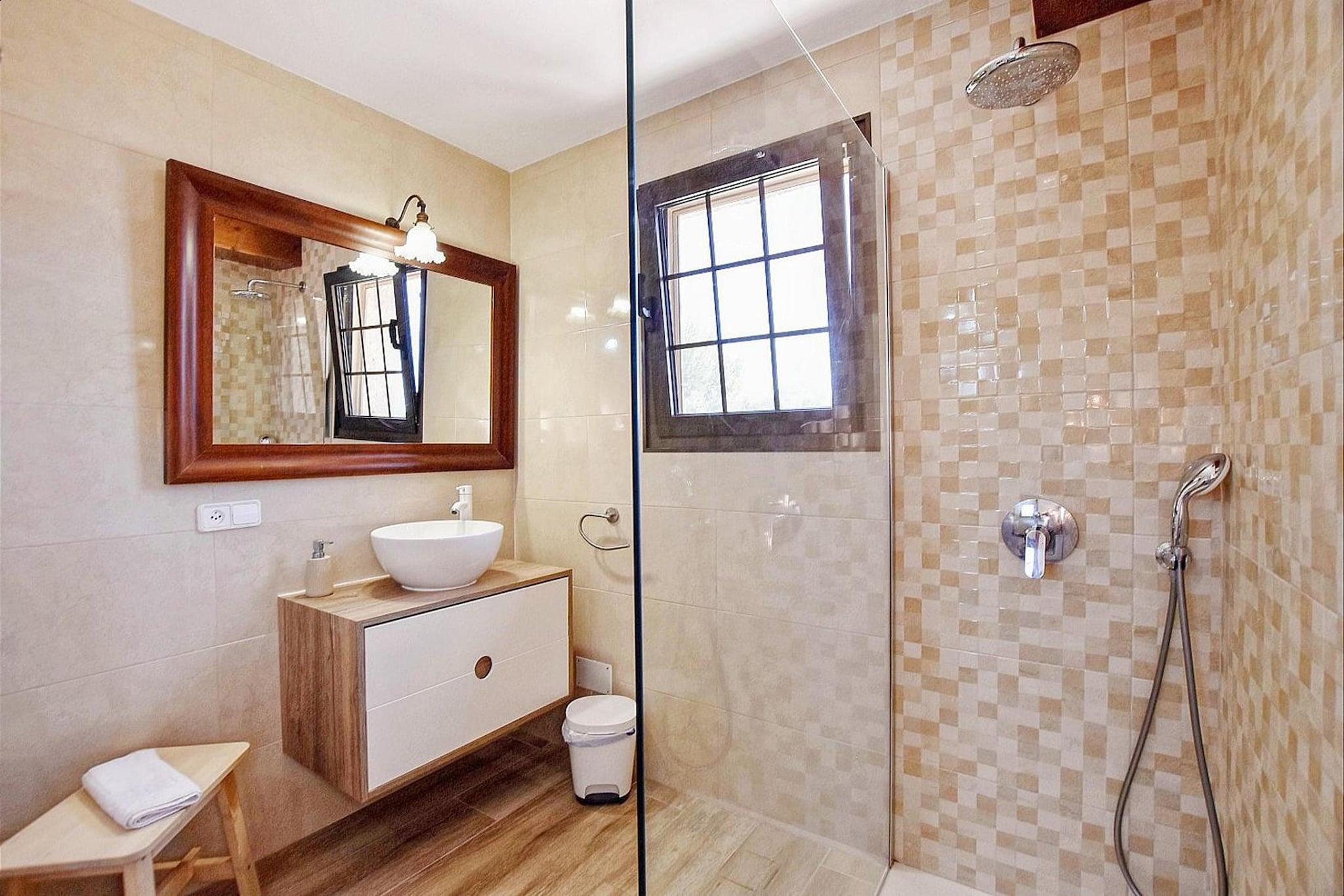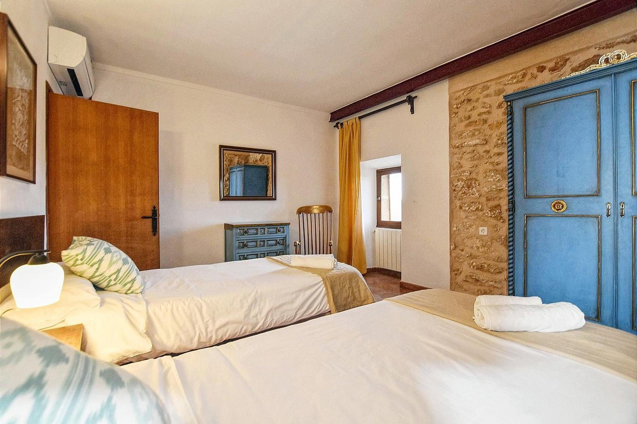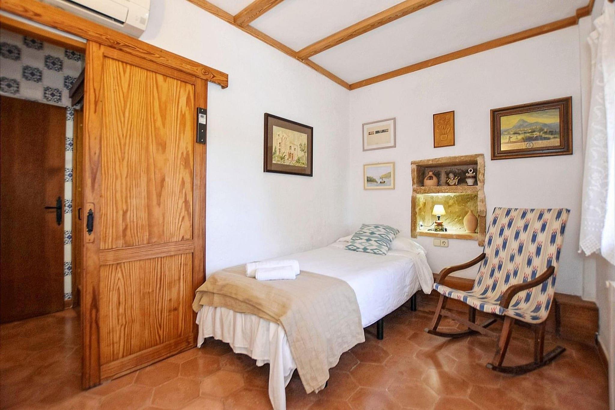 Finca SA TORRE fra det 17. århundrede fungerede engang som et af de mange vagttårne, der beskyttede Pollensa-bugten og Alcudia mod uønskede piratbesøg. Så i 2015 blev gården fuldstændig ombygget til feriehus. Højdepunktet er uden tvivl den enorme private pool (1,60 m dybt saltvand) med den tilstødende solterrasse og den vidunderlige, anlagte have, hvor man simpelthen kan føle sig godt tilpas. Ejendommen er helt indhegnet, og indgangen sker gennem en automatisk port. Gården ligger i udkanten af Alcudia og kun 300 meter fra havet og den smukke strand "Playa MorerVermell" til sjov og boltring. Placeringen af godset kunne simpelthen ikke være mere ideel, du kan gå til den smukke strand, og for en behagelig gåtur gennem byen kan du være i Alcudia med sine maleriske gyder, barer og restauranter. I et boligareal på omkring 180 m2 fordelt på tre etager og det uafhængige gæstehus finder vi i alt 5 soveværelser med aircondition (3 med hver to enkeltsenge / 1 dobbeltseng / 1 seng enkeltseng), der er også i alt af 4 badeværelser (3x EnSuite / 1x brusebad / 3x bruser). Der er et ekstra toilet til gæsterne på den overdækkede terrasse ved siden af poolen. Stuen på anden sal har satellit-tv og trådløst internet. Køkkenet ligger i stueetagen og er fuldt udstyret med opvaskemaskine, keramisk kogeplade, ovn, køleskab, kaffemaskine og brødrister. Terrassen lige foran huset er meget praktisk med en lang bar, her er grillen integreret med vask og der er spisestue med parasoller. Pensionatet, få meter væk, rummer et af soveværelserne med to enkeltsenge, et badeværelse med bruser og en lille stue med tv og aircondition og en morgenmadsbar.