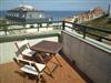 Die Attikawohnung befindet sich im 4. Stockwerk eines Mehrfamilienhauses. Der Zugang zum Haus und zur Wohnung ist rollstuhlgängig. Die Wohnung verfügt über zwei grossräumige Schlafzimmer mit leichter Dachschräge und Dachfenstern auf der sonnenabgewandten Seite. Beide Zimmer verfügen über Einbauschränke. Im grossen Schlafzimmer befindet sich ein Ehebett, ausserdem eine Kommode. Das kleine Schlafzimmer verfügt über zwei klappbare Standardbette, die platzsparend ineinandergelegt werden können. Ausserdem kann das Zimmer als Arbeitszimmer verwendet werden. Es verfügt über einen Schreibtisch, Bürosessel und ein Bücherregal. Die Dachwohnung verfügt ausserdem über ein grosses Badezimmer mit WC, Bidet, Badewanne und Dusche sowie ein kleines Bad mit Lavabo. Das grosse Wohnzimmer ist durchgängig mit dem Essraum und der Küche verbunden. Die Küche verfügt über alle Standardfunktionalitäten, einschliesslich Geschirrspüler und Waschmaschine. Am Ende des Ess- und Wohnzimmers befindet sich eine kleine quadratische Terrasse mit Blick auf den Ozean und den Strand.